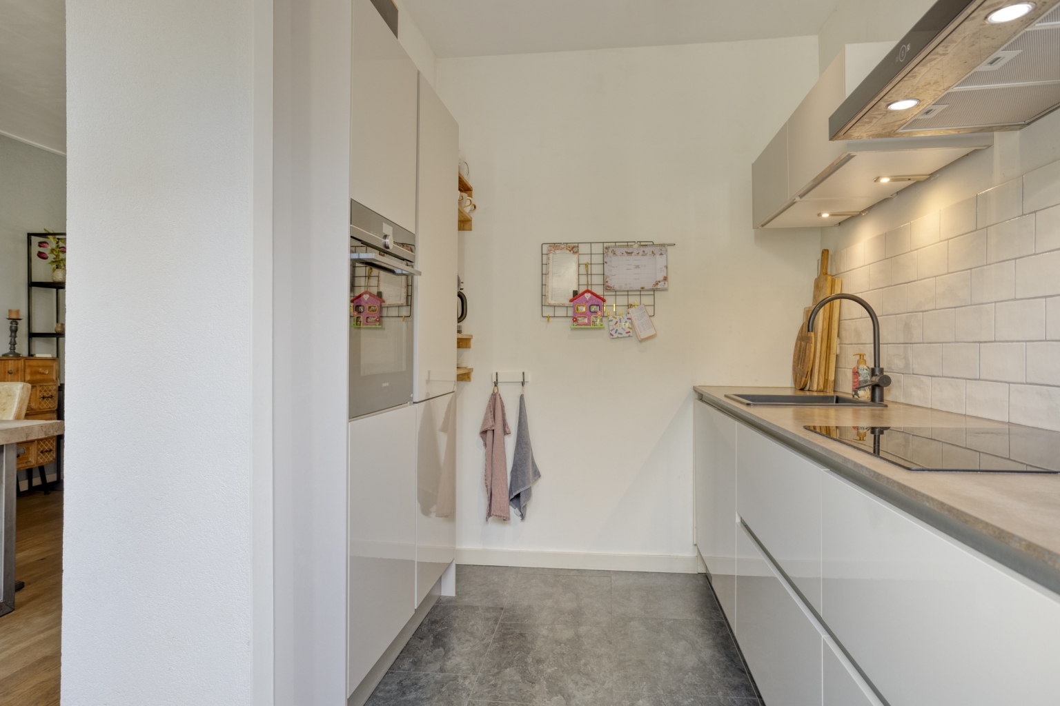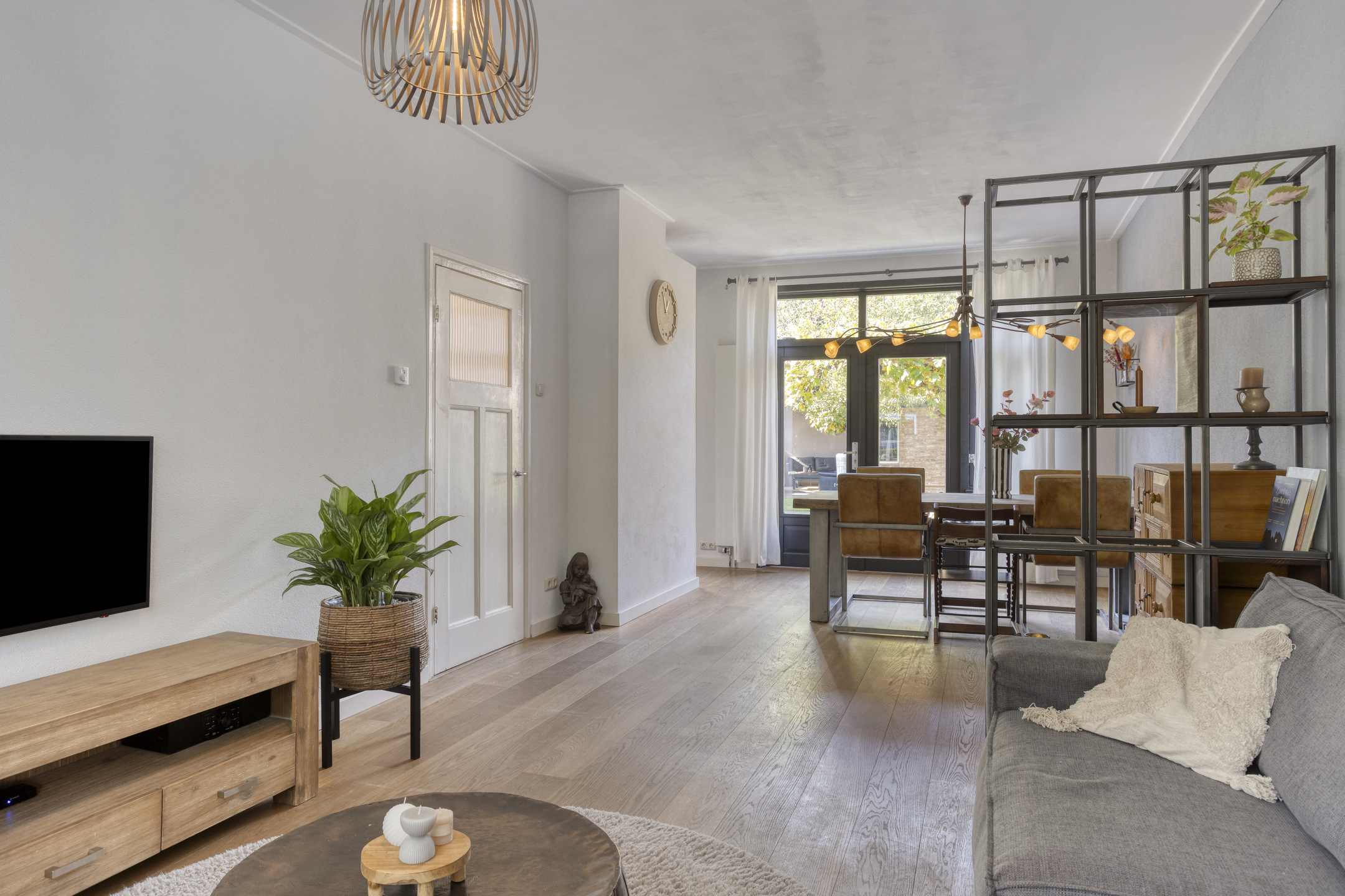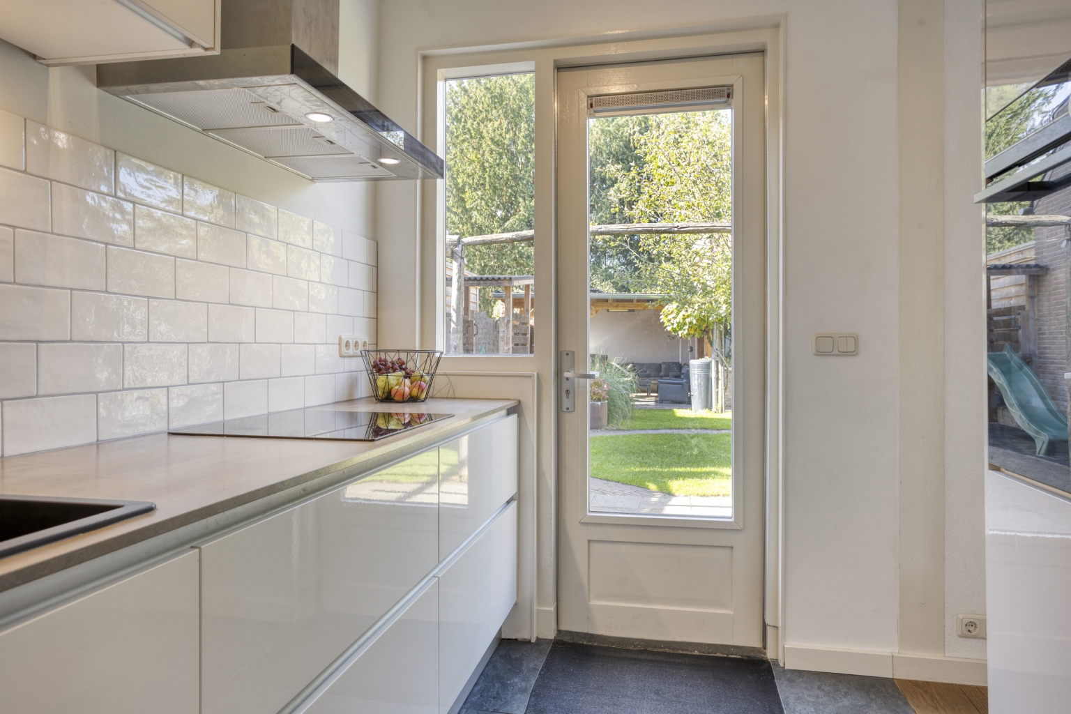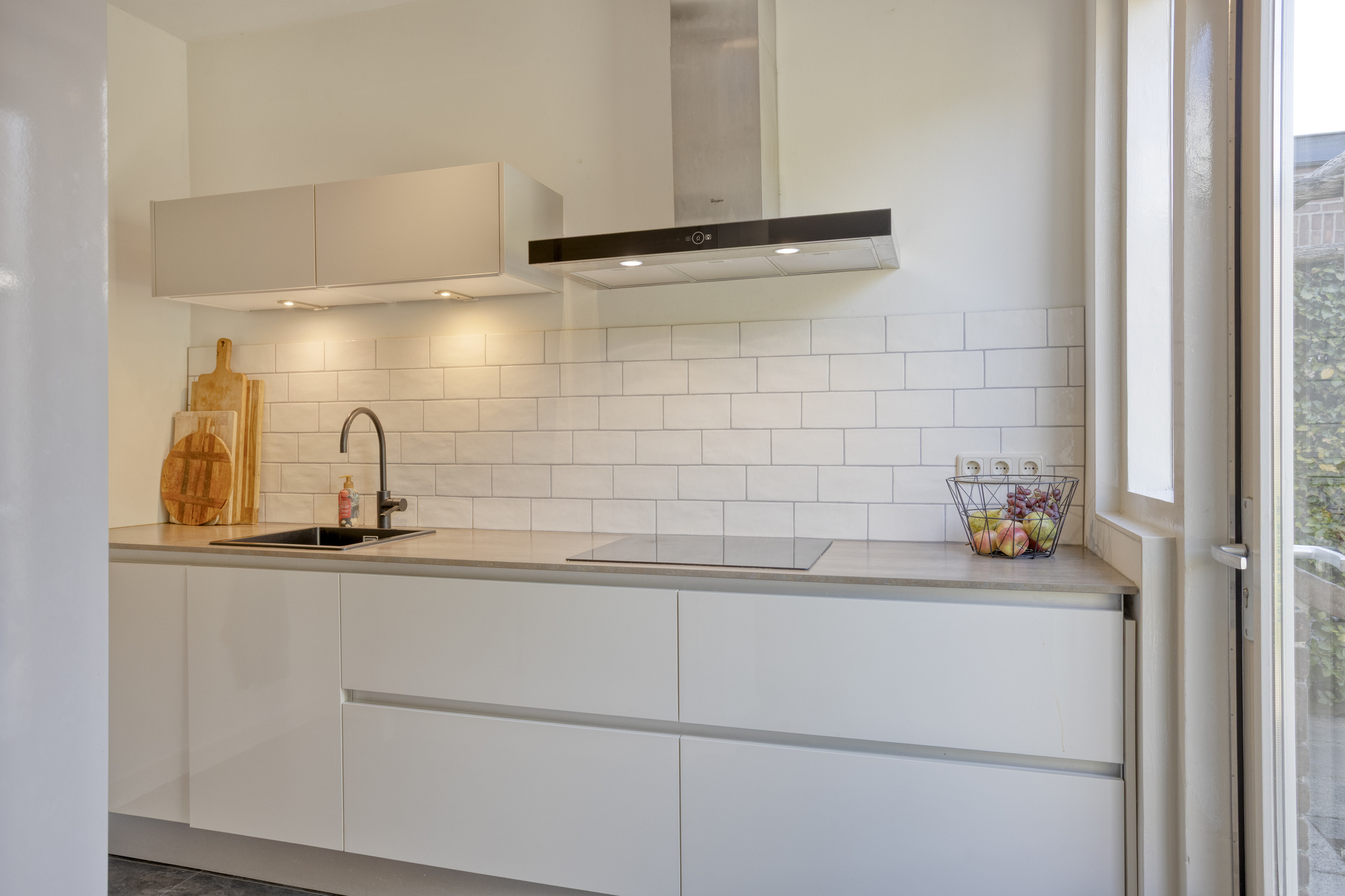 Begane grond: entree, hal met trapopgang naar de 1e verdieping, meterkast, toegang tot de kelder en toilet voorzien van wandcloset. Keurig afgewerkte woon/eetkamer met zithoek aan de voorzijde en openslaande deuren naar het terras aan de achterzijde. Moderne half open keuken, tevens met tuindeur, voorzien van inductiekookplaat, afzuigkap, koelkast, vriezer, combi-oven en vaatwasser.