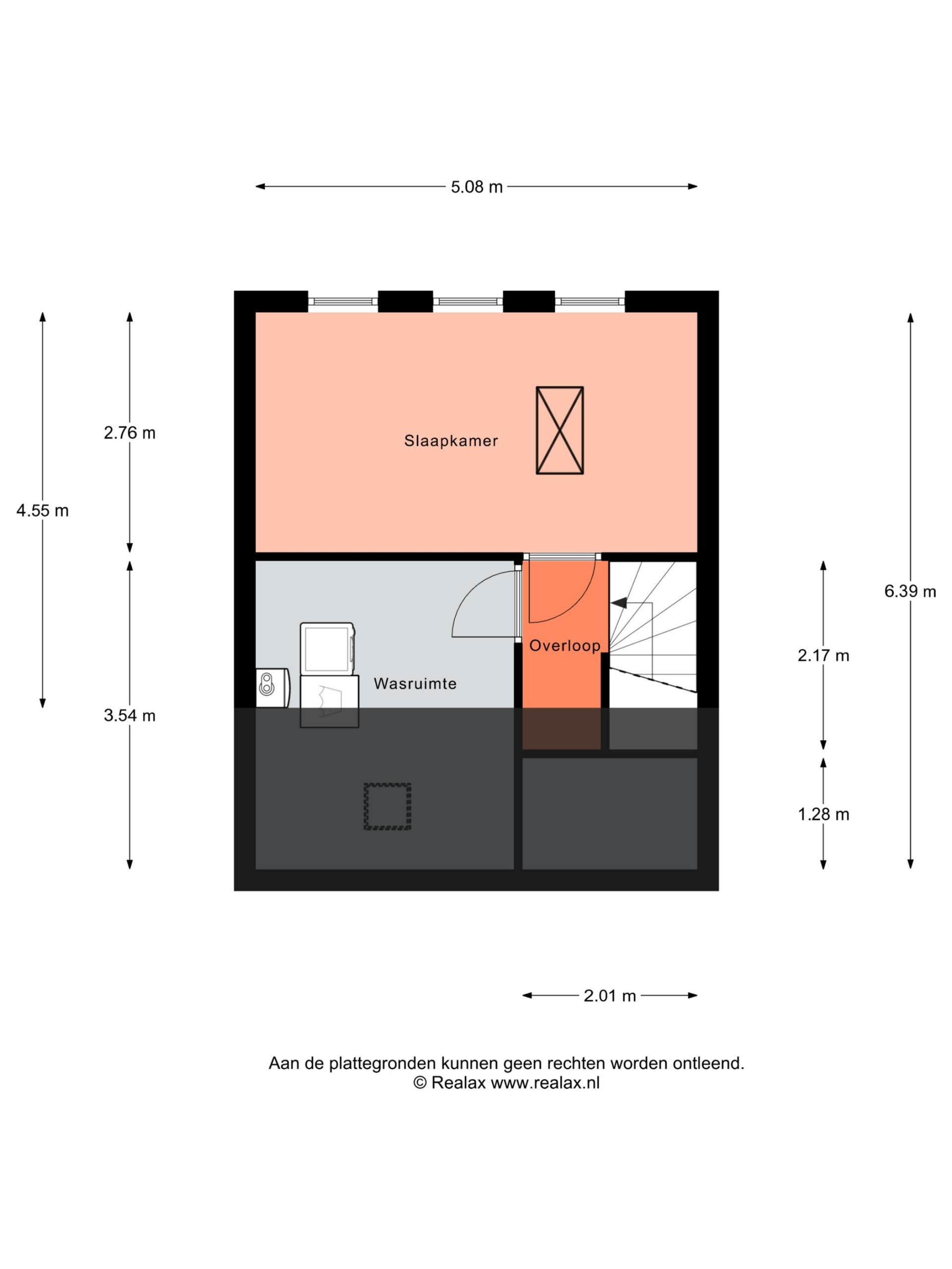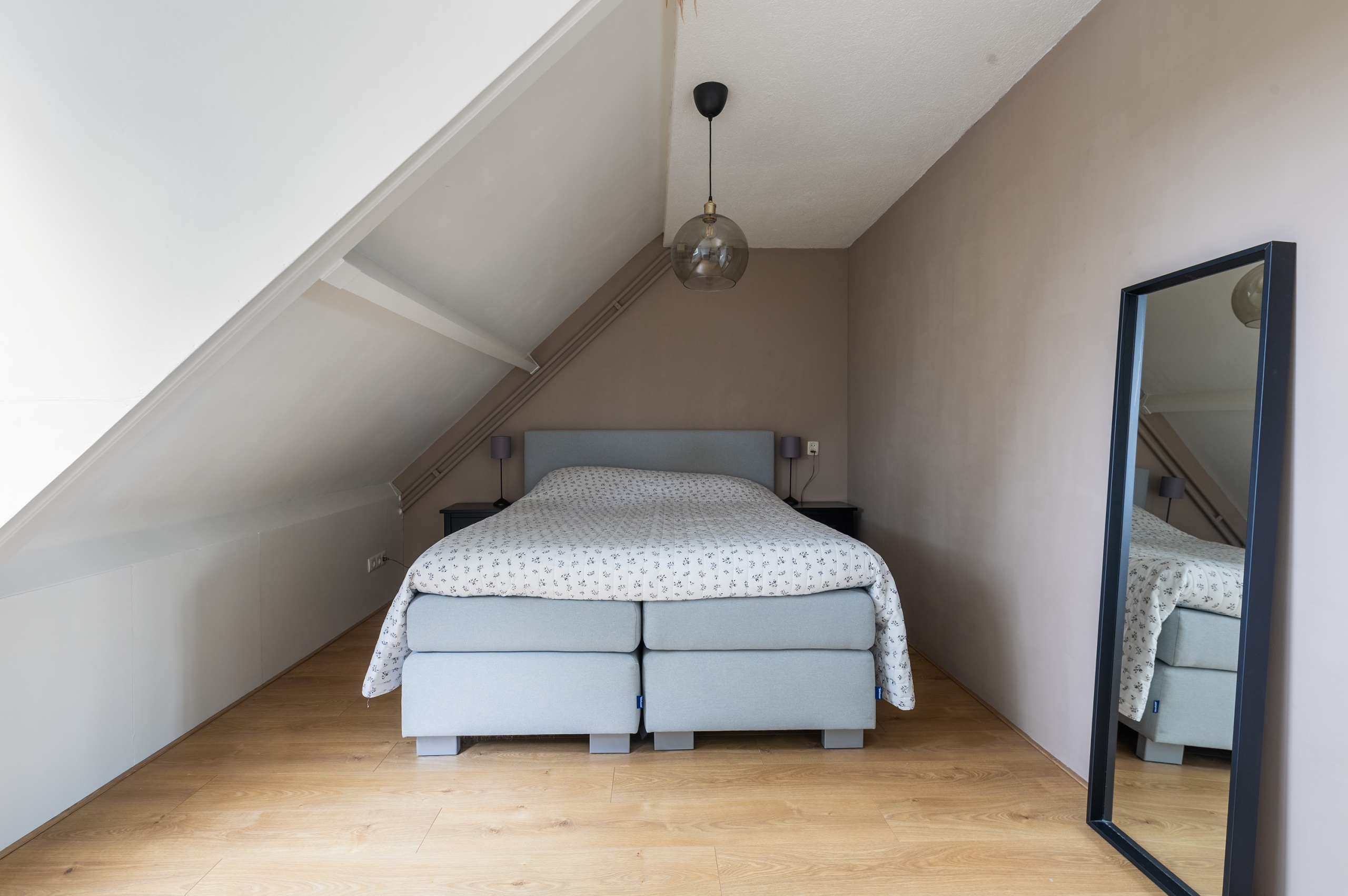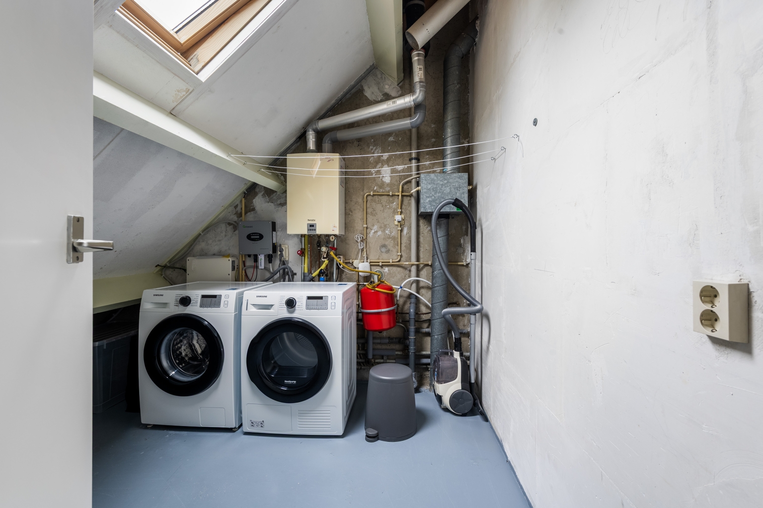 2e Verdieping: overloop met toegang tot de (berg)vliering. Derde slaapkamer ter grootte van circa 14 m². Aparte ruimte met dakraam, t.b.v. de cv-installatie en wasapparatuur.