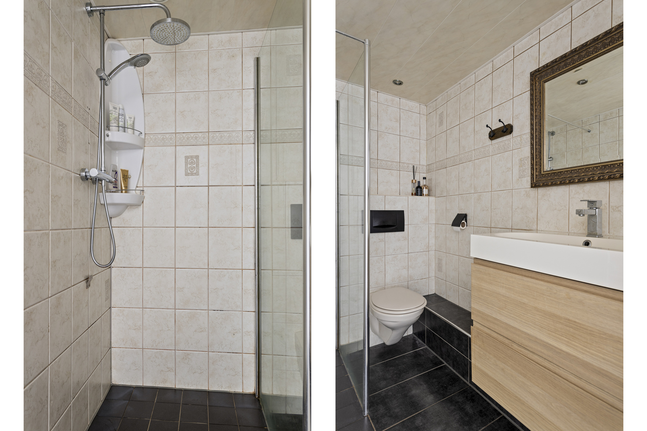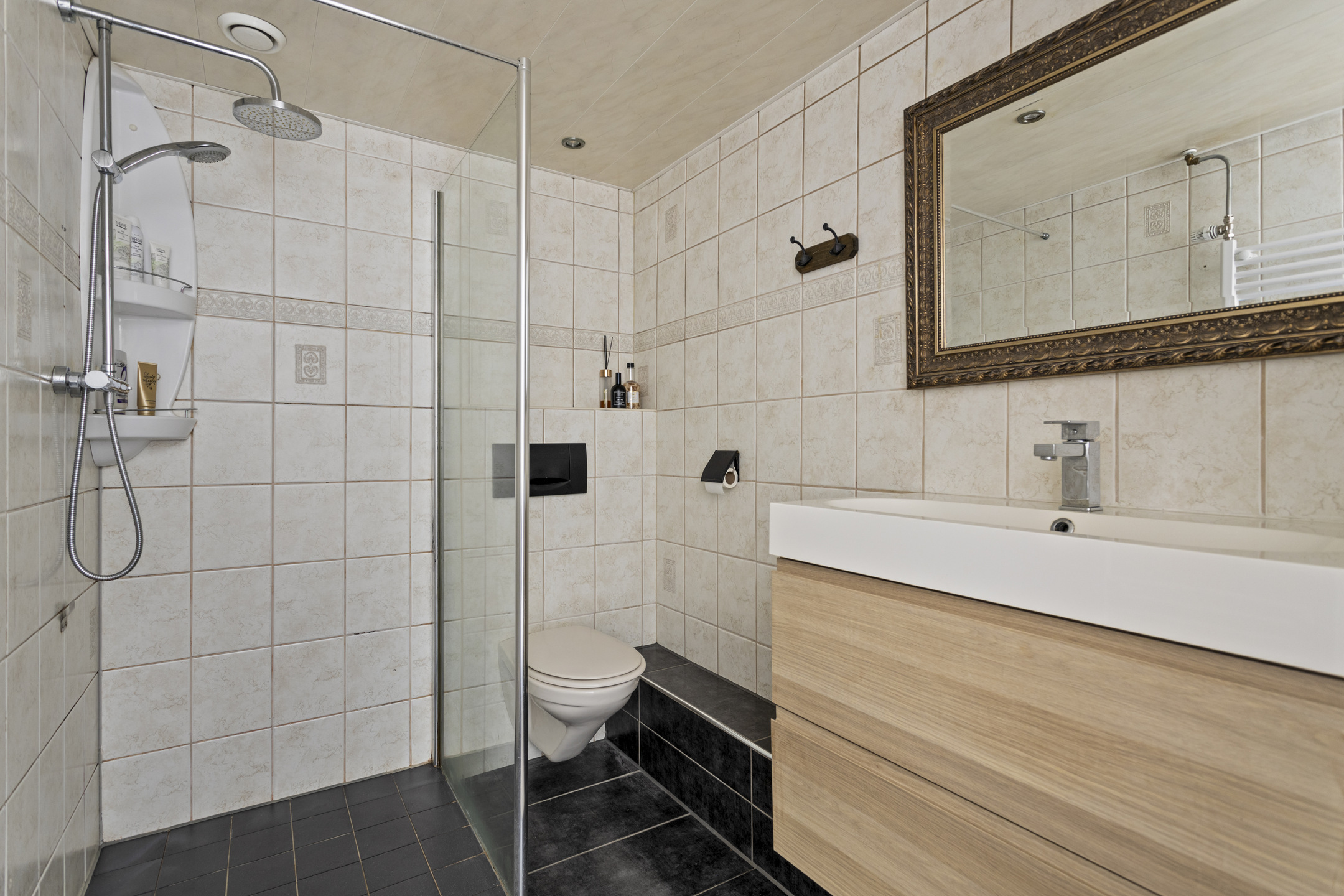 1e Verdieping: overloop. Drie slaapkamers ter grootte van circa 9 m², 10 m² en 14 m², alle keurig afgewerkt. Inpandige badkamer met inloop(regen)douche, wastafelmeubel en wandcloset.