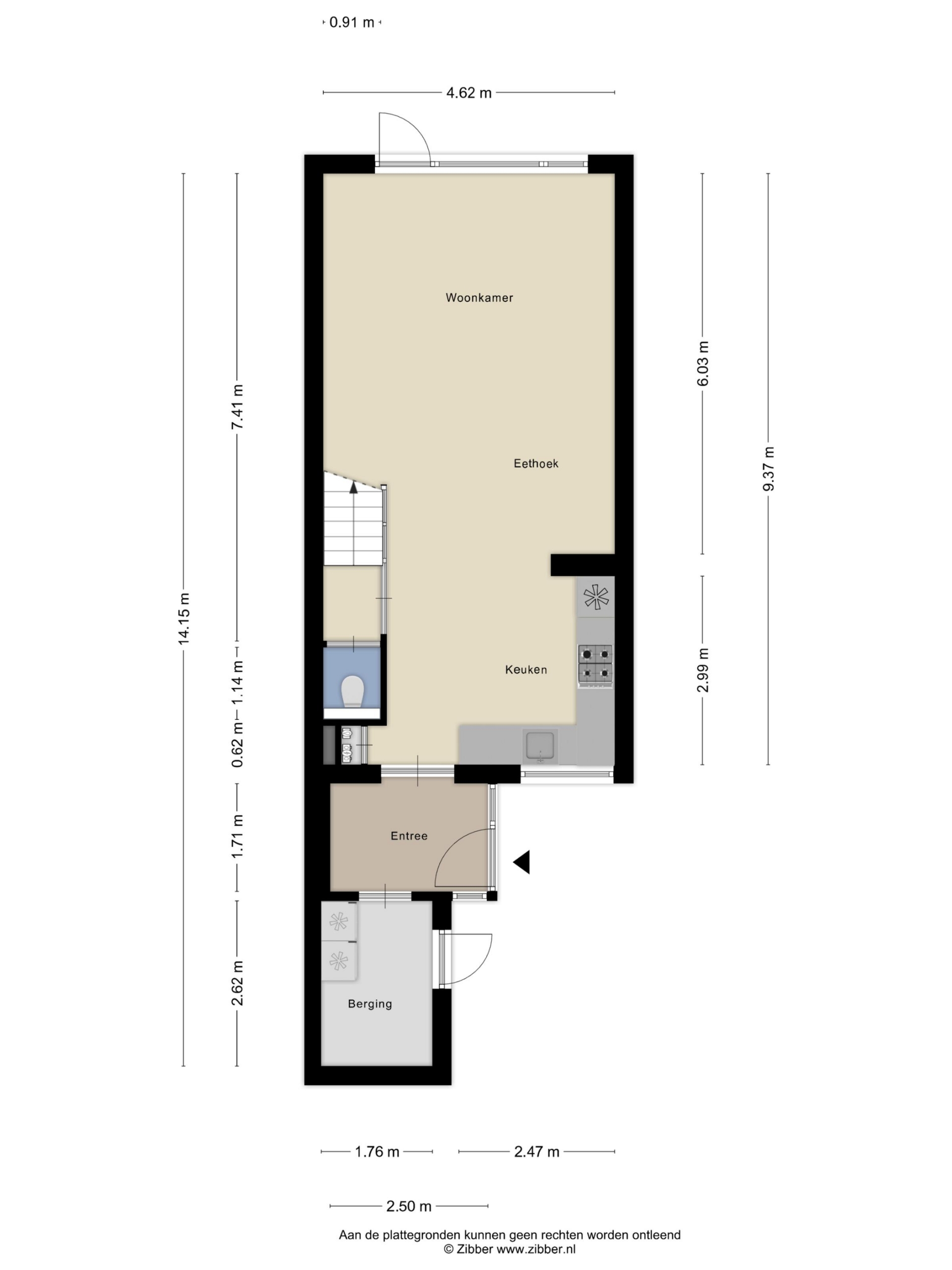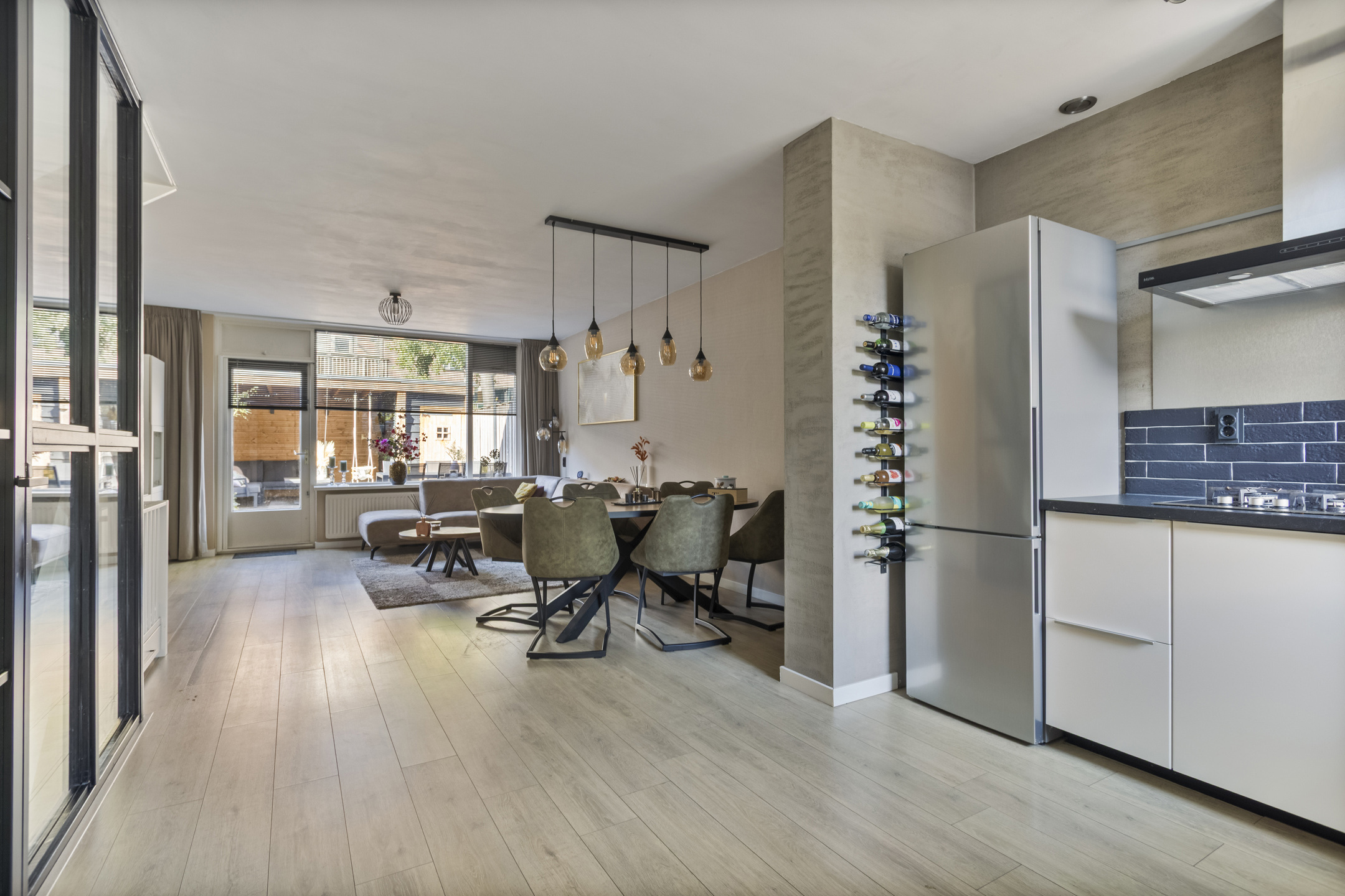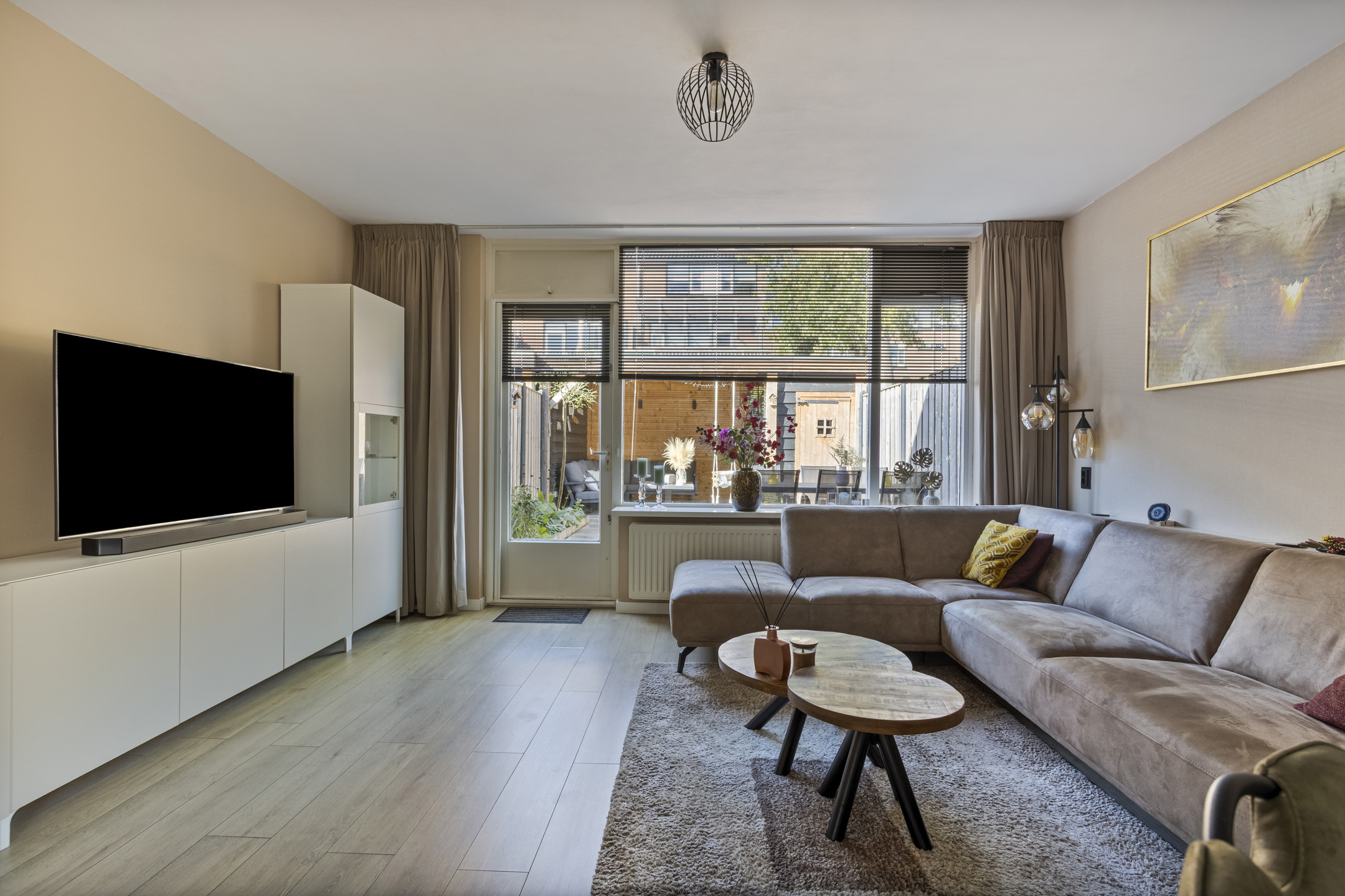 Begane grond: entree, ruime hal met toegang tot de berging/bijkeuken. Keurig afgewerkte, tuingerichte woonkamer voorzien van laminaatvloer. Moderne keuken in L-opstelling, voorzien van 5-pits gaskookplaat, afzuigkap, vaatwasser en close-in boiler. Tussenhal met trapopgang naar de 1e verdieping en toilet voorzien van wandcloset.
