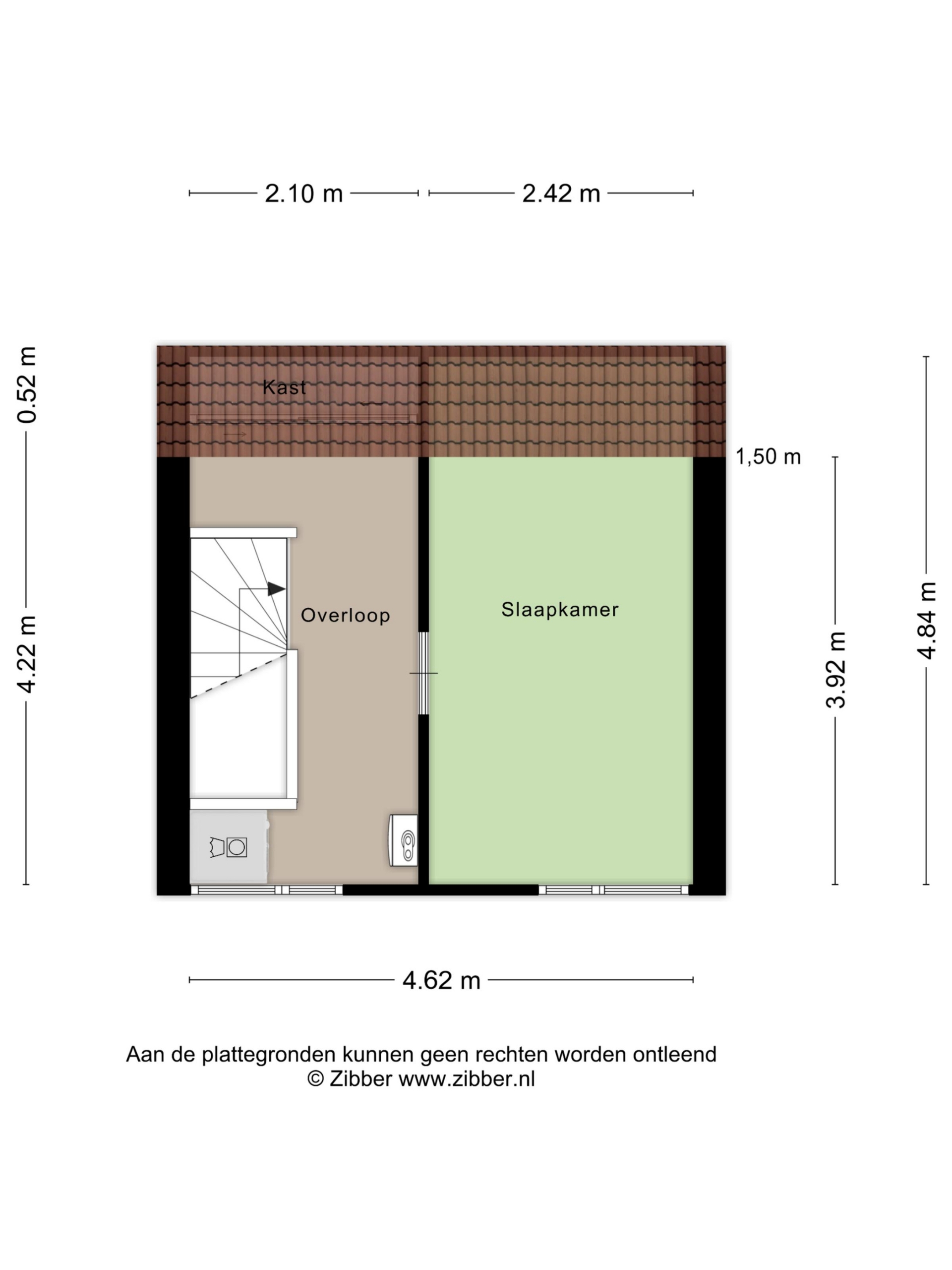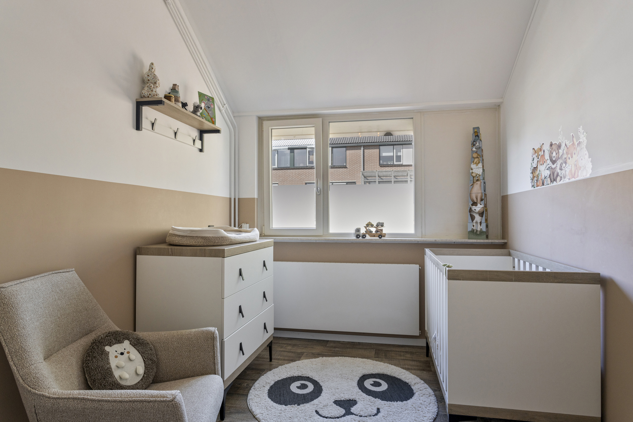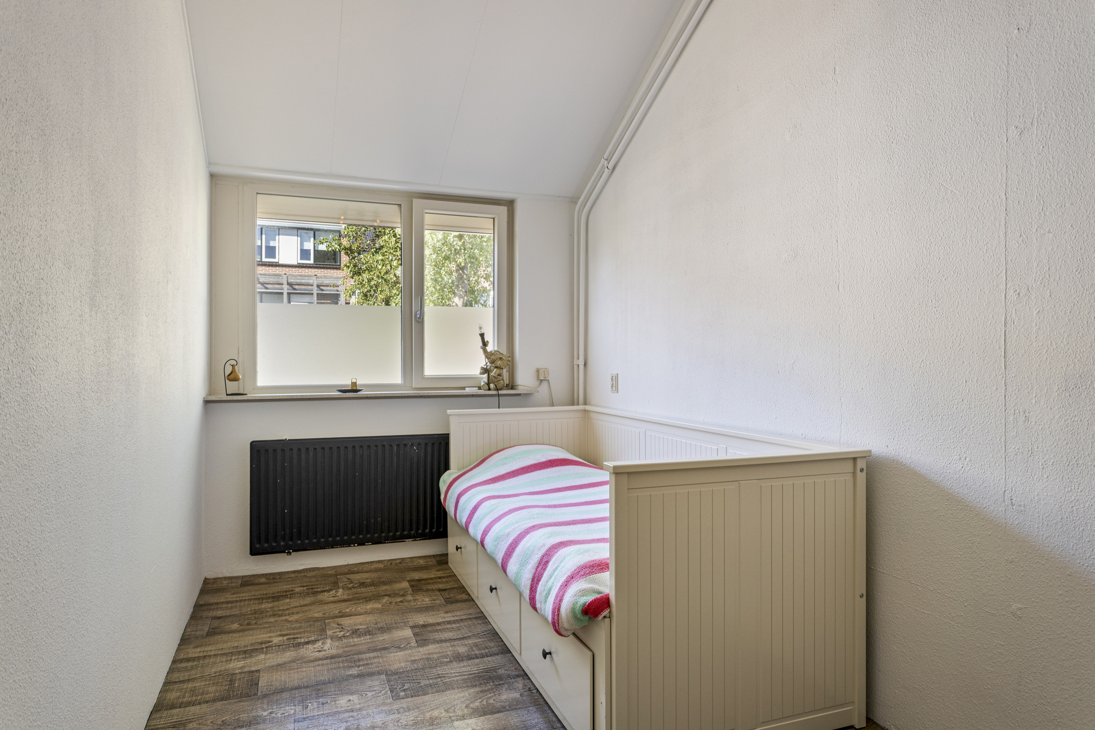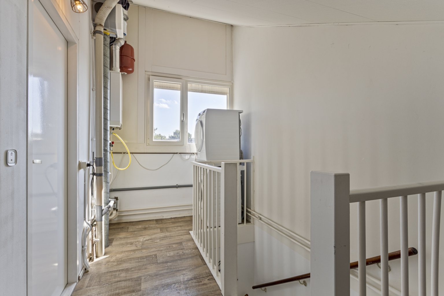 2e Verdieping: overloop met cv-opstelplaats en aansluiting voor de wasapparatuur. Vierde slaapkamer ter grootte van circa 9,5 m², voorzien van vloerbedekking.