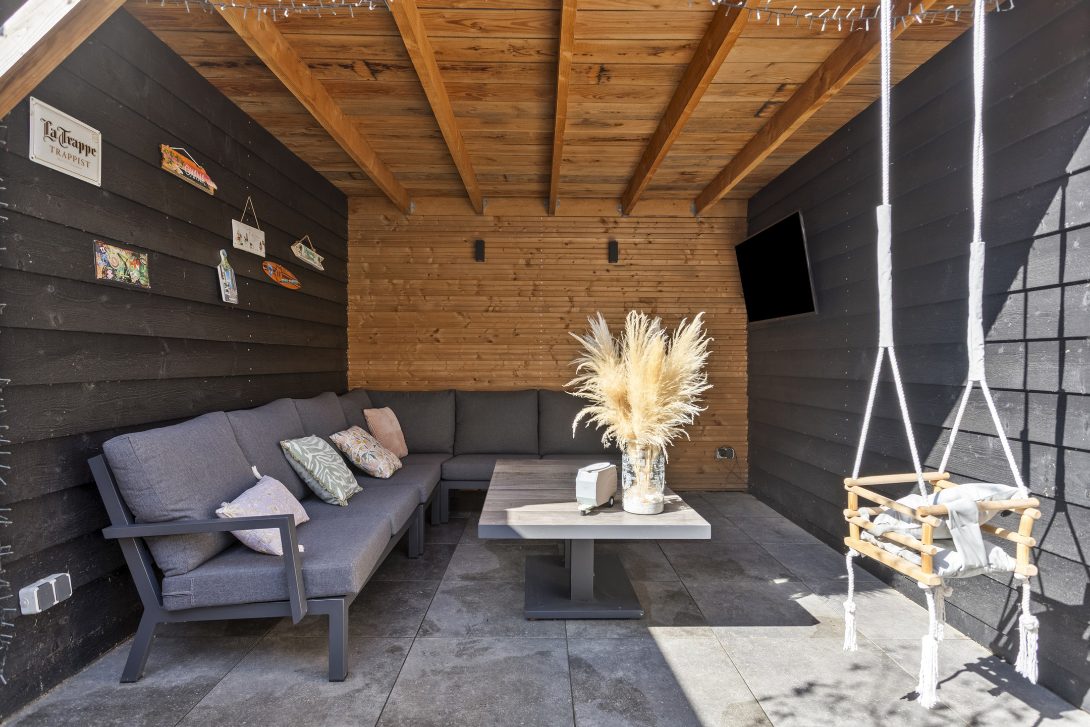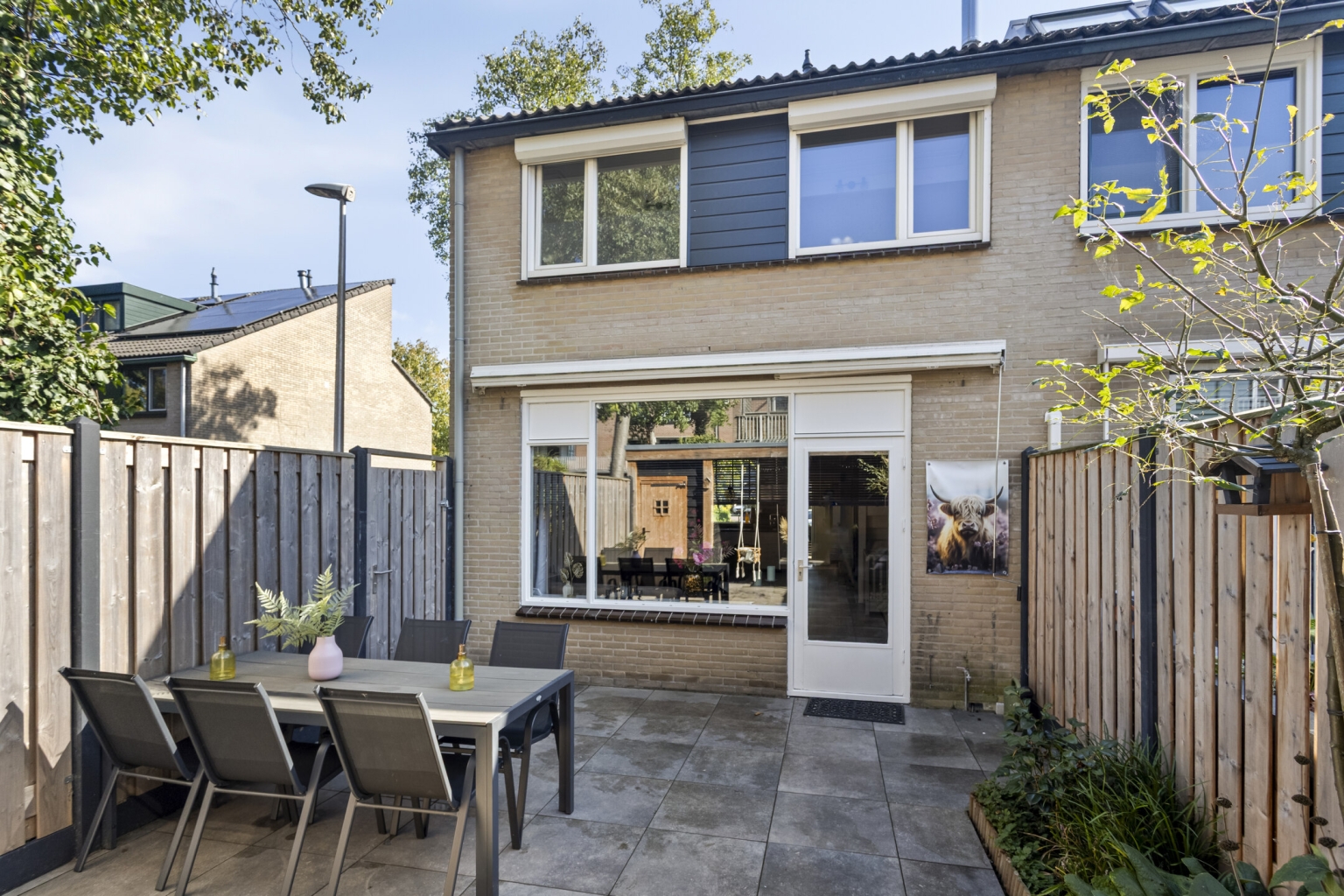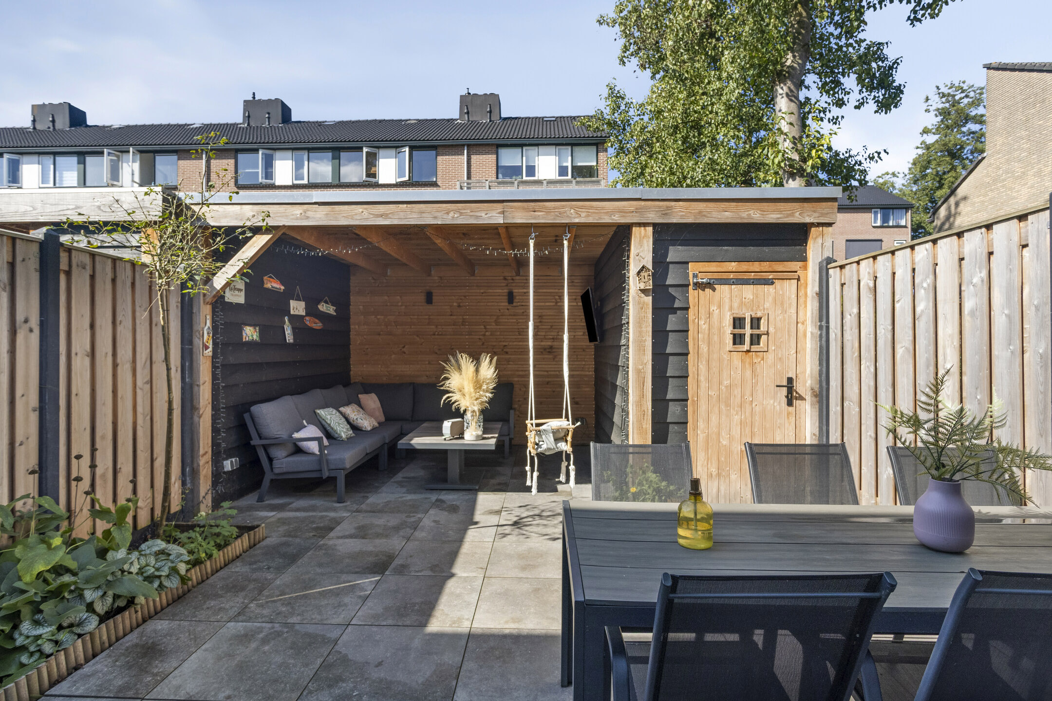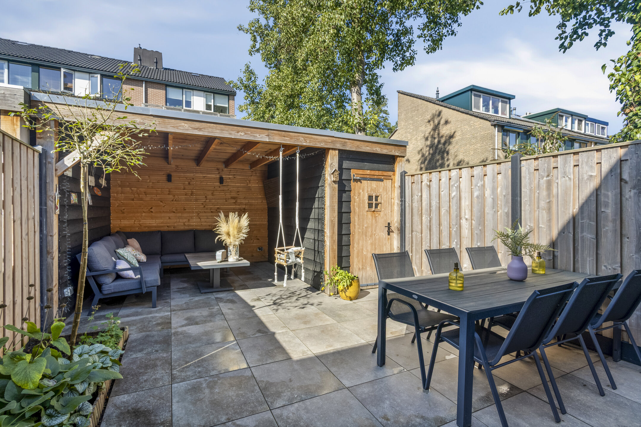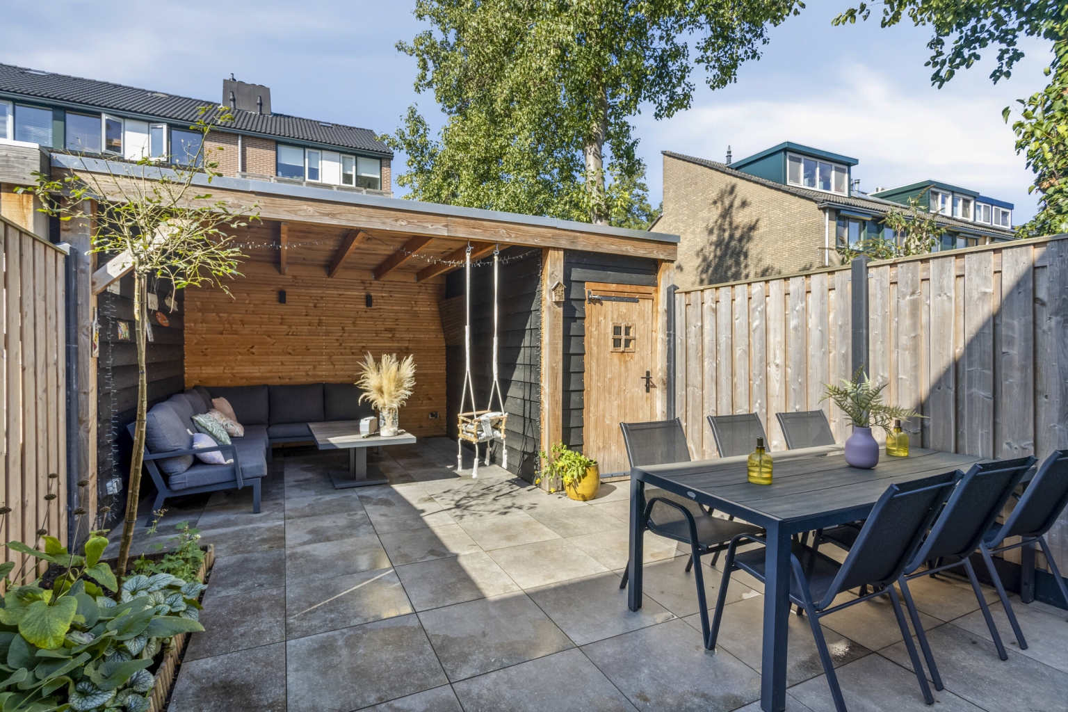 Achtertuin op het westen, voorzien van zonnescherm aan de achtergevel sierbestrating, houten overkapping/veranda met berging en achterom. Parkeren is mogelijk op de openbare parkeervoorzieningen in de straat.