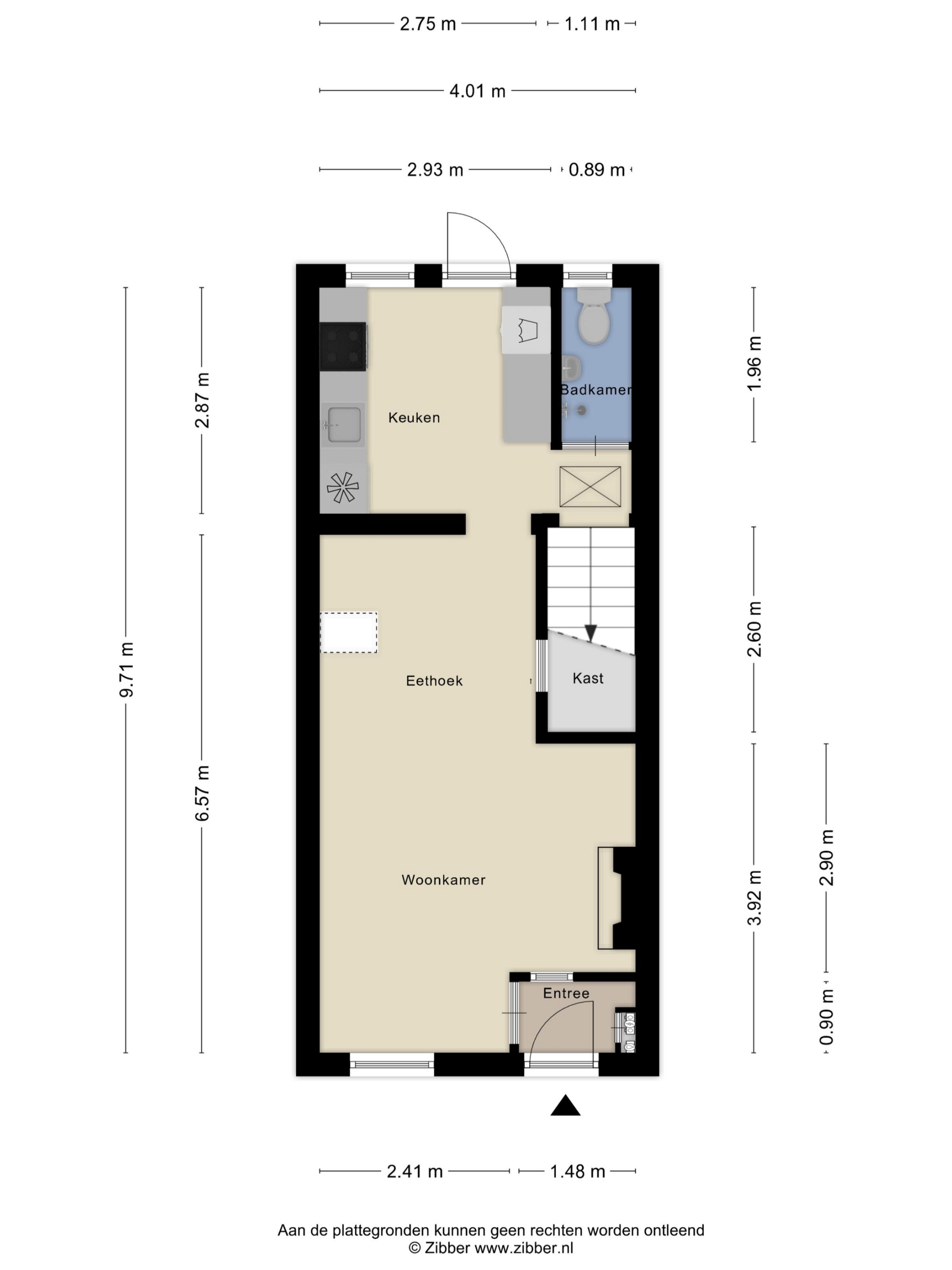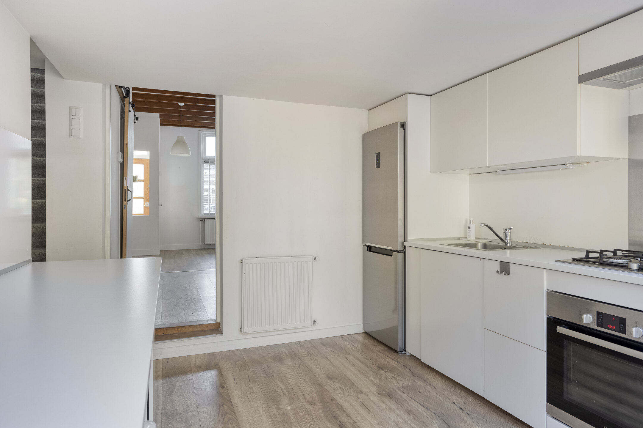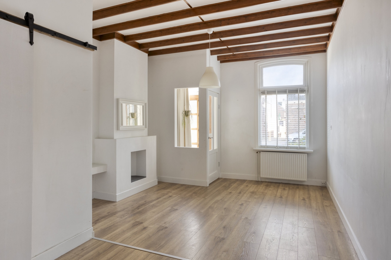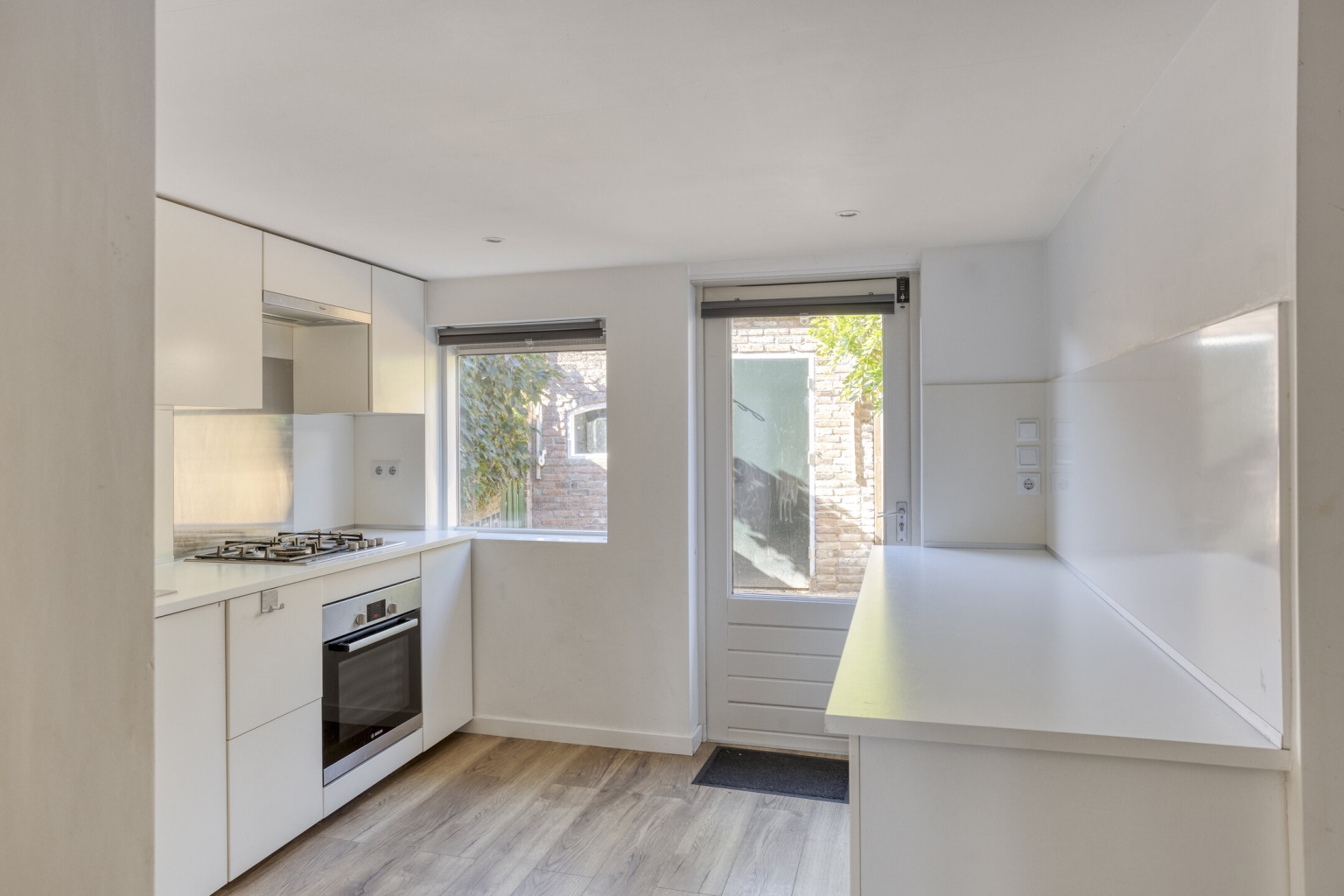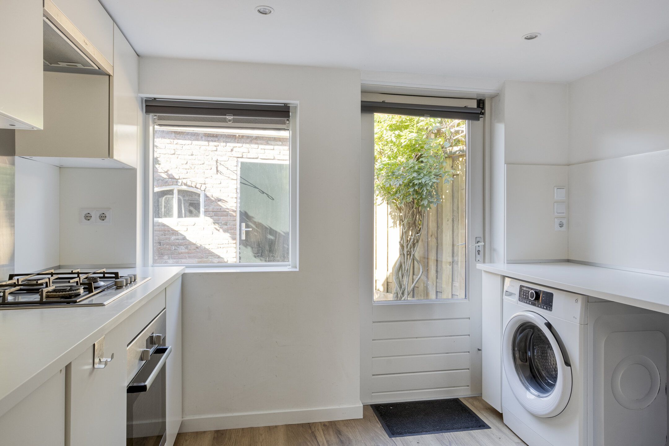 Begane grond: entree met meterkast. Keurig afwerkte woonkamer voorzien van schouw, trapkast en laminaatvloer, met zithoek aan de voorzijde en eethoek bij de keuken aan de achterzijde. Half open keuken met tuindeur, voorzien van 4-pits gaskookplaat, afzuigkap, oven, koelkast, vaatwasser en wasmachine. Toilet voorzien van wastafel en (extra) douche.