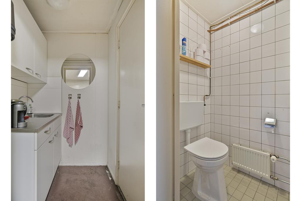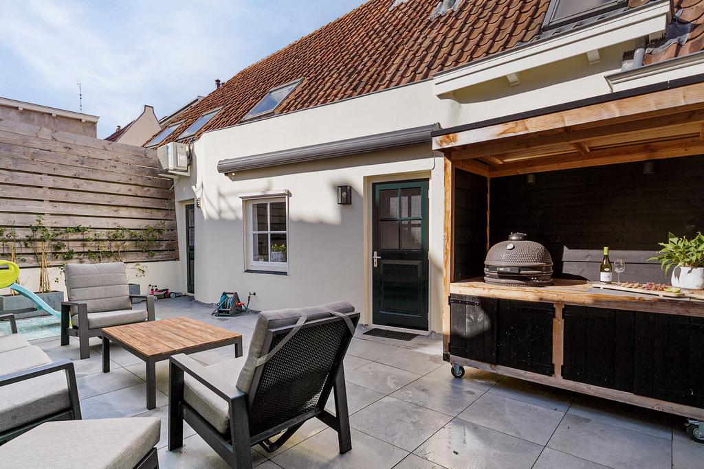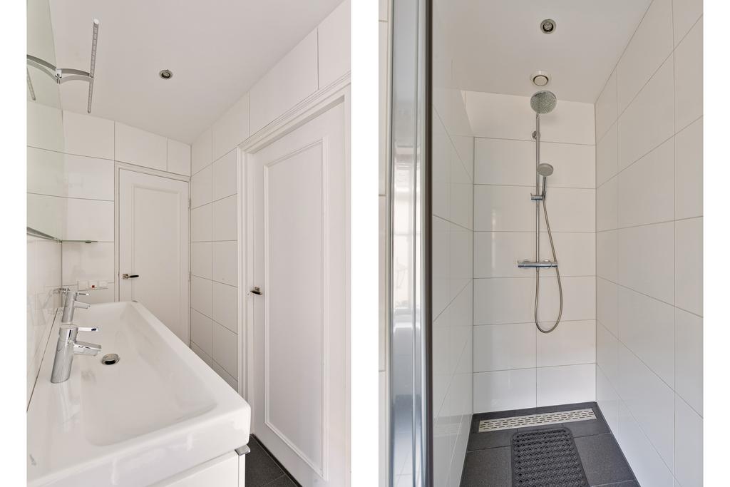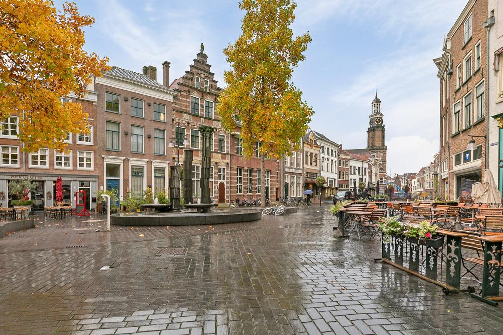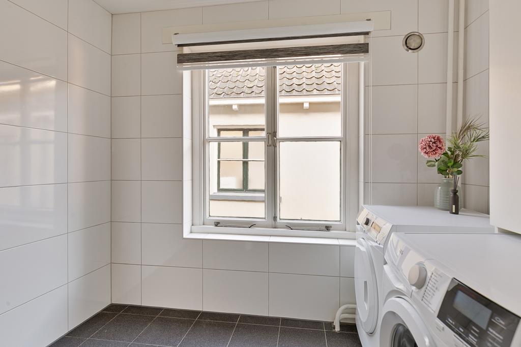 1e Verdieping: entree, hal met toegang tot het trappenhuis, garderobe en toilet voorzien van wandcloset en fonteintje. Fraai afgewerkte en lichte woonkamer met oude balken in het zicht. Luxe half open keuken voorzien van inductiekookplaat met afzuigkap, stoomoven, combi-oven, koelkast, vriezer, vaatwasser, Quooker en composiet aanrechtblad. Ruime slaapkamer ter grootte van circa 19,5 m², voorzien van vaste kasten. Badkamer voorzien van inloopdouche, dubbel-wastafelmeubel en wasmachine- en drogeraansluiting. Vanuit de woonkamer is het maar liefst 45 m² ruime dakterras te bereiken, wat een heerlijk rustig buiten biedt middenin de stad!