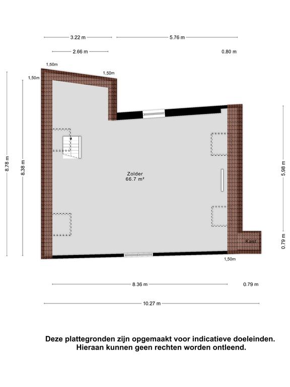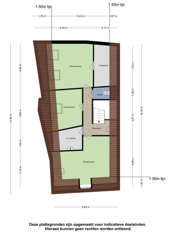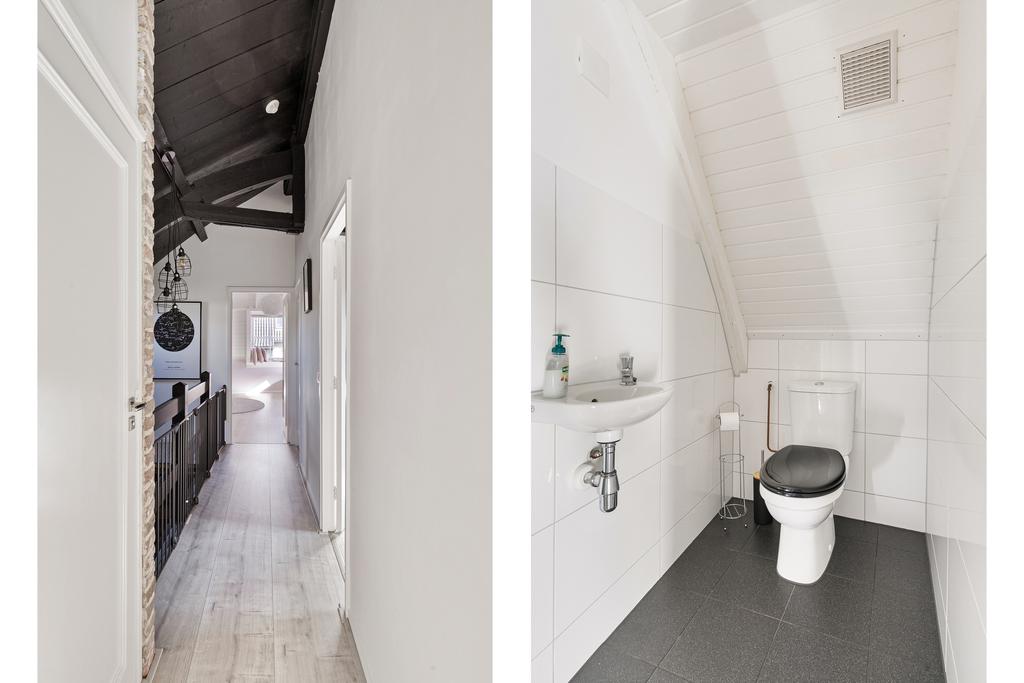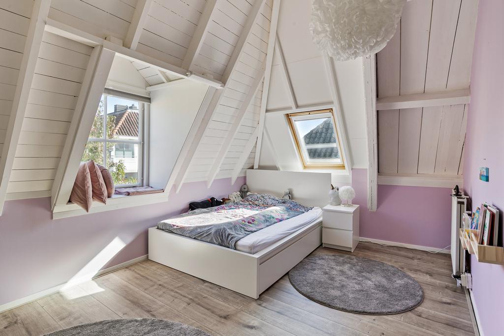 2e Verdieping: trappenhuis/overloop met zicht op de bijzondere (ronde)kapconstructie en toegang tot de berging met cv-opstelplaats. Drie slaapkamers ter grootte van circa 8,5 m², 15 m² en 16 m², goed afgewerkt en voorzien van dakvensters. De kamer aan de achterzijde heeft tevens toegang tot bergruimte achter de knieschotten ter grootte van circa 5,5 m².