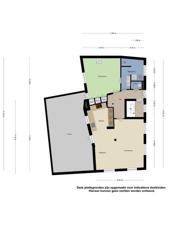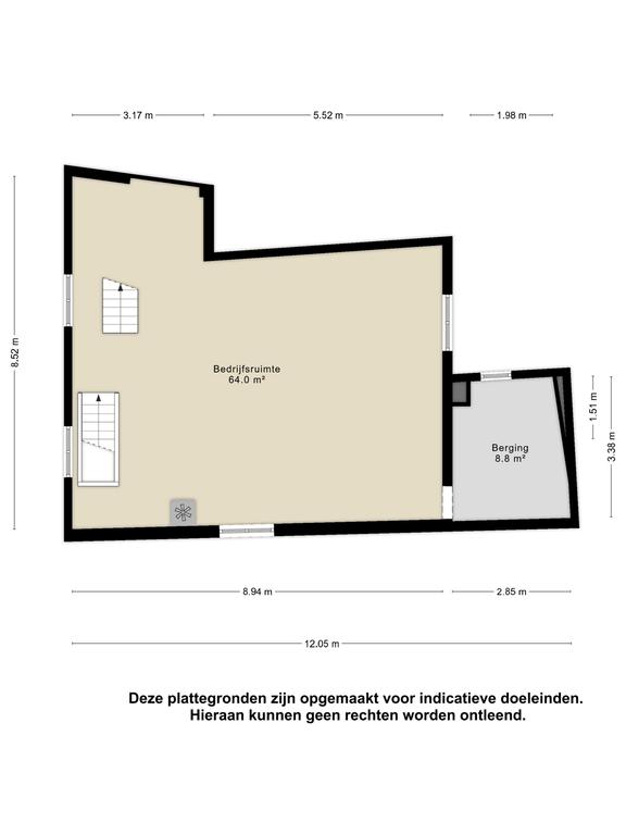 Begane grond: entree met meterkast en trapopgang naar de woonverdieping.