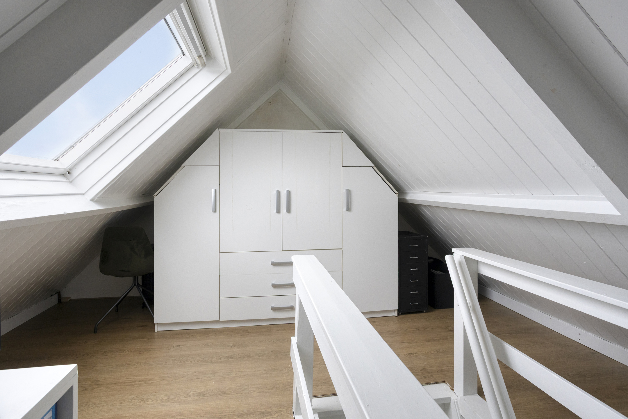 2e Verdieping: middels vaste trap te bereiken zolderkamer met dakraam, welke in gebruik is als werkkamer. Berging t.b.v. de cv-installatie.