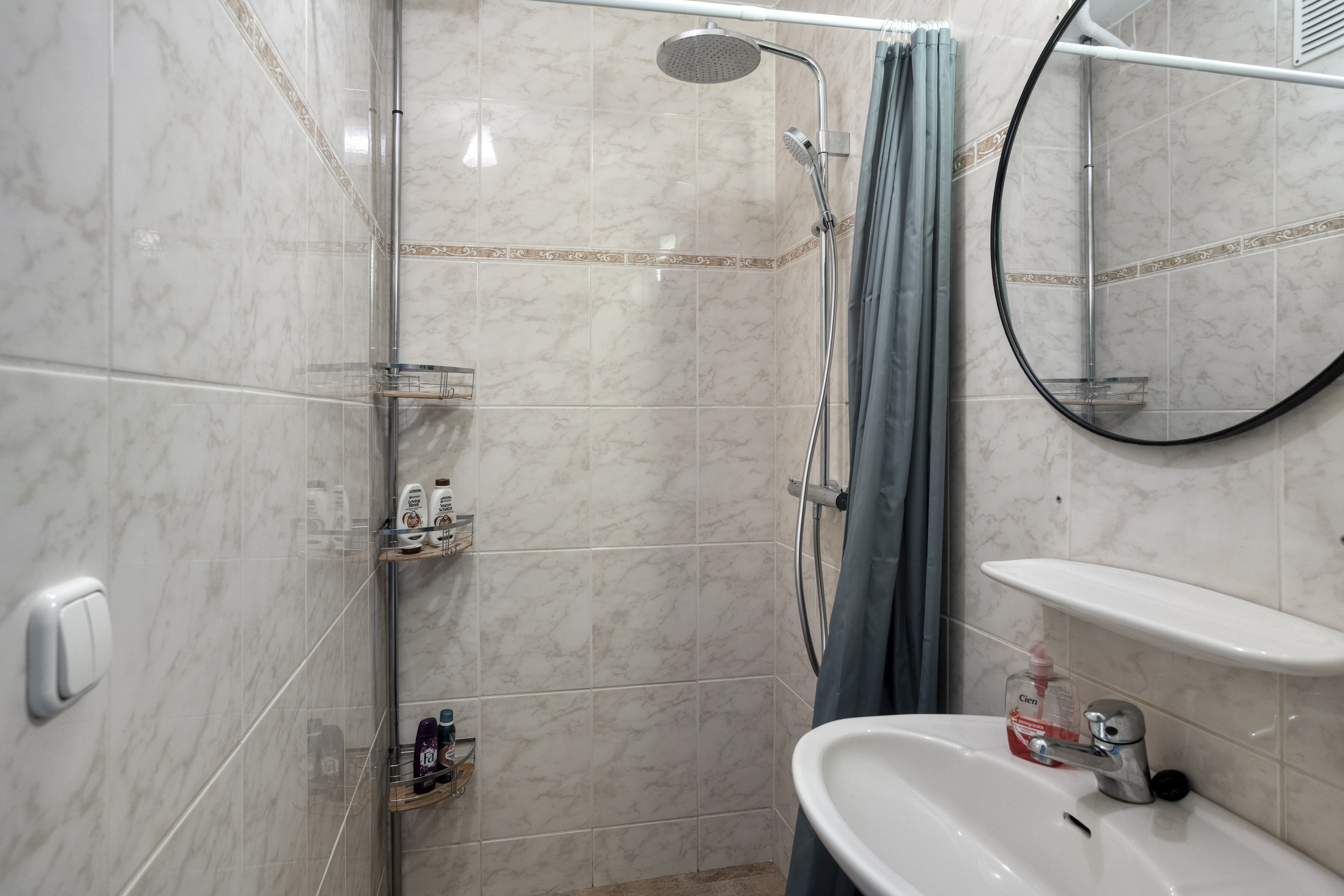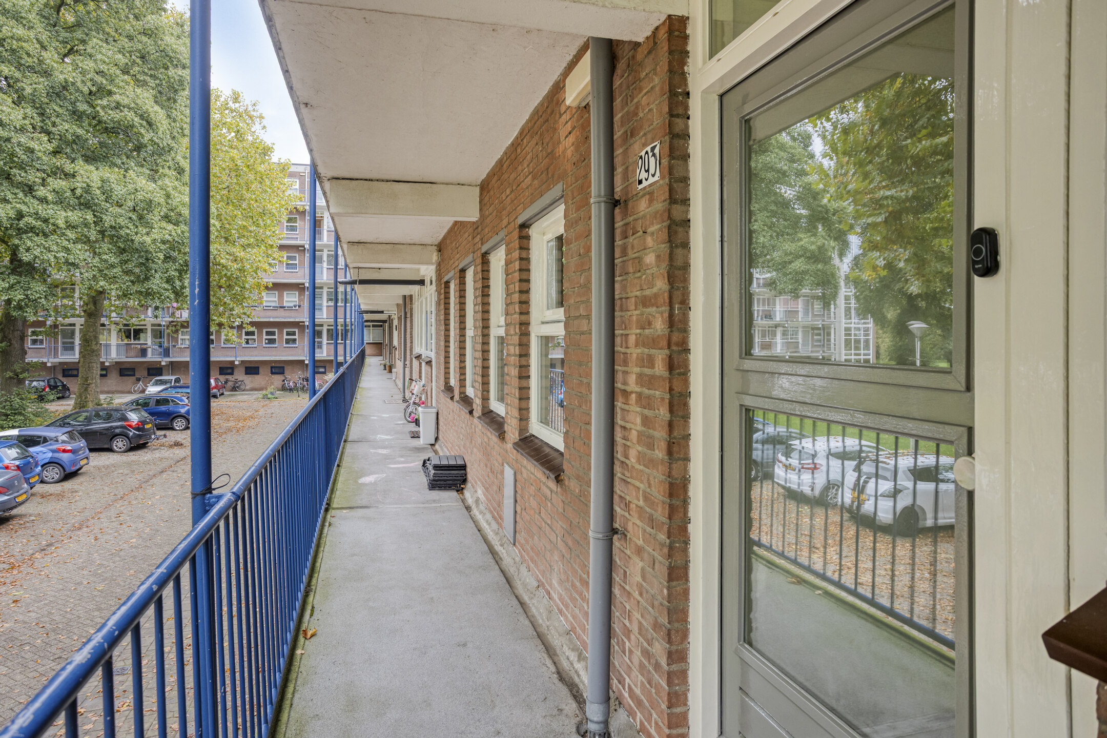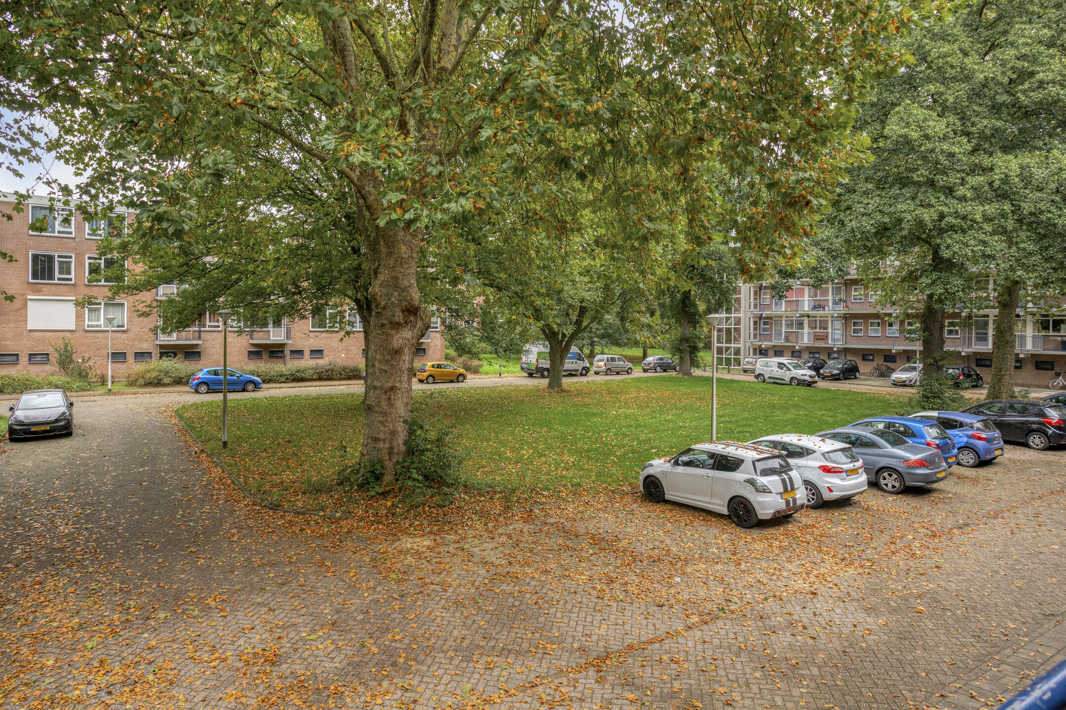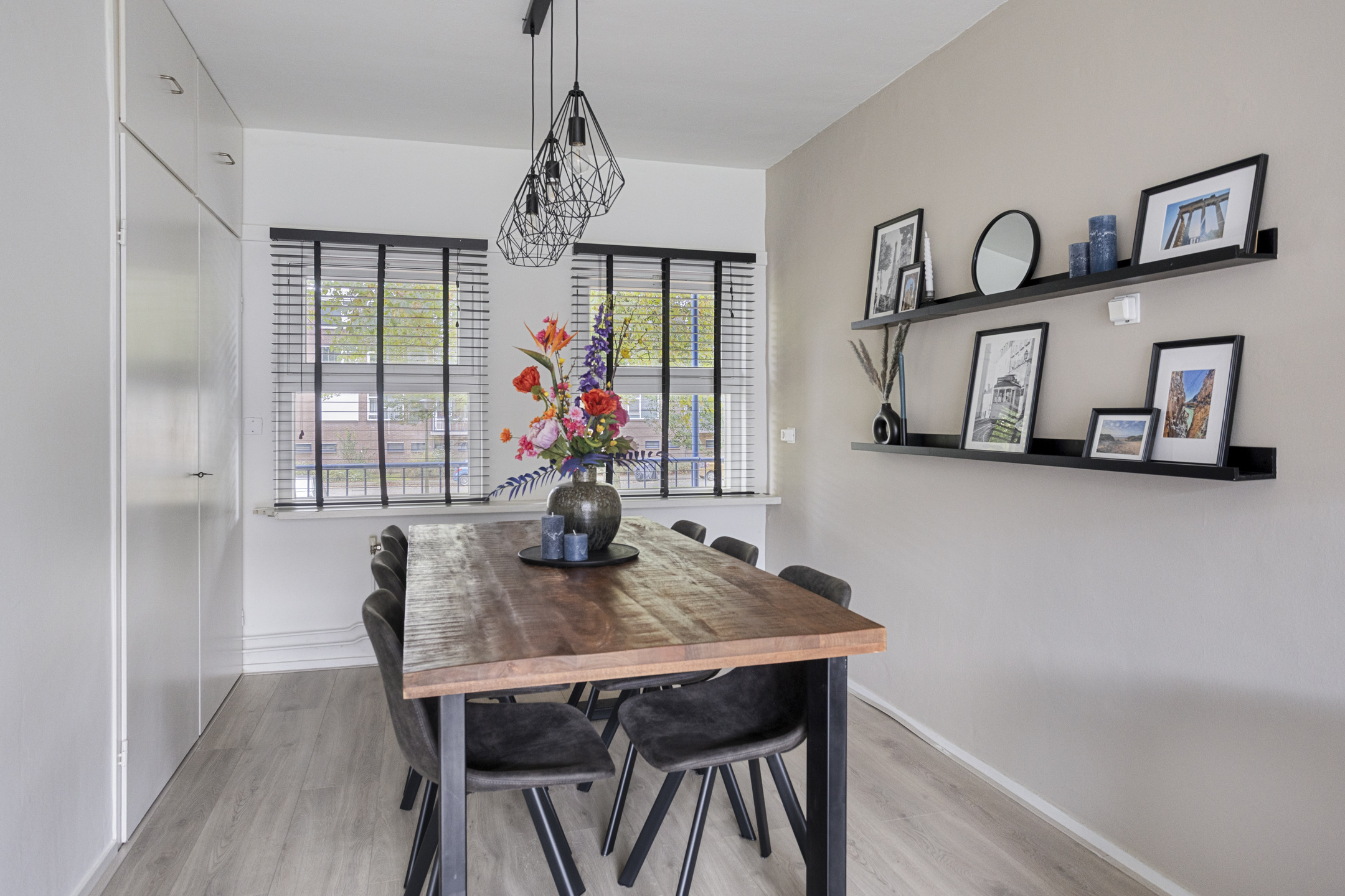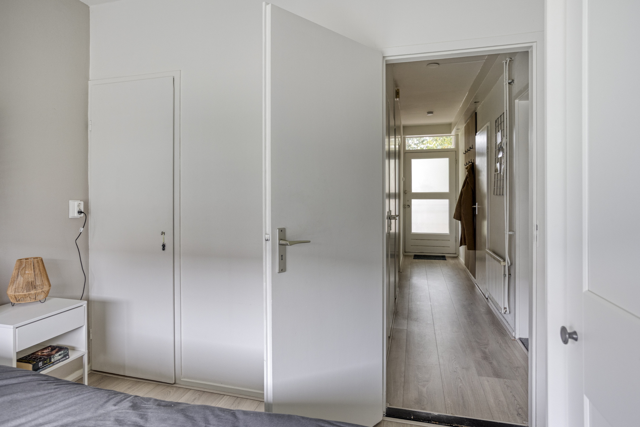 1e (Woon)verdieping: entree, hal met vaste kast, meterkast en toilet voorzien van wandcloset. Ruime, strak afgewerkte doorzonwoonkamer met aparte eet- en zithoek en toegang tot het zonnige balkon. Nette keuken voorzien van 4-pits gaskookplaat, afzuigkap, koelkast en vaste kast t.b.v. van wasapparatuur. Nette slaapkamer ter grootte van circa 8,5 m² met vaste kast. Nette badkamer met wastafel en inloop regendouche.