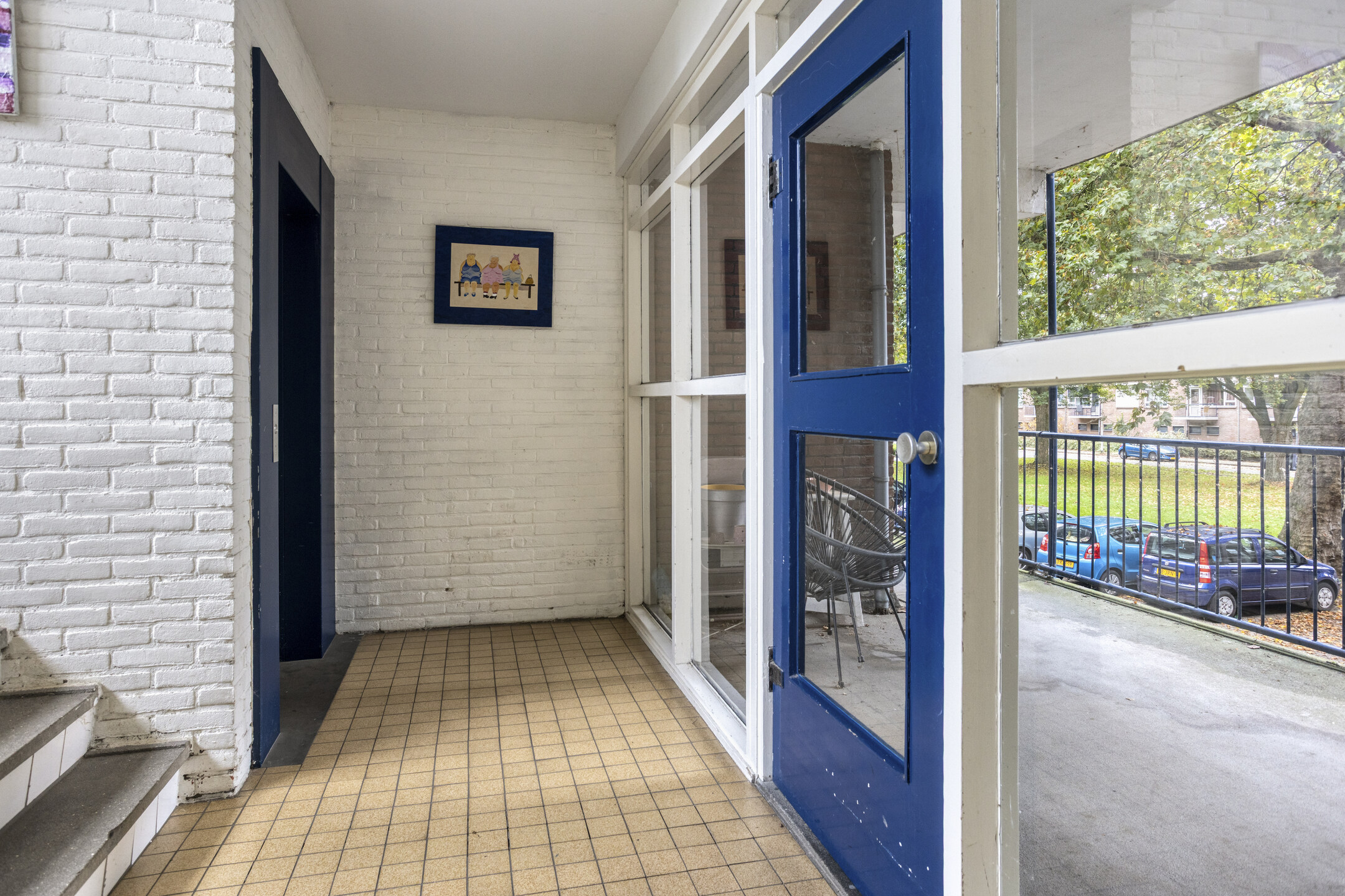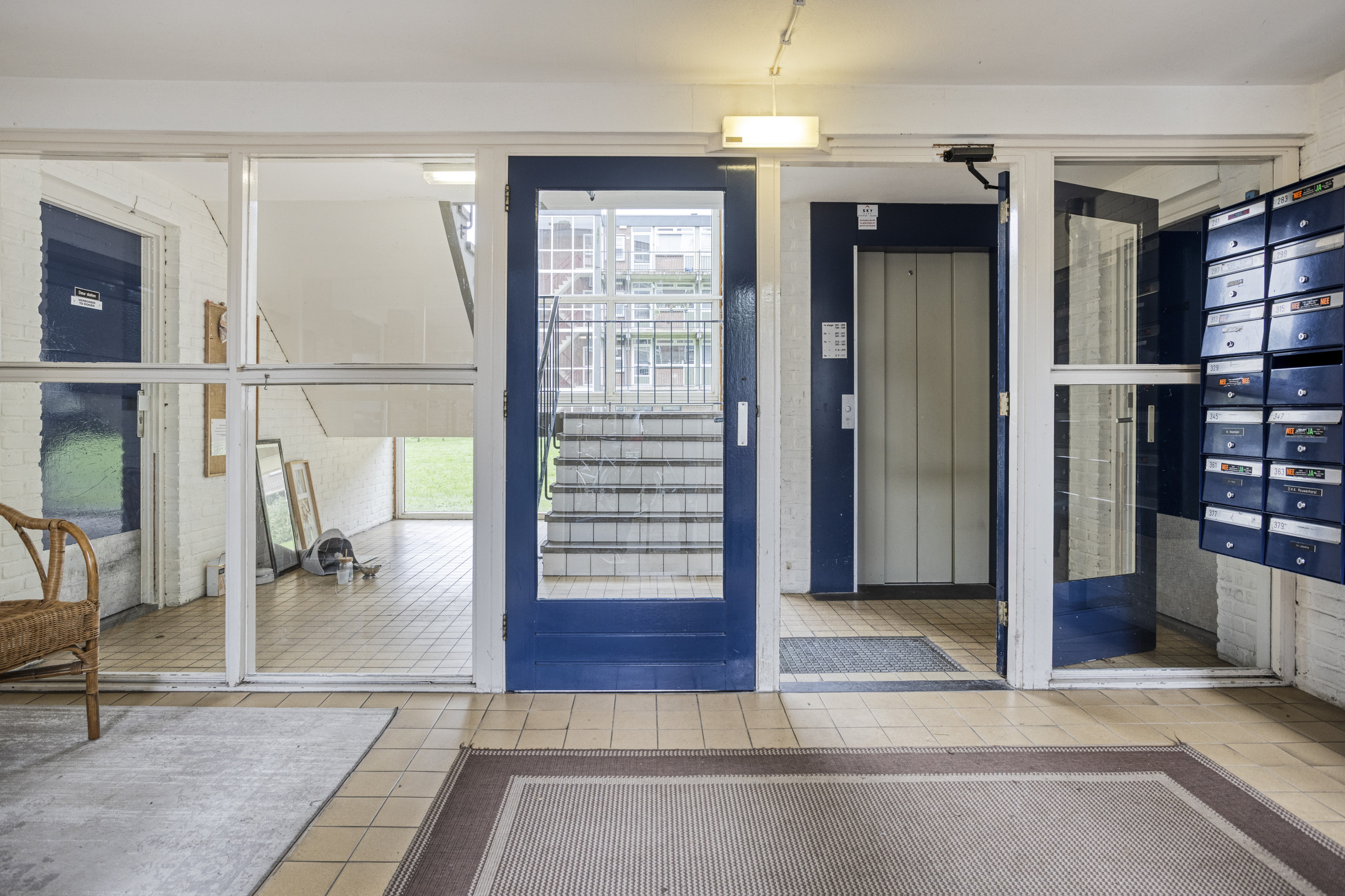 Begane grond: gemeenschappelijke entree met brievenbussen, lift, trapopgang naar de woonverdieping en toegang tot de (privé) berging ter grootte van circa 5 m².