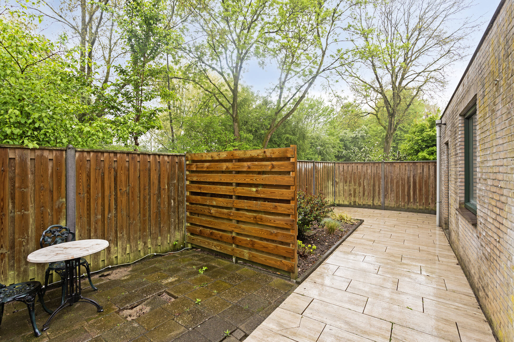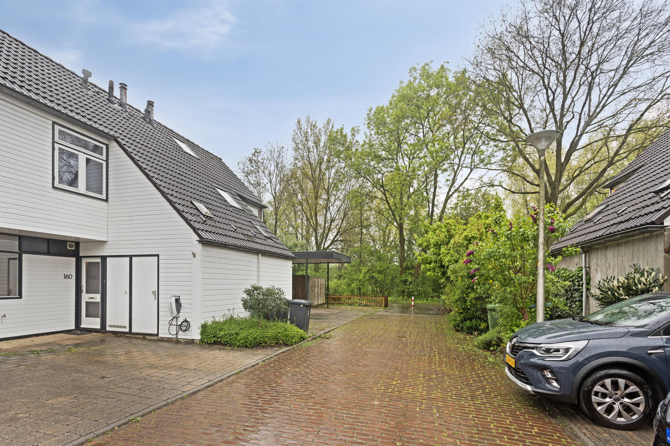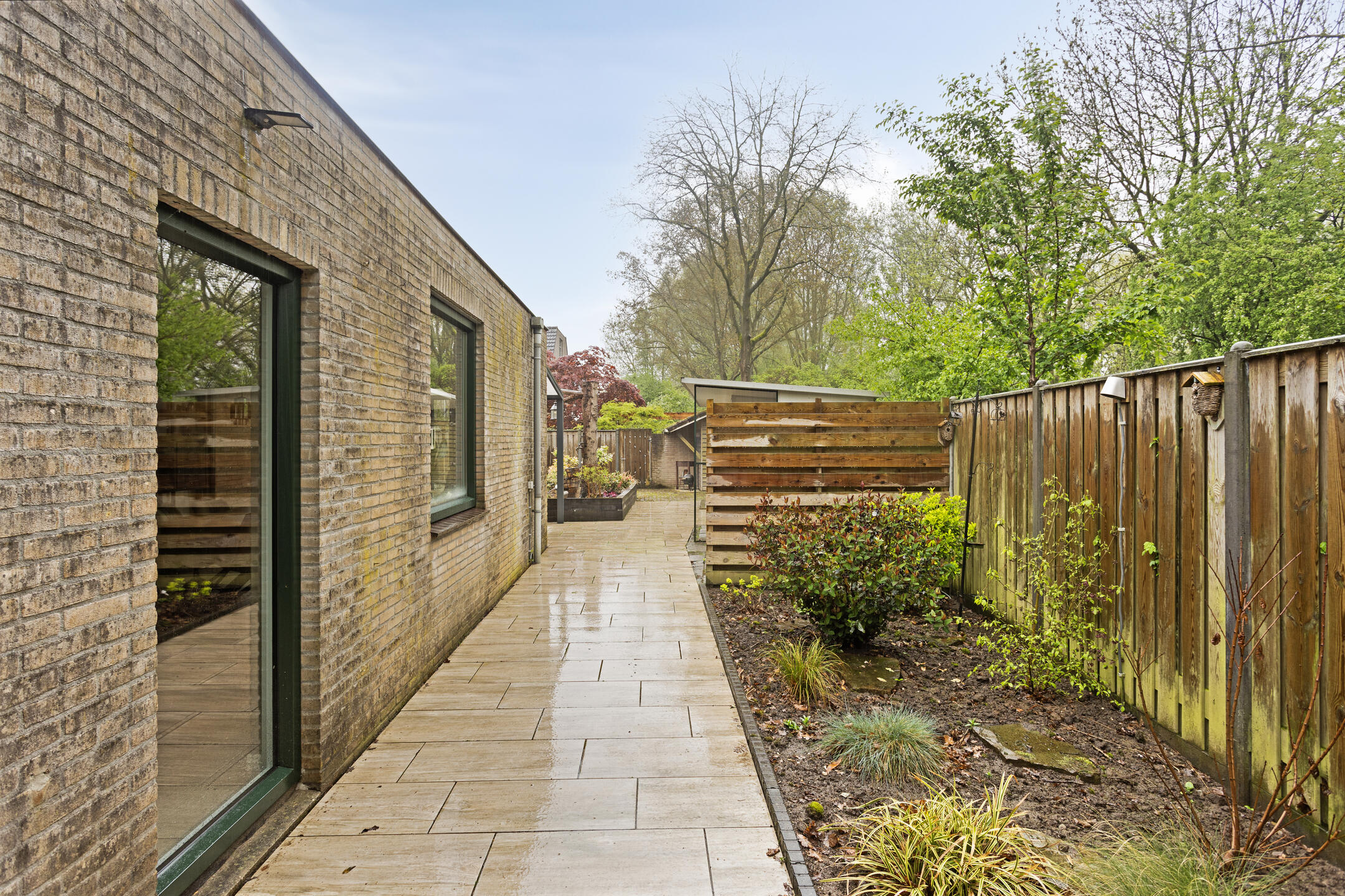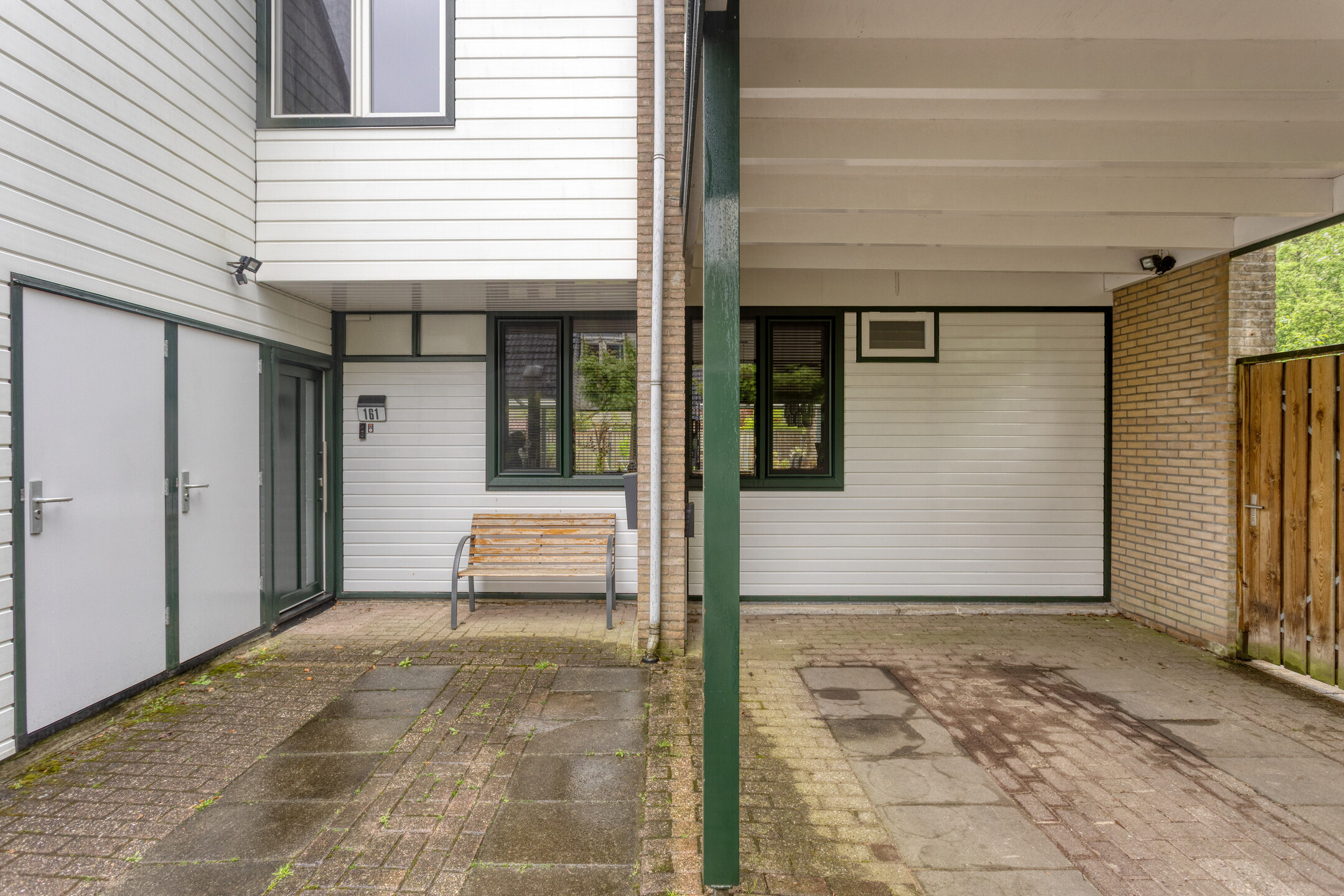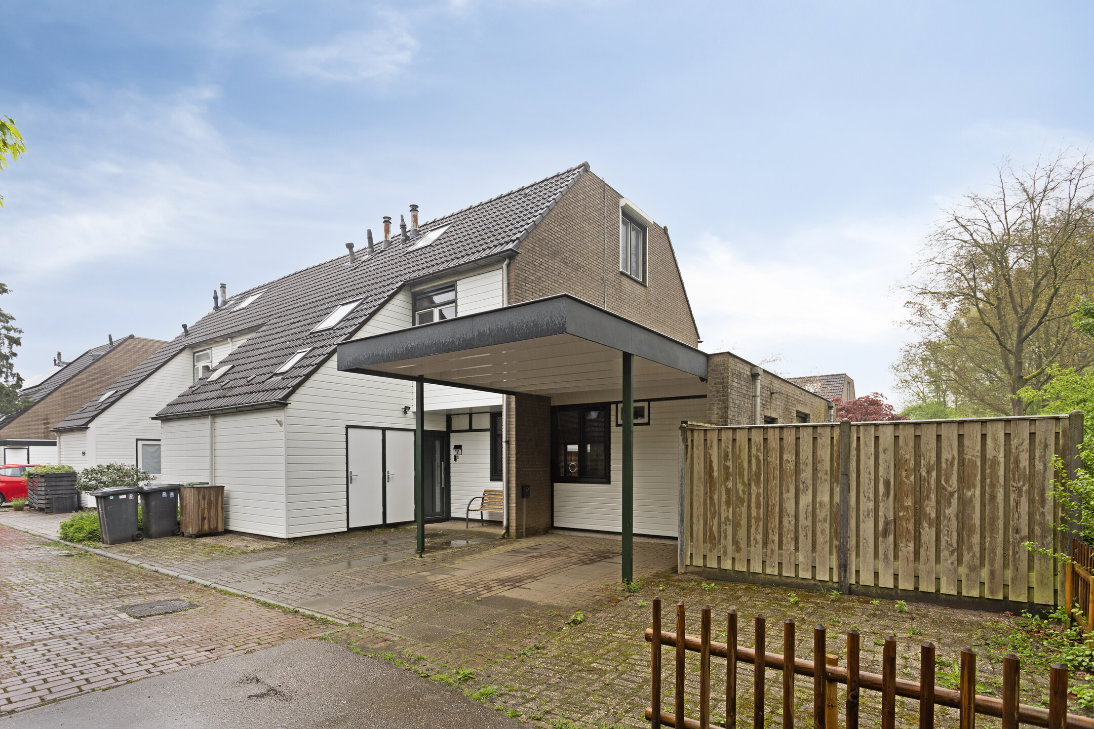 Riante achter-/zijtuin, met overdekt terras aan de achtergevel, gazon, sierbestrating, borders, twee bergingen en achterom. Voor het huis is parkeerruimte op eigen terrein voor drie personenauto’s waarvan één onder de carport!
