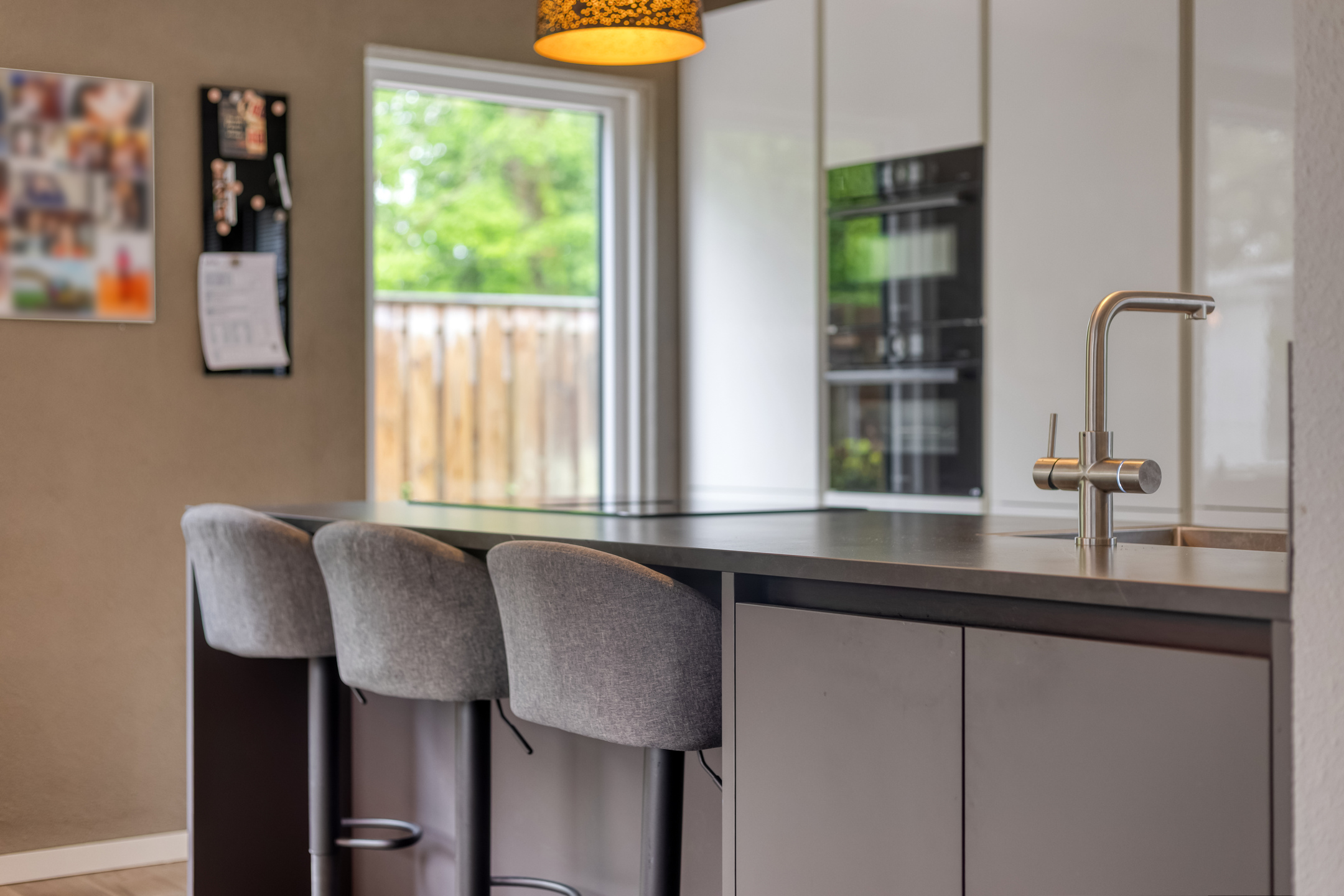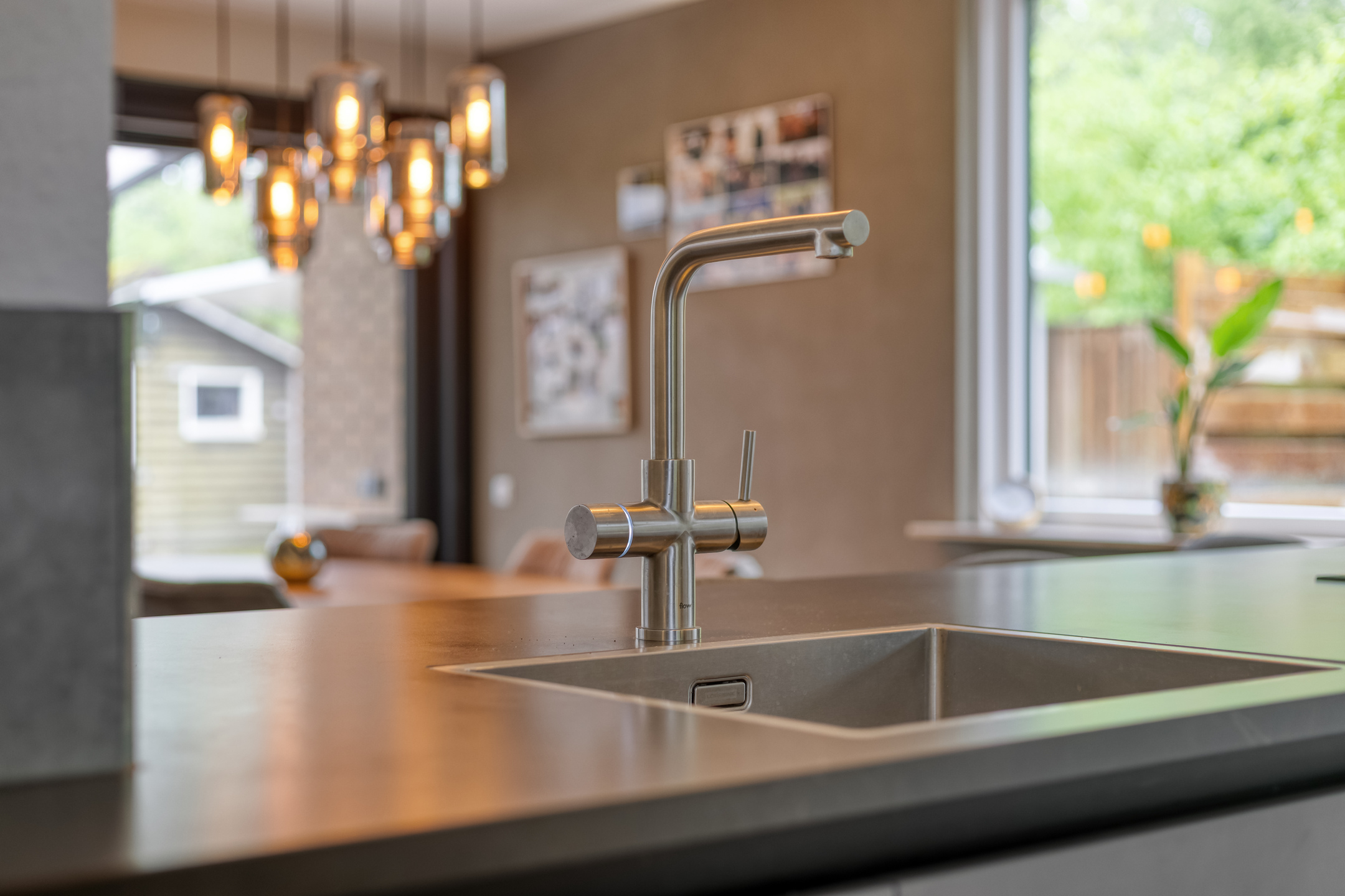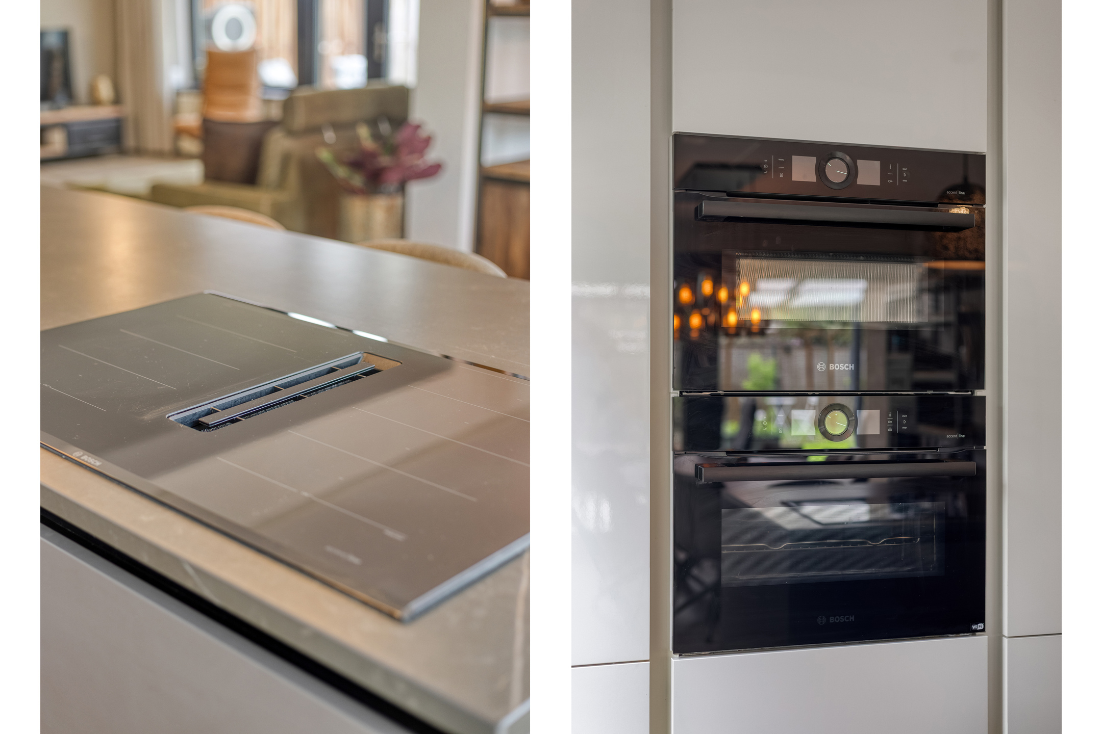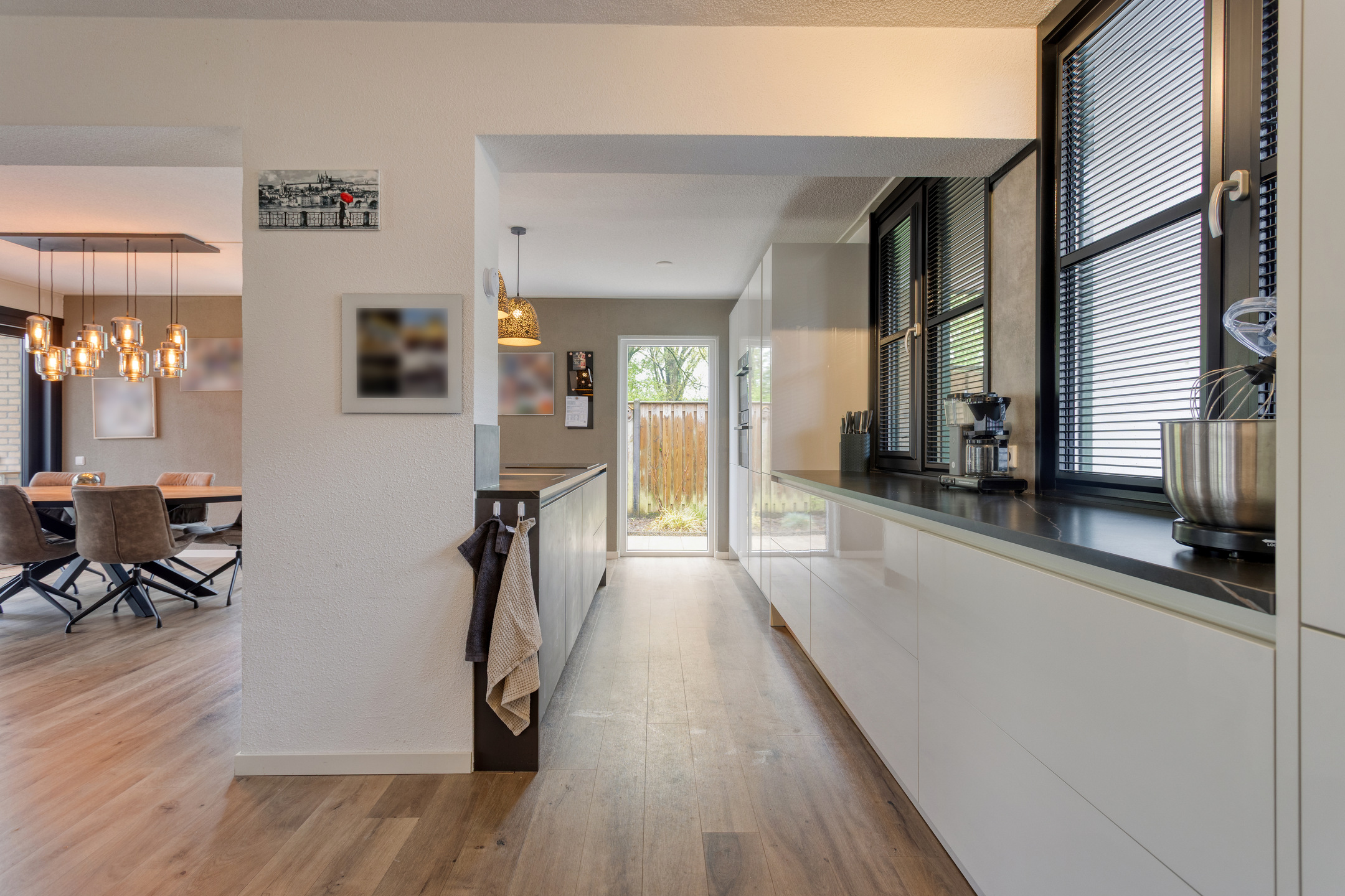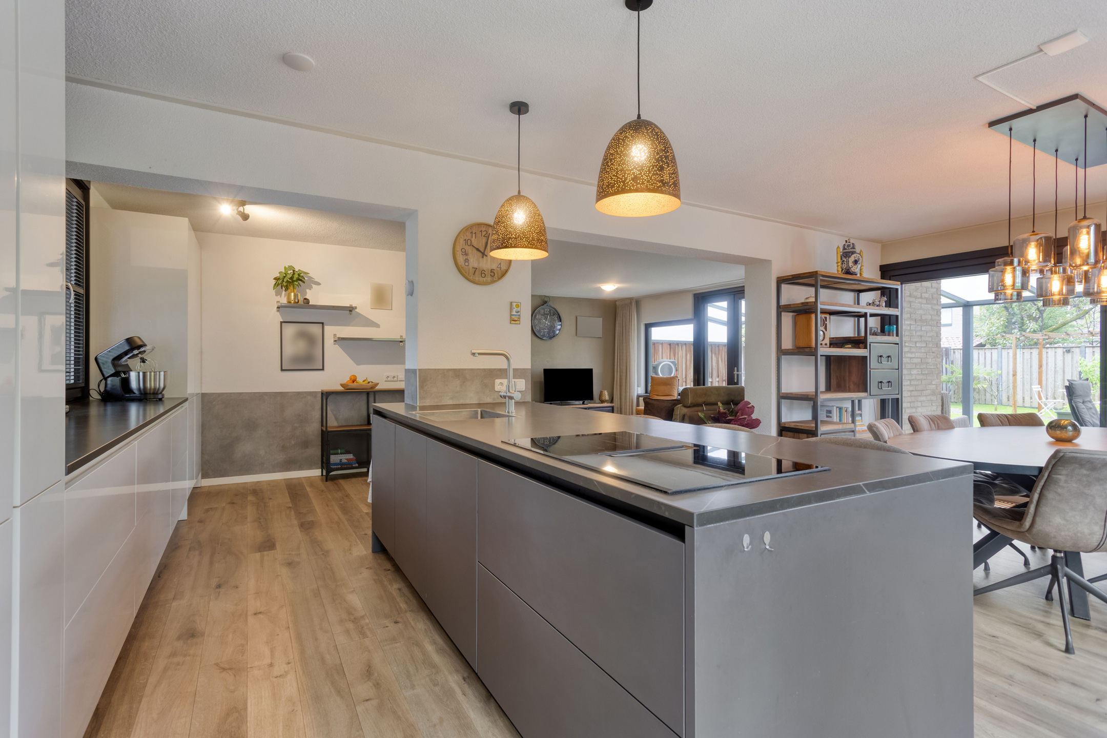 Begane grond: entree, hal met vaste kast, toilet voorzien van wandcloset en fonteintje, trapopgang naar de 1e verdieping en toegang tot de berging/bijkeuken met wasmachine- en drogeropstelling. Royale woonkamer met openslaande deuren naar de achtertuin. Riante woonkeuken met eetgedeelte aan de tuinzijde voorzien van schuifpui. Deze luxe keuken is o.a. voorzien van inductiekookplaat met geïntegreerde afzuiging, combi-oven, koel-/vriescombinatie, vaatwasser, kokend water kraan en hete lucht-/stoomoven.