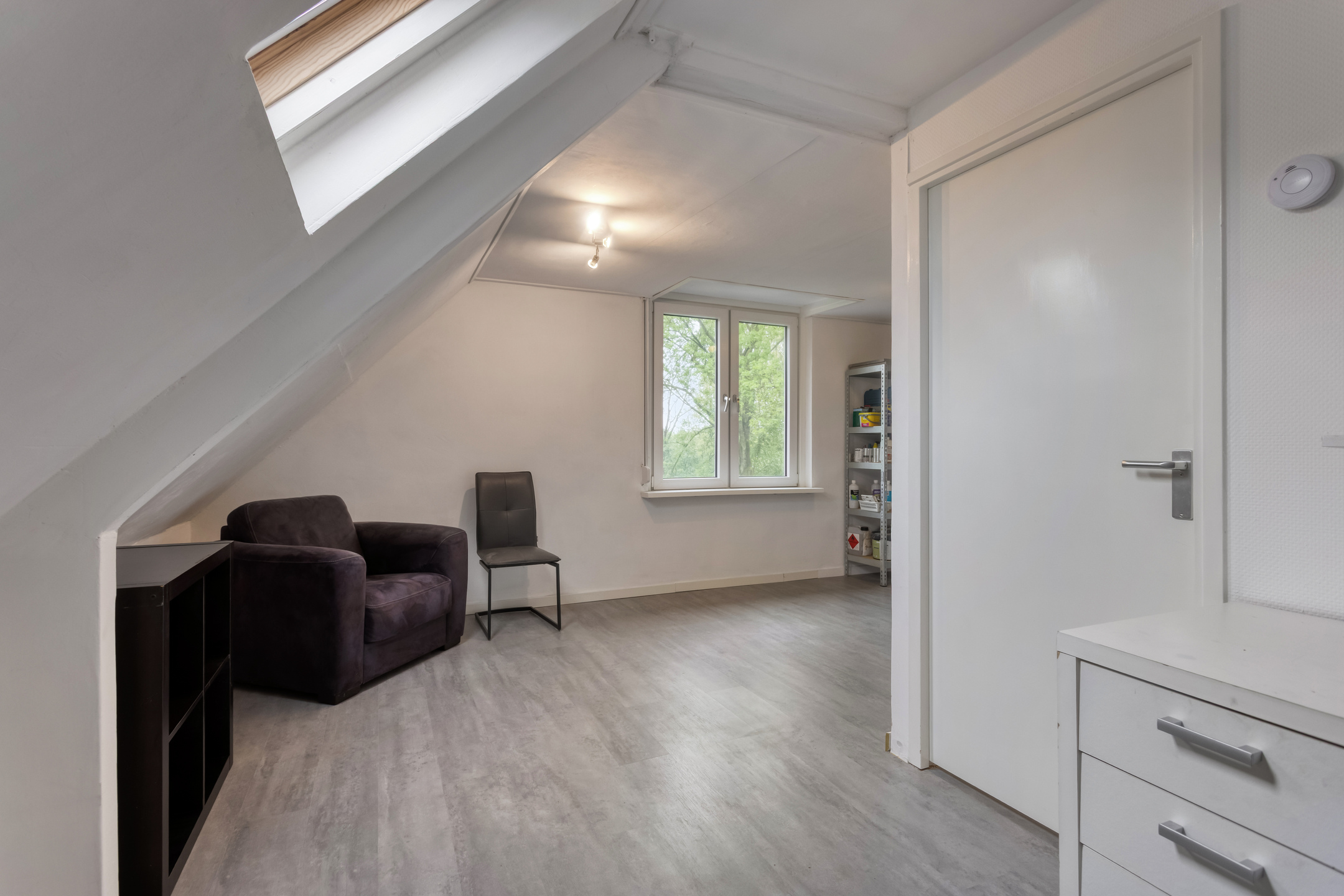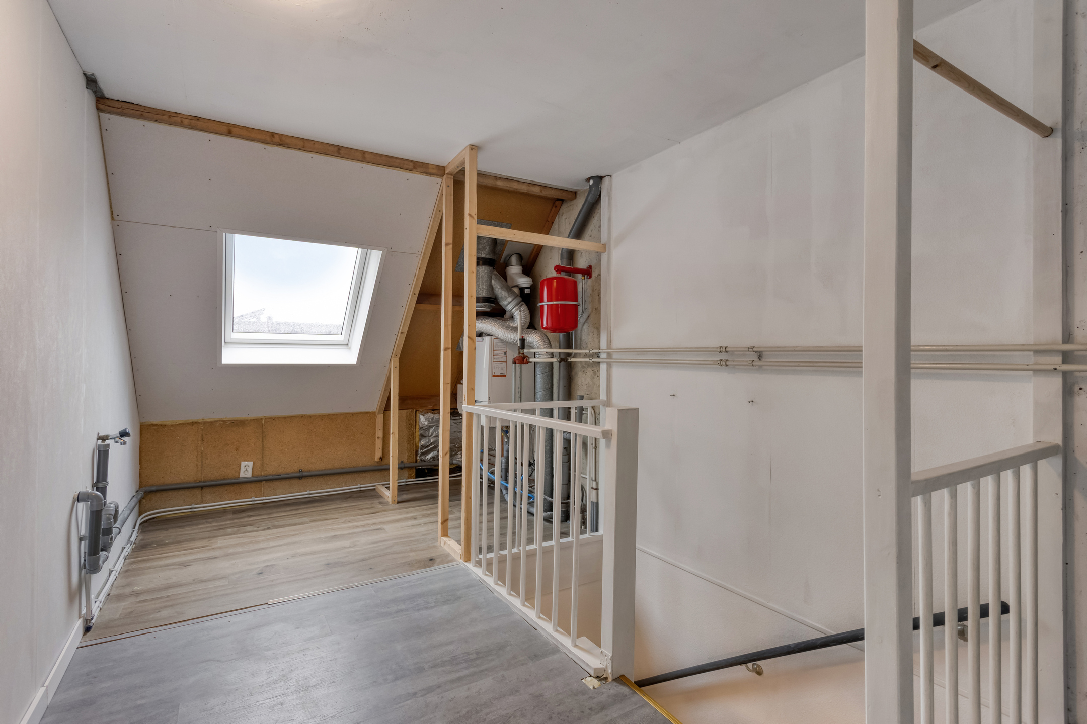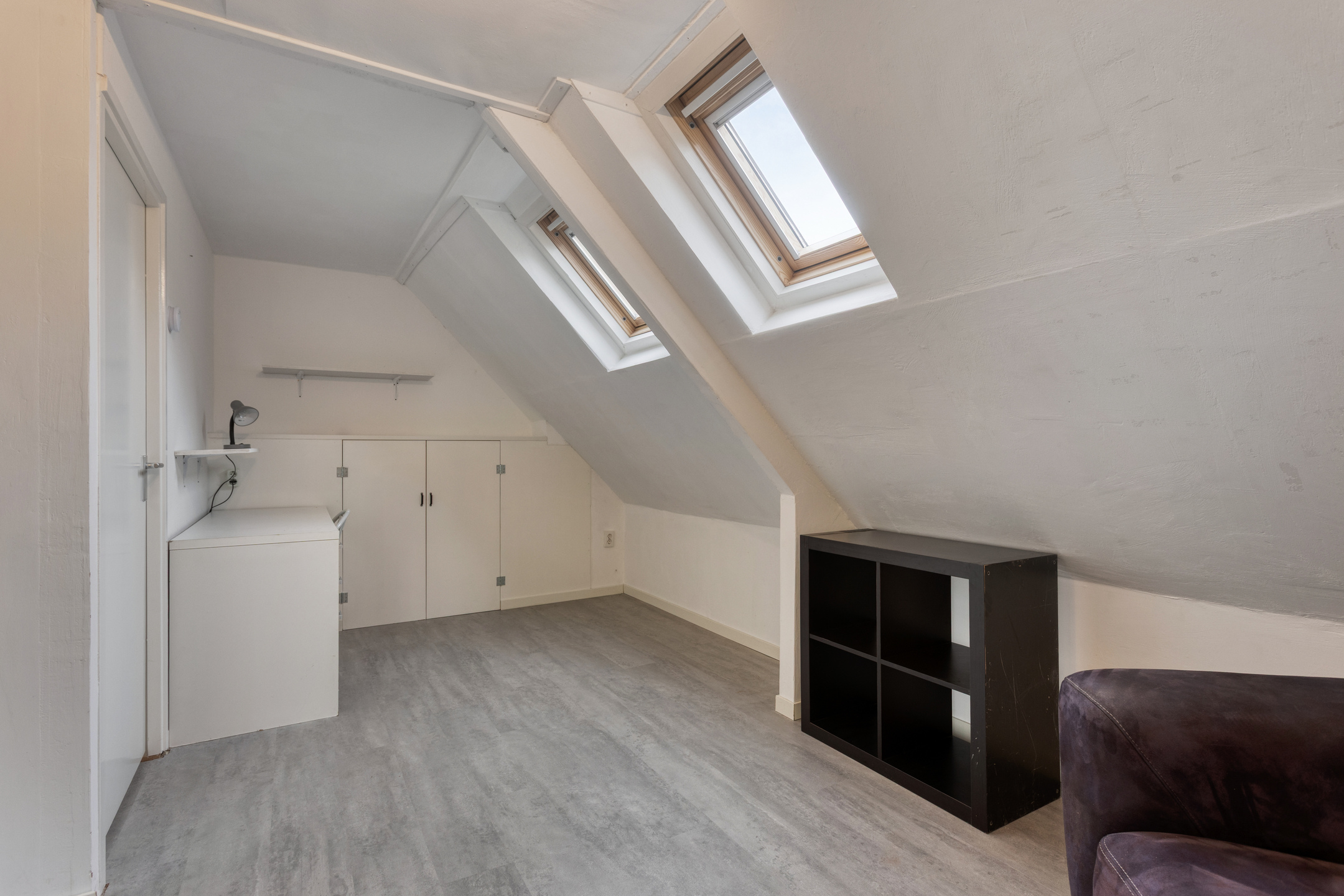 2e Verdieping: overloop met cv-opstelplaats, wasmachine-aansluiting en dakraam. Ruime slaapkamer ter grootte van circa 20 m², voorzien van twee dakramen, wastafel en vaste kasten. Het is mogelijk om twee slaapkamers te realiseren.