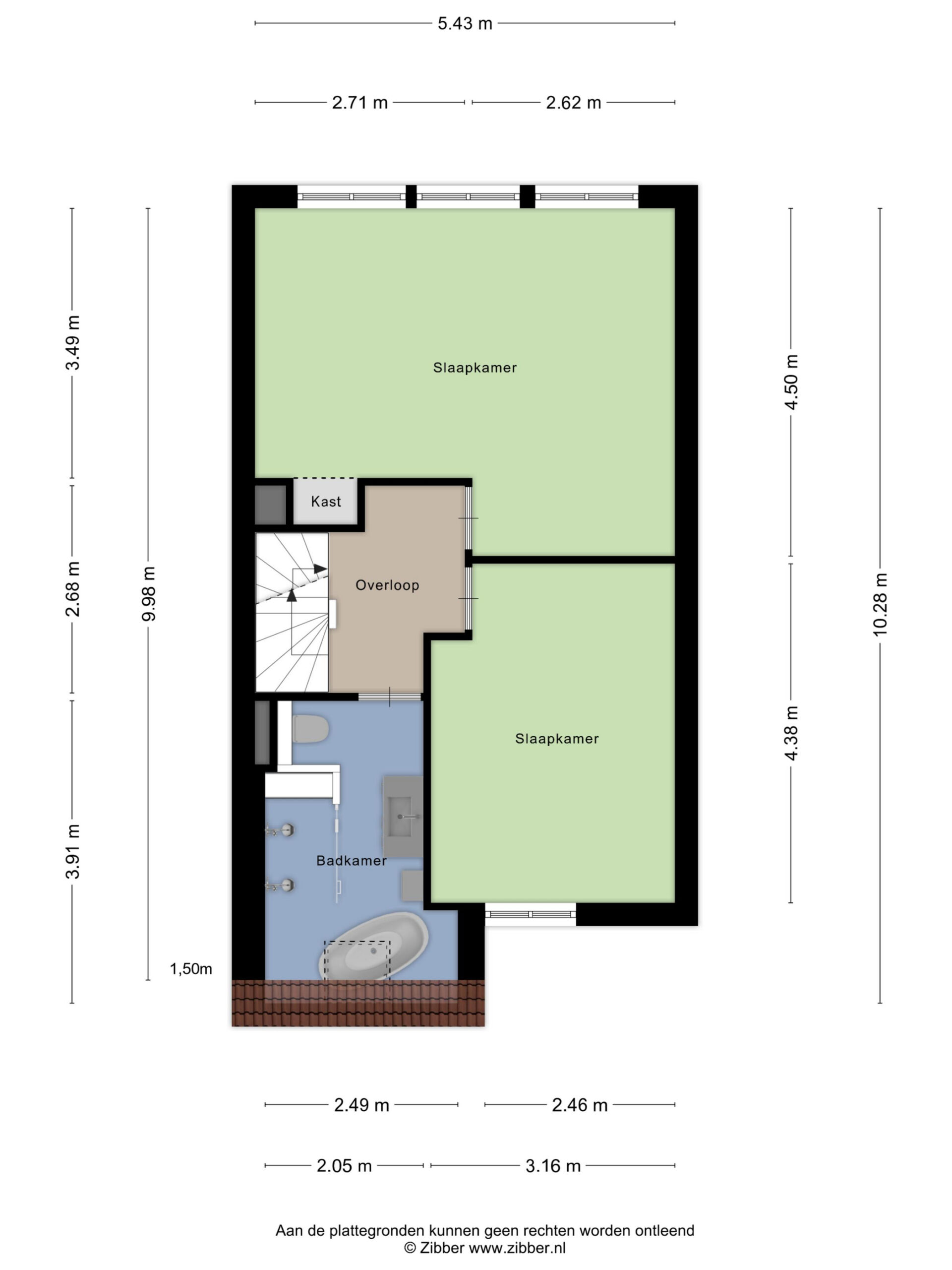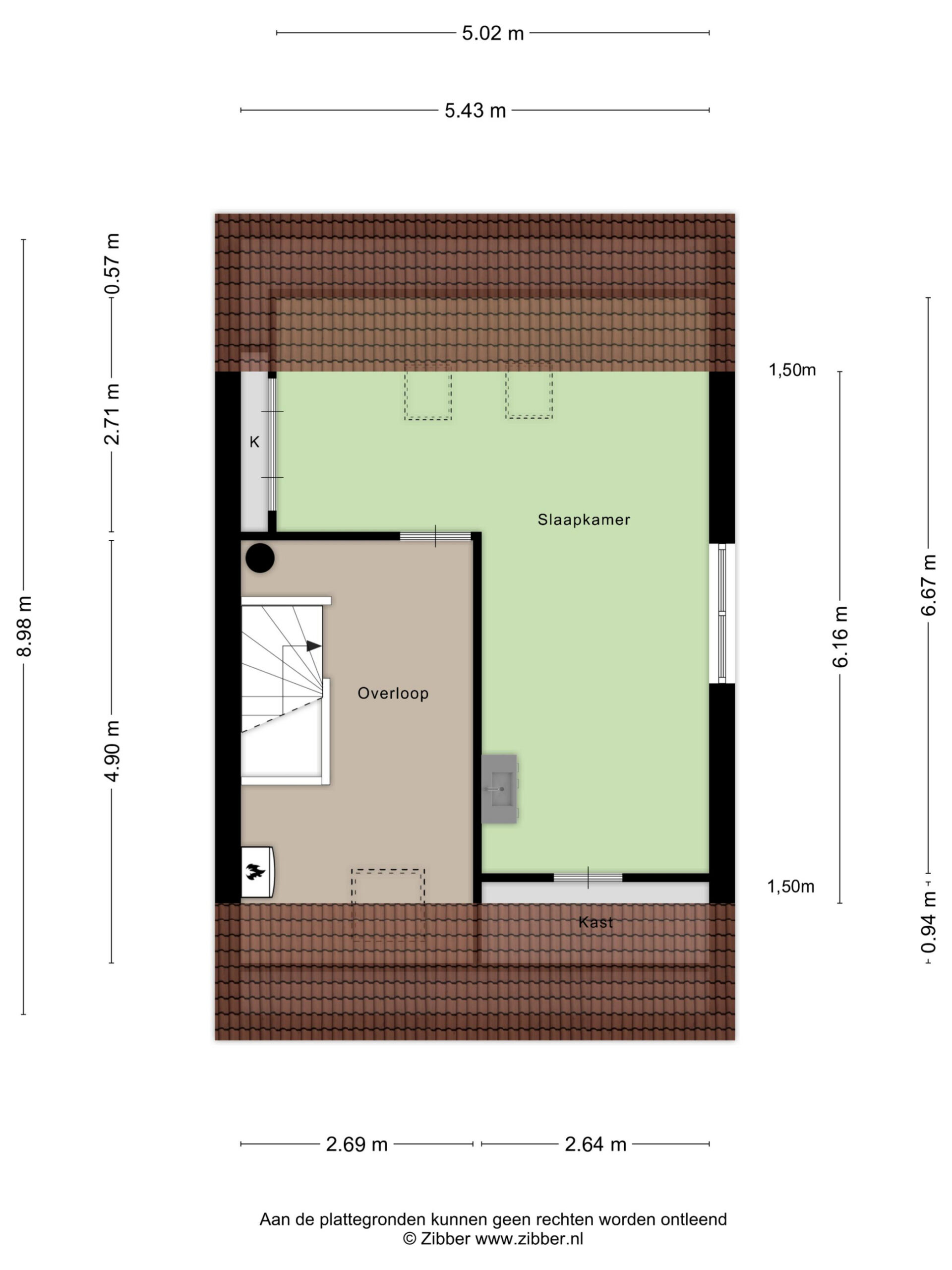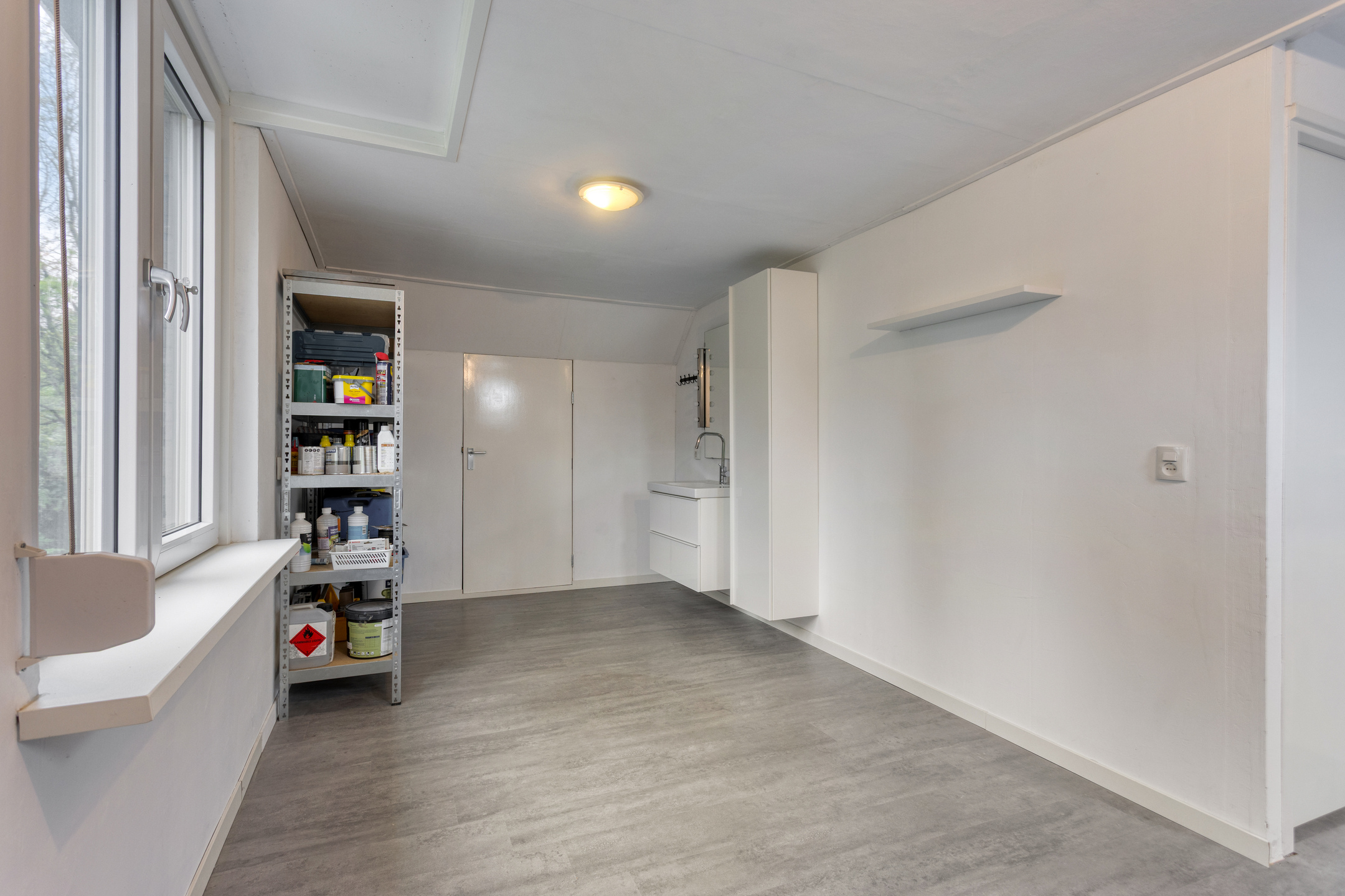 2e Verdieping: overloop met cv-opstelplaats, wasmachine-aansluiting en dakraam. Ruime slaapkamer ter grootte van circa 20 m², voorzien van twee dakramen, wastafel en vaste kasten. Het is mogelijk om twee slaapkamers te realiseren.