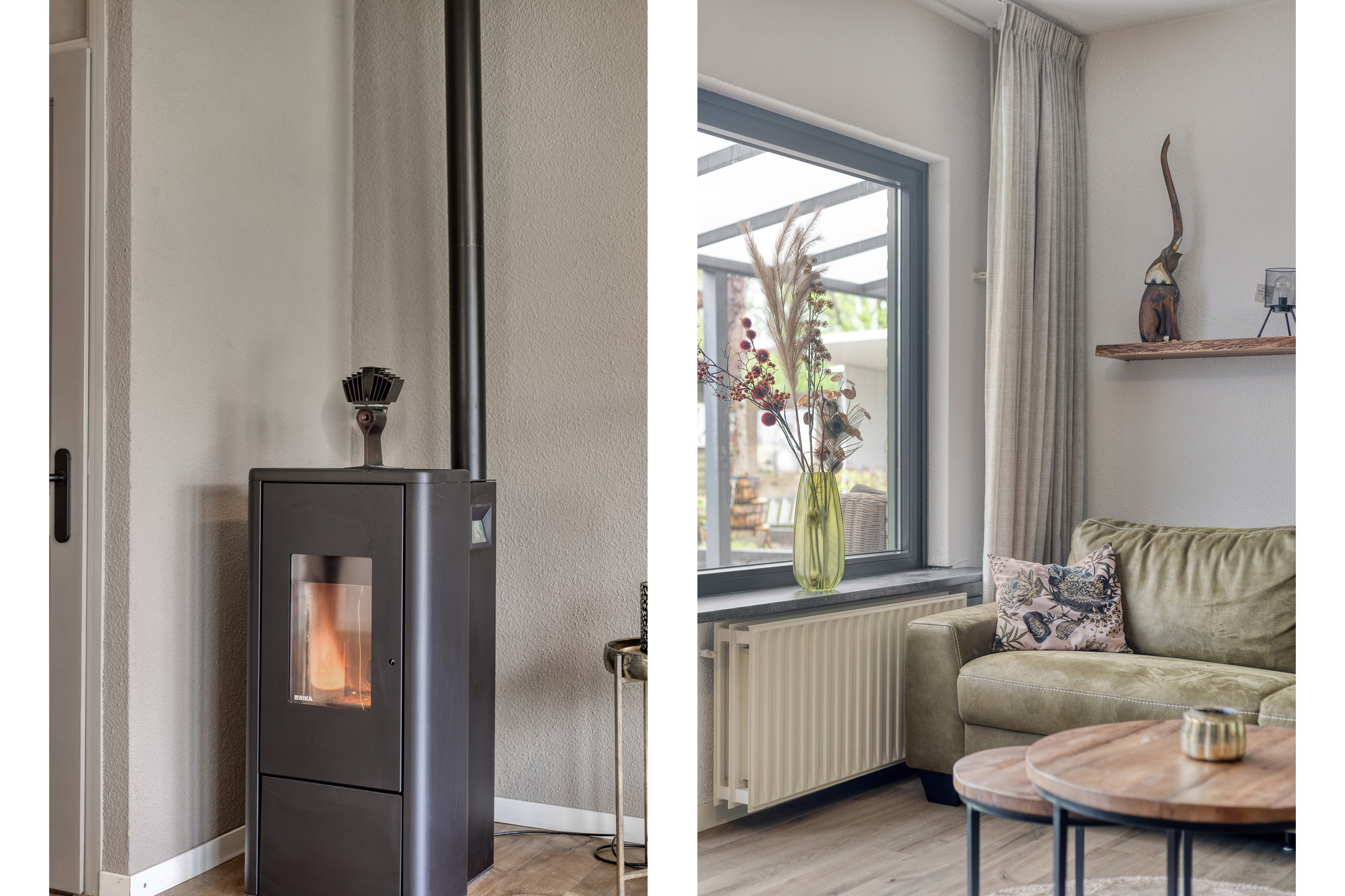 De kozijnen zijn van kunststof met HR++ beglazing en de ramen en tuindeuren zijn voorzien van horren.