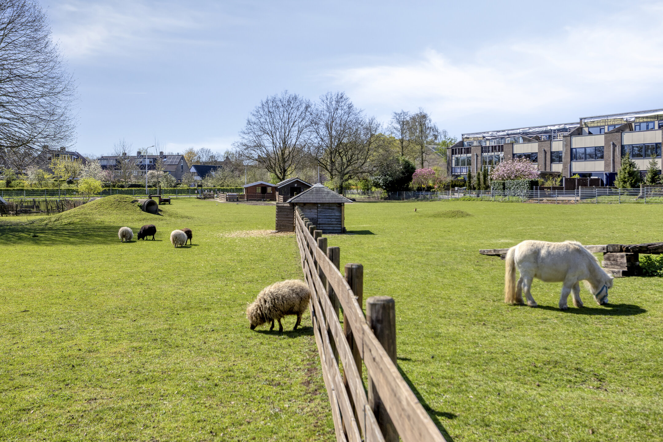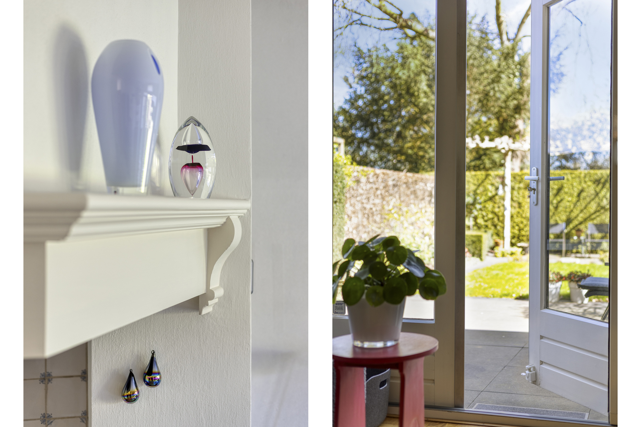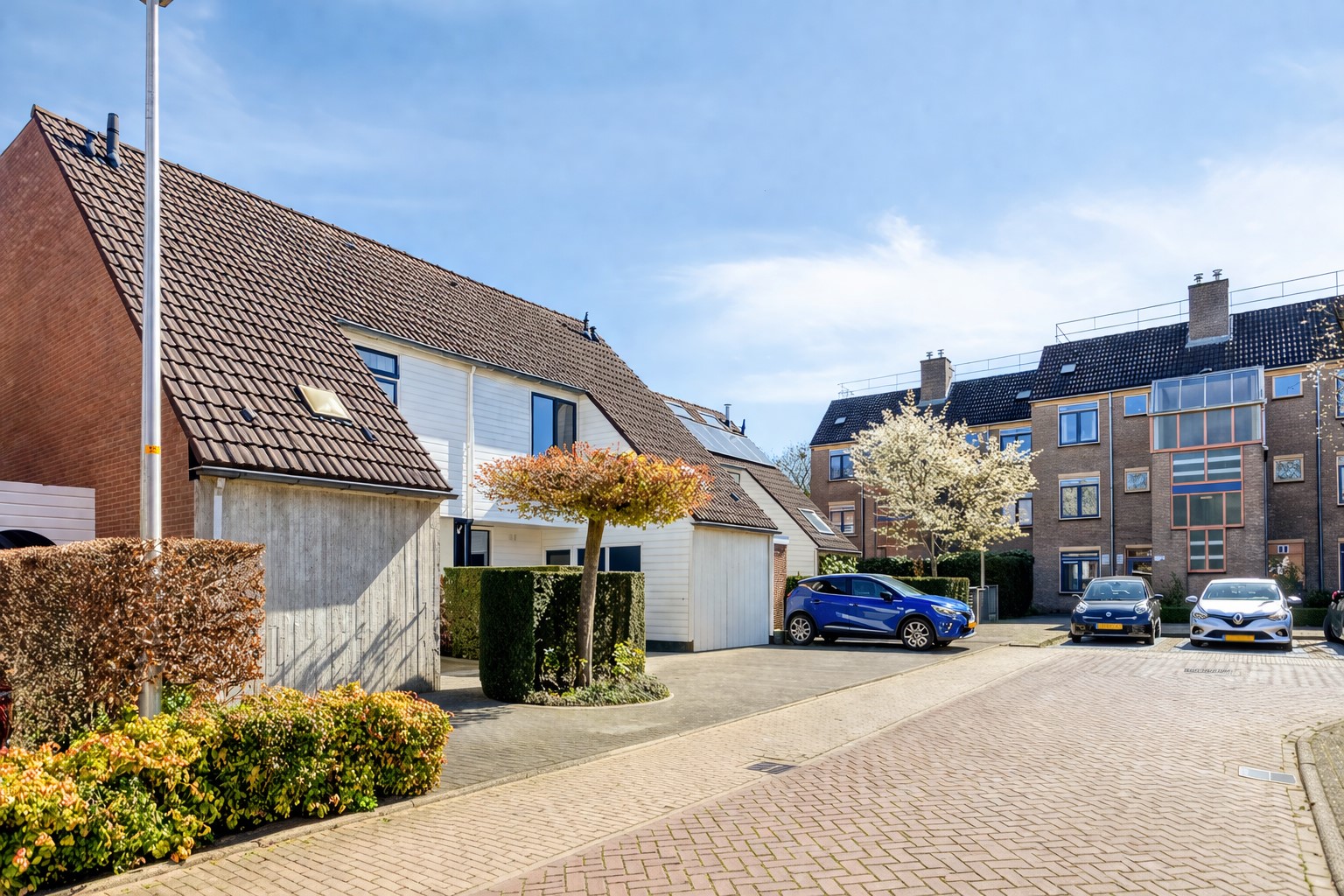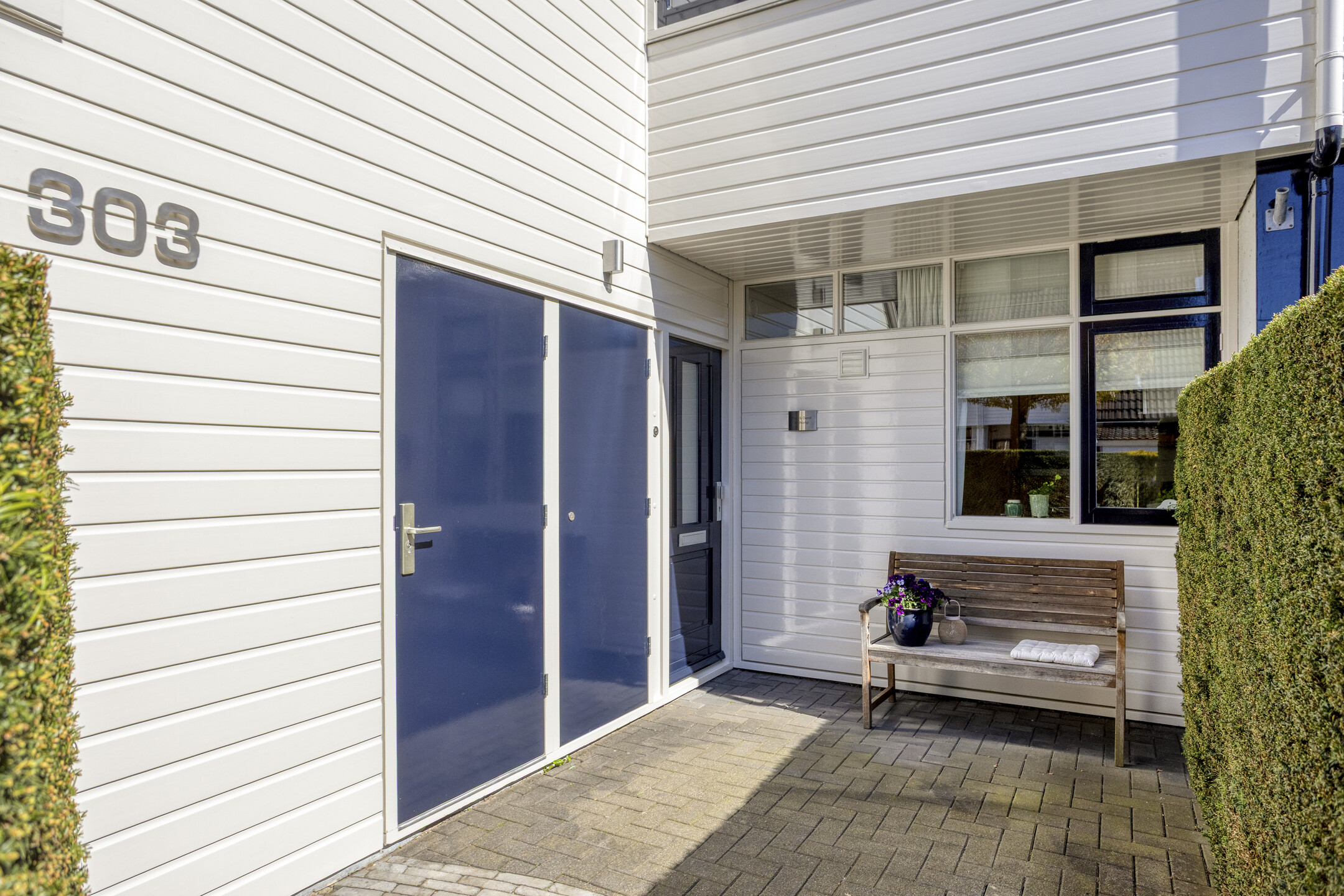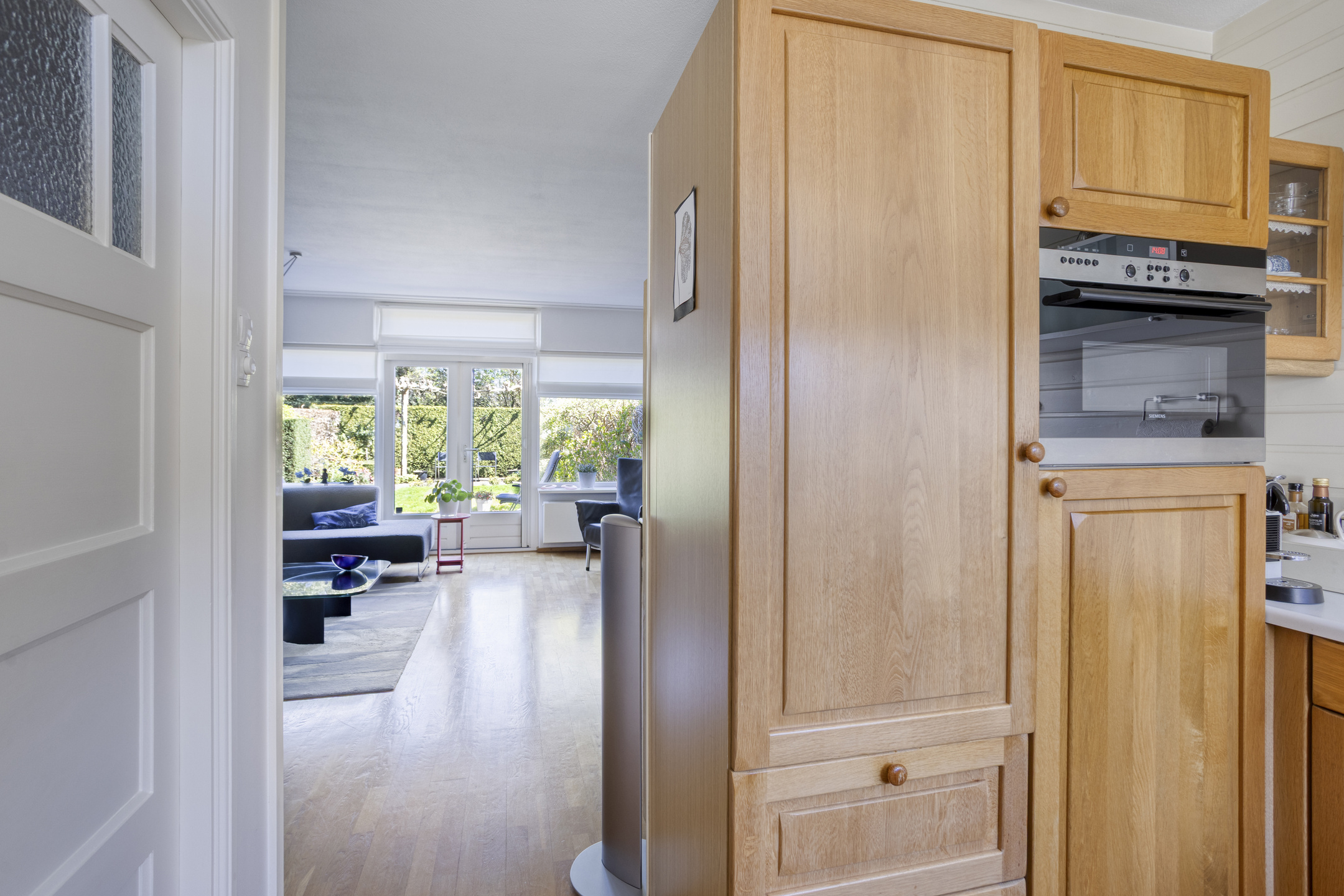 Keurig aangelegde achtertuin op het oosten met terras tegen de achtergevel voorzien van elektrisch zonnescherm, gazon, meerdere borders en een gezellig zitje onder de dakplataan. De tuin is achterom te bereiken langs de woning. Aan de voorzijde is parkeerruimte voor één personenauto op eigen terrein.