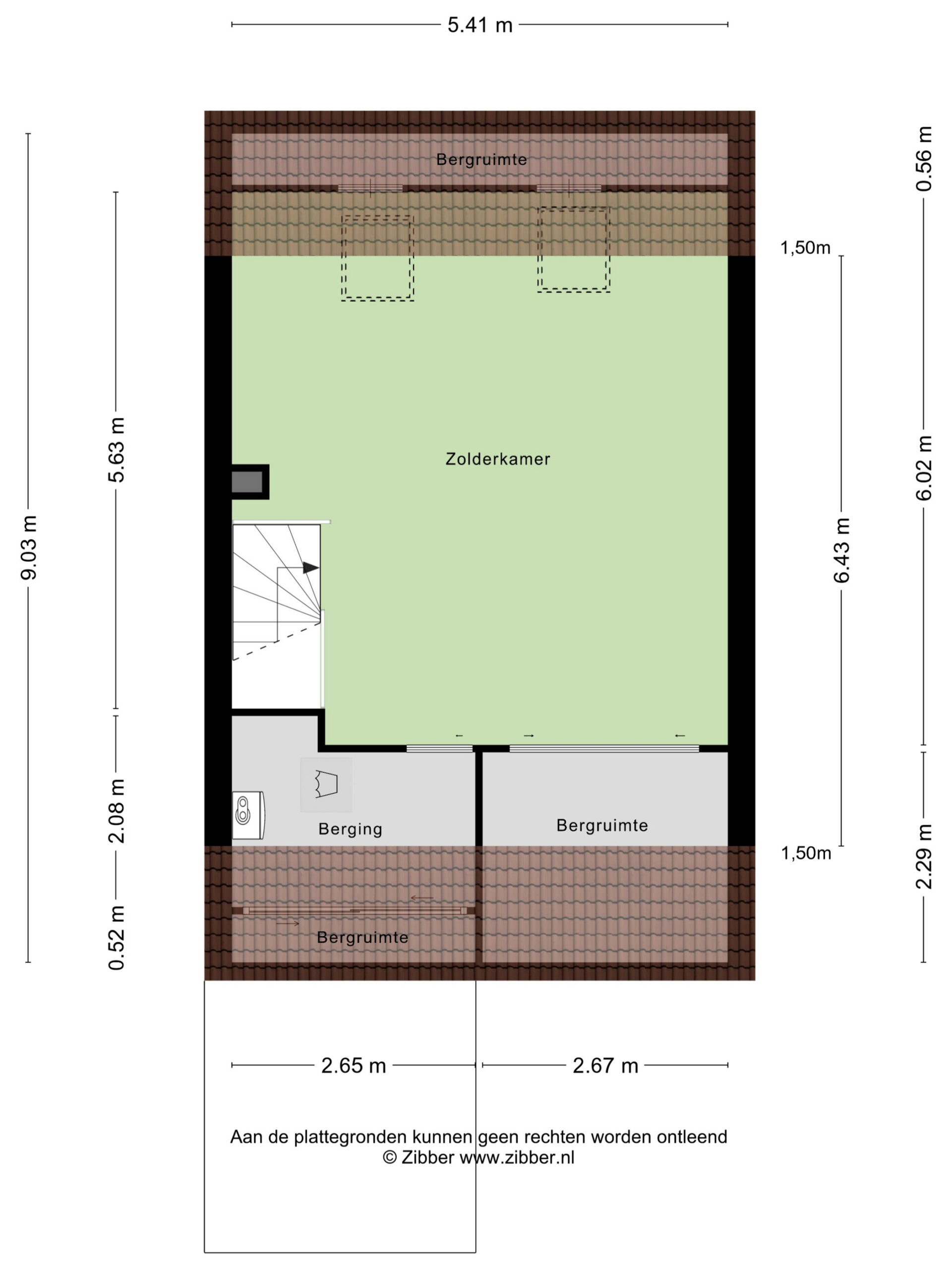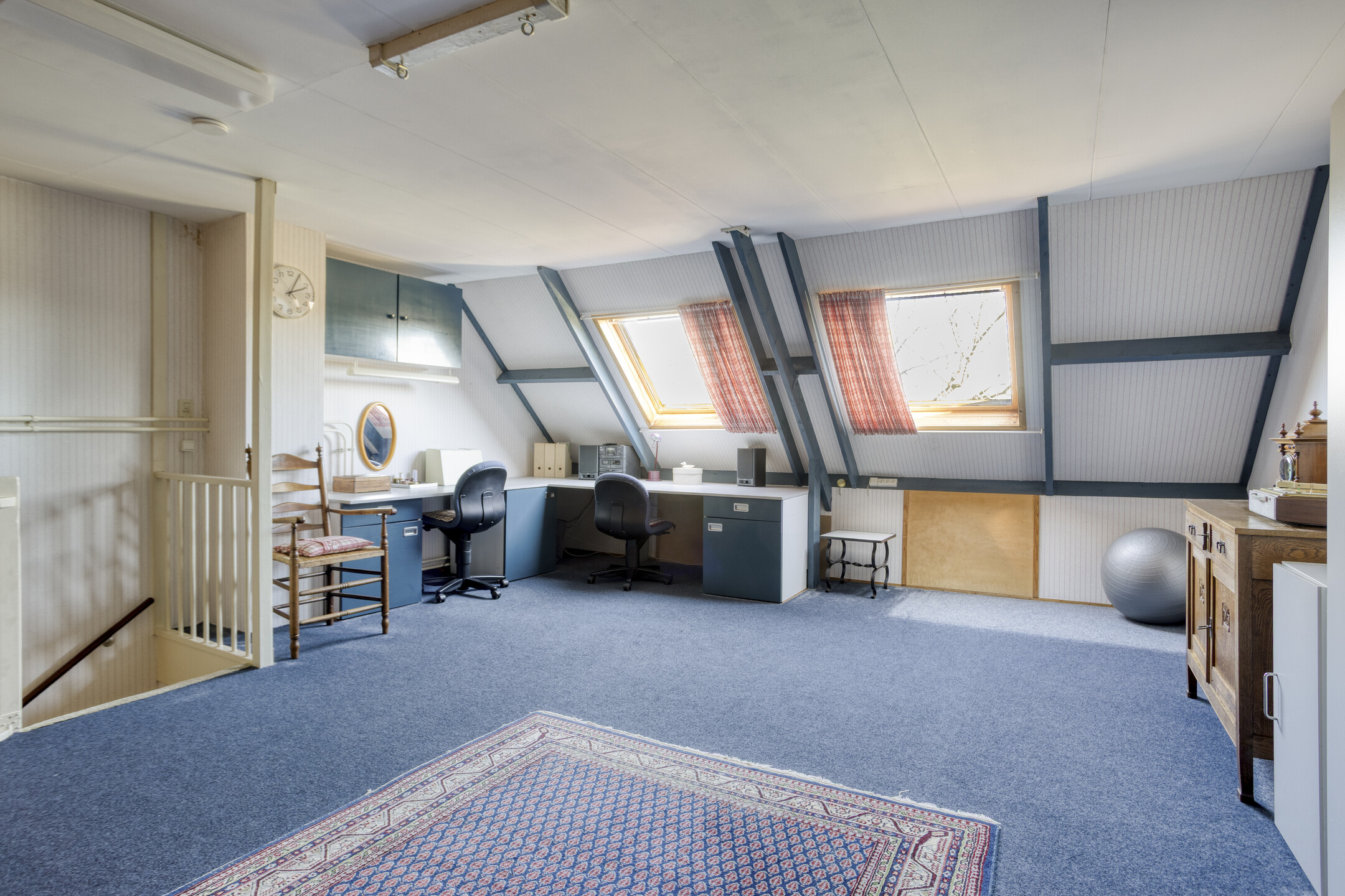 2e Verdieping: riante open zolderruimte met twee dakramen en bergruimte achter de knieschotten. Wasruimte met cv-opstelplaats.