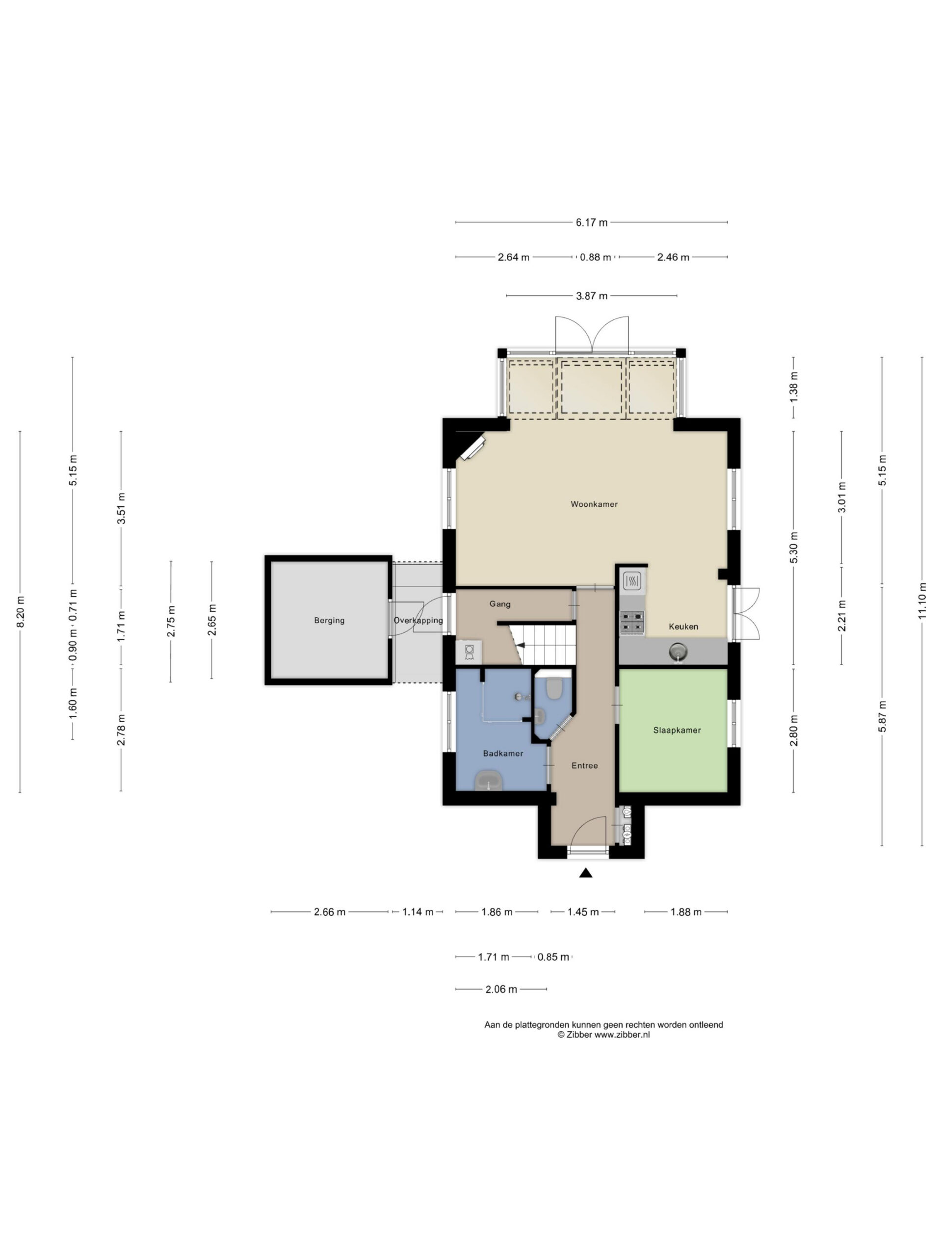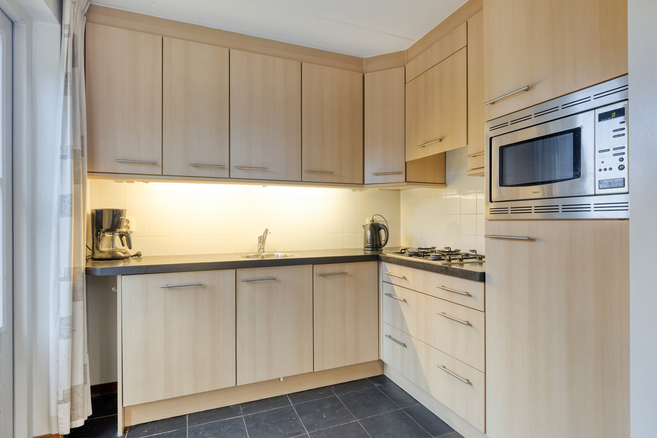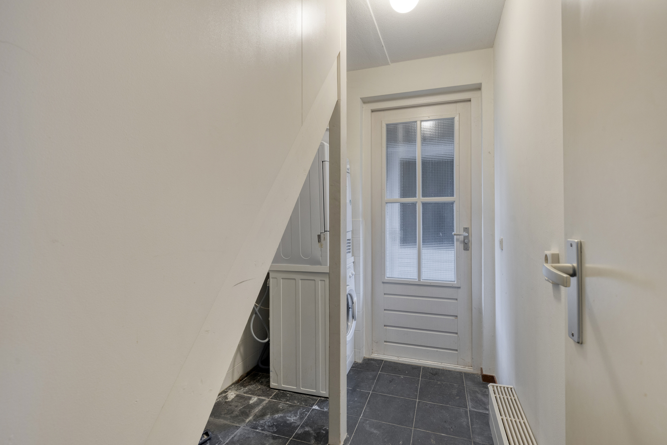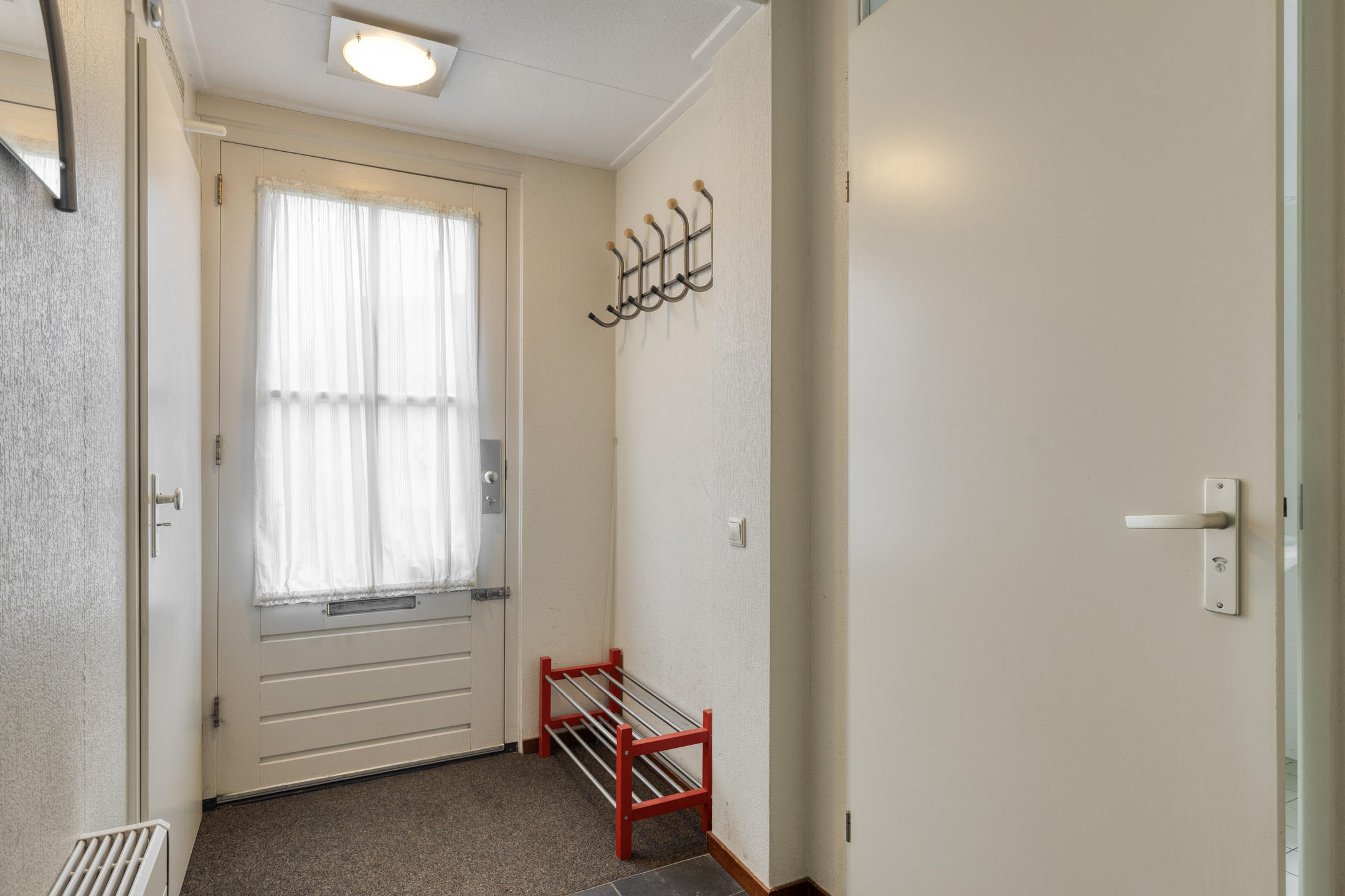 Begane grond: entree, hal met meterkast, trapopgang naar de 1e verdieping en toilet voorzien van wandcloset en fonteintje. Lichte woonkamer voorzien van leistenen vloer, met aangebouwde serre (met openslaande tuindeuren) en gashaard. Half open keuken in L-opstelling, tevens met openslaande tuindeuren, voorzien van 4-pits gaskookplaat, afzuigkap, magnetron, combi-oven, koel-vriescombinatie en vaatwasser. Slaapkamer ter grootte van circa 7 m². Badkamer met wastafel, inloopdouche en handdoekenradiator. Bijkeuken/berging met wasmachine-opstelplaats en buitendeur.