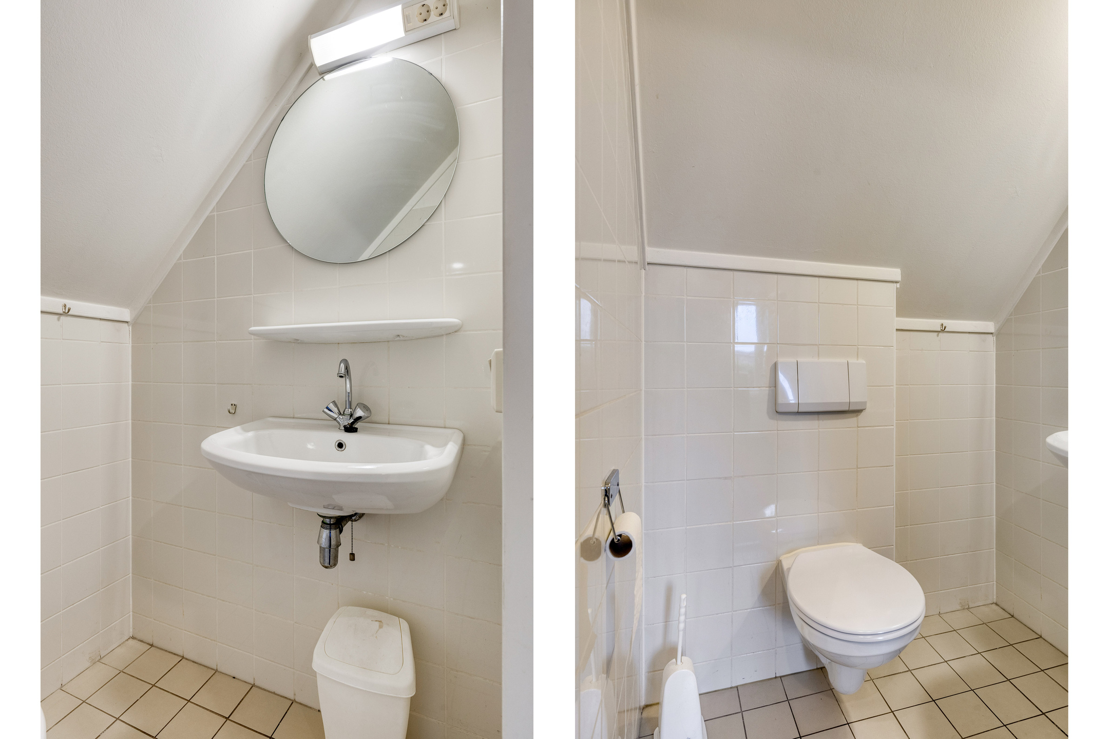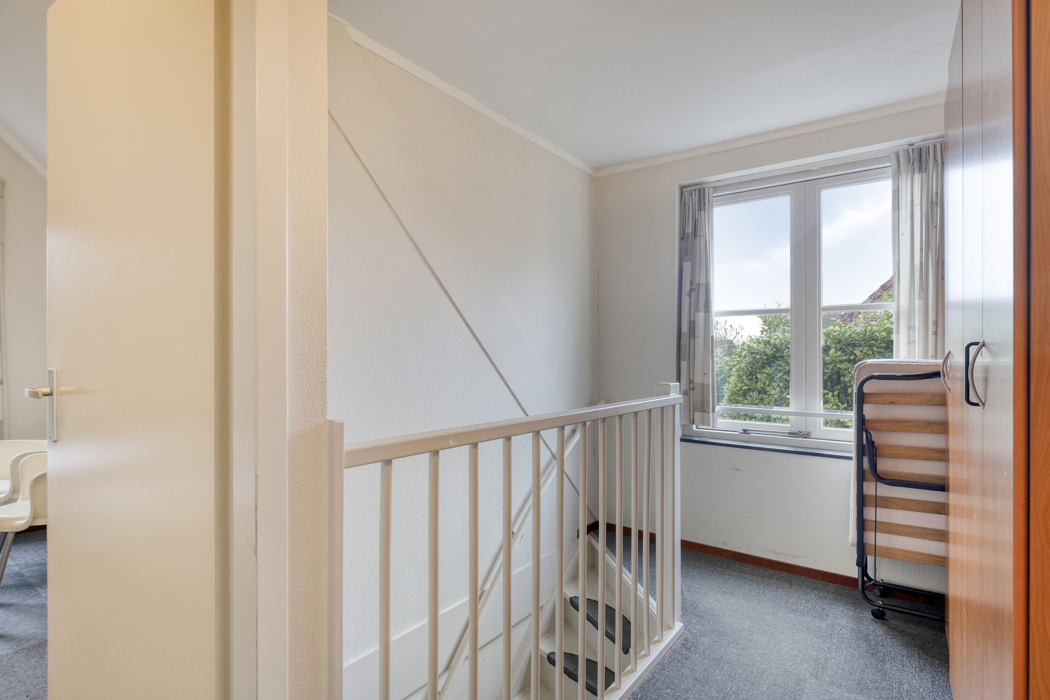 1e Verdieping: ruime overloop met toegang tot het 2e toilet voorzien van fonteintje. Twee slaapkamers ter grootte van circa 9 m² en 9,5 m², beiden voorzien van vloerbedekking. De kamer aan de voorzijde biedt tevens toegang tot het balkon en de installatieruimte met cv-opstelplaats.