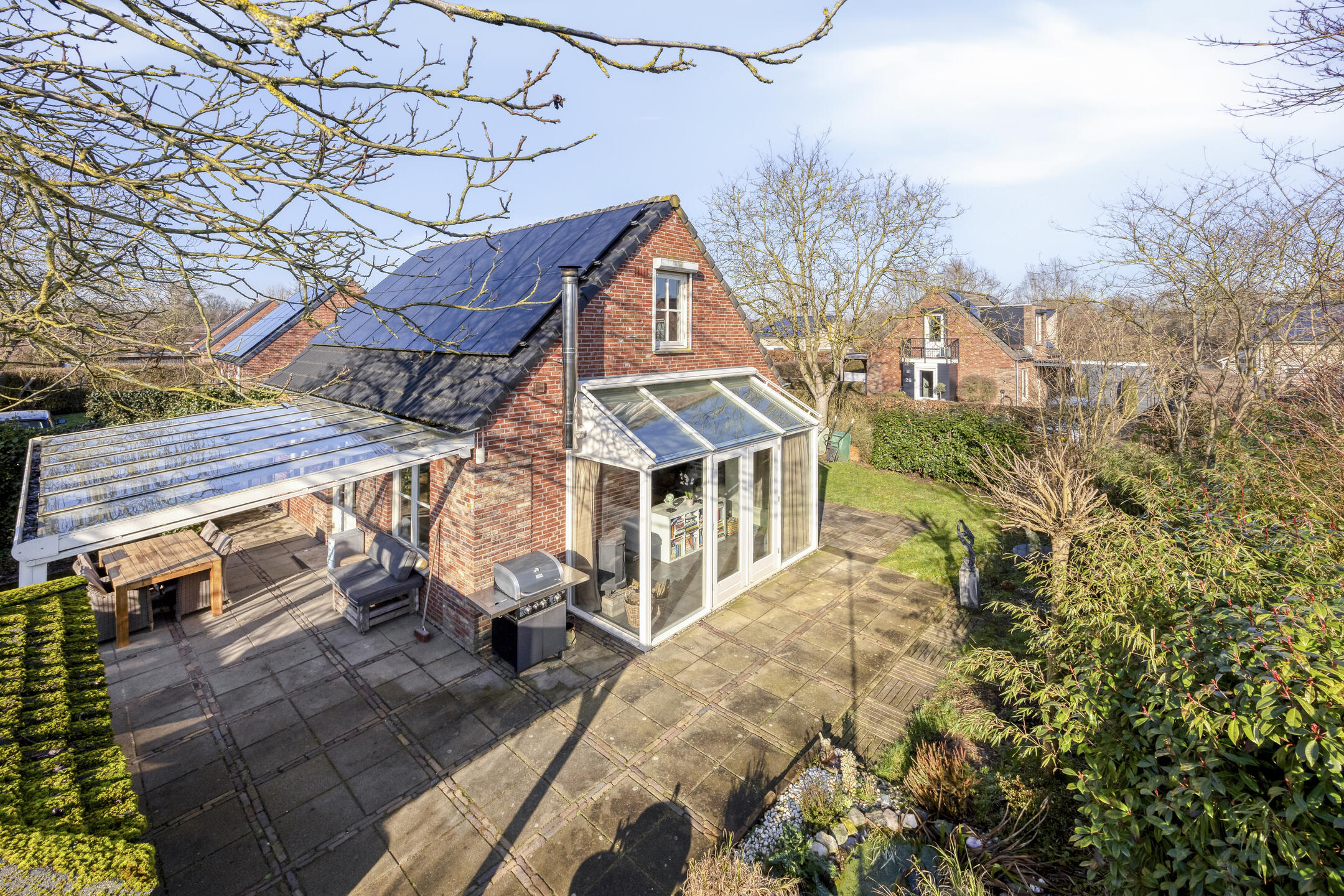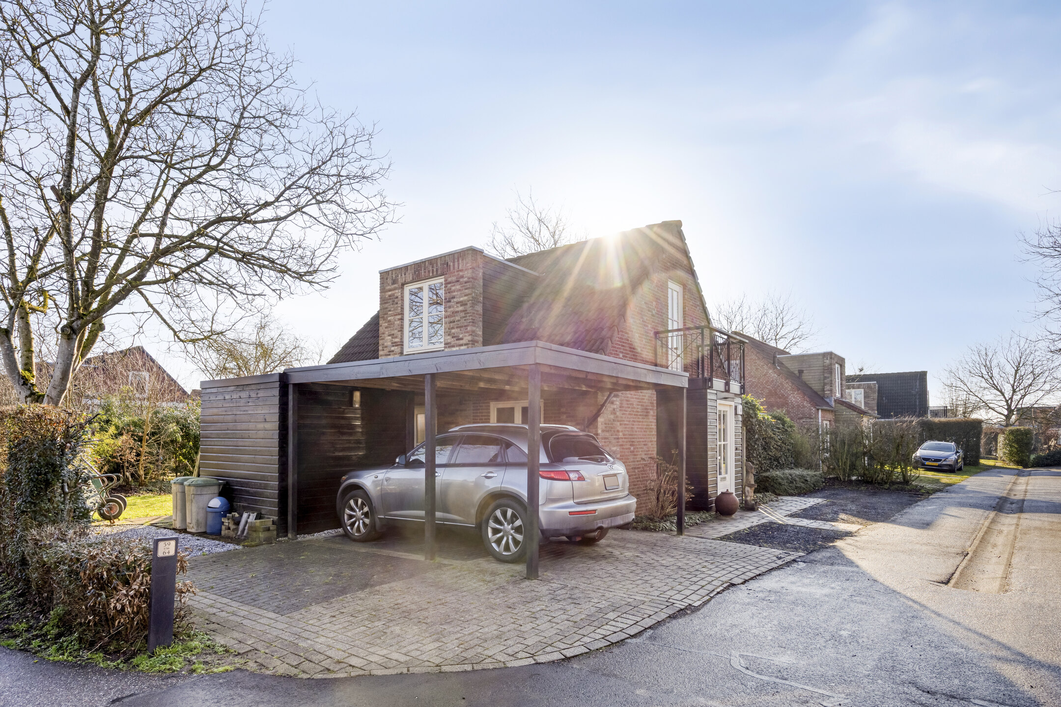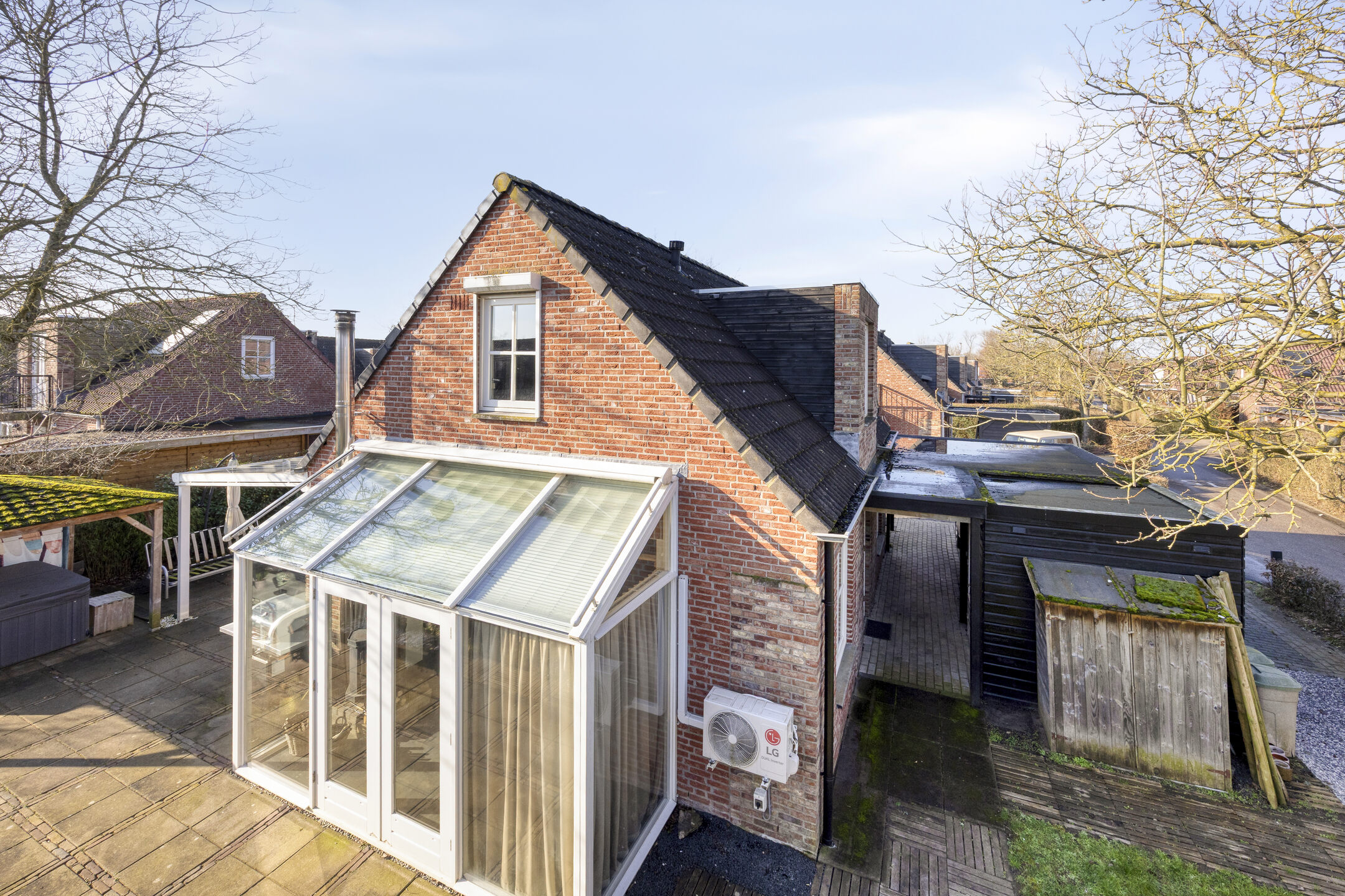 Fraai aangelegde tuin rondom met gazon, riante veranda, overkapping met jacuzzi (ter overname), zonneterras, borders en houten berging met carport. Aan de zuidoost kant van het perceel is een strook grond van ca. 75 m² in bruikleen en door verkoper aangeplant. Er is parkeerruimte voor drie personenauto’s op eigen terrein.