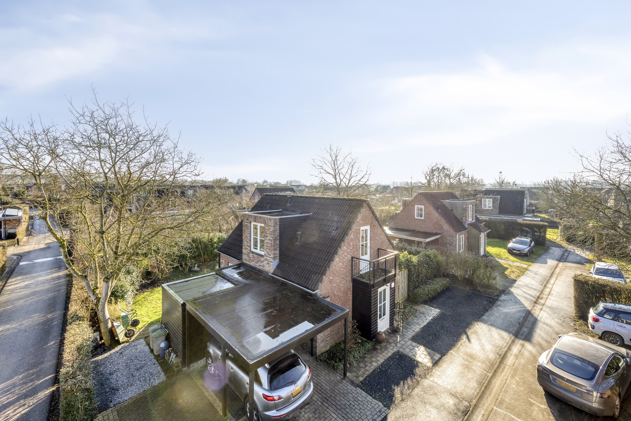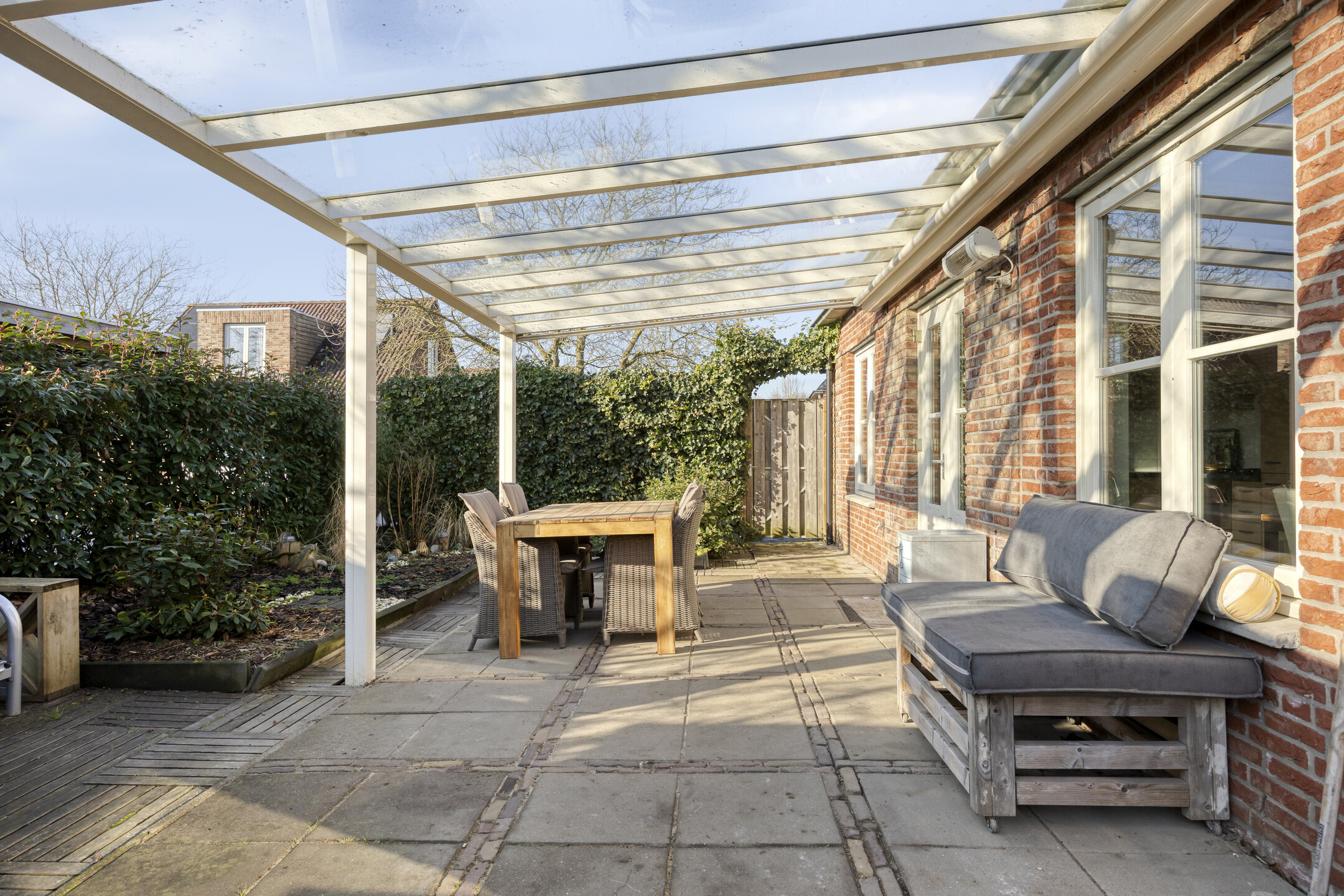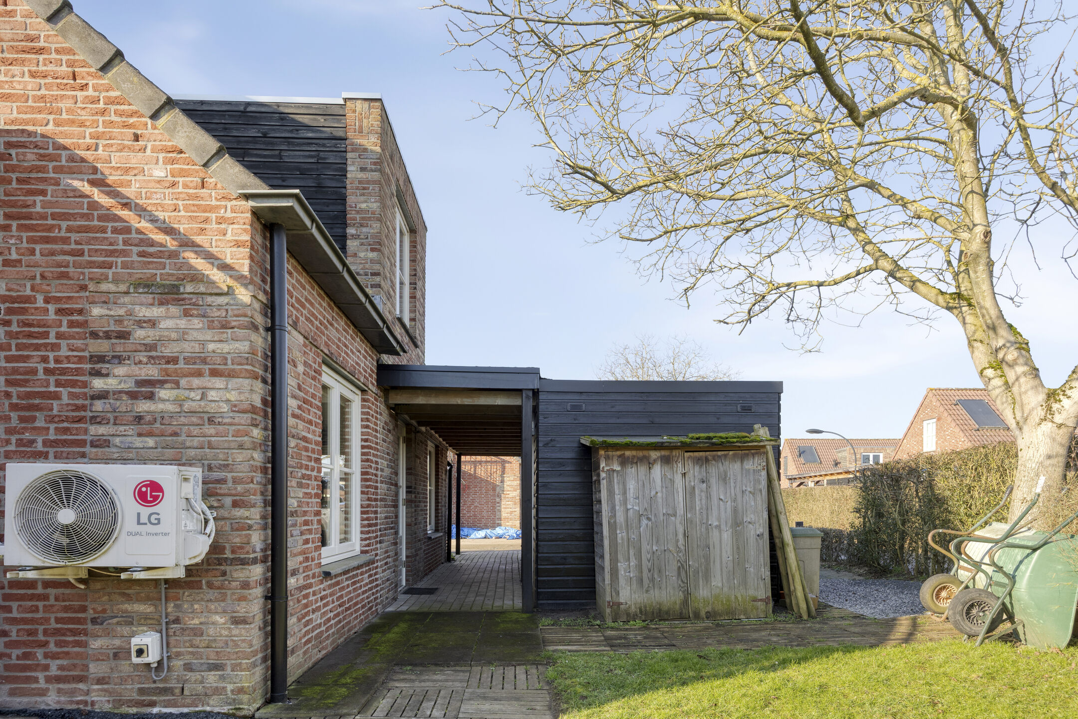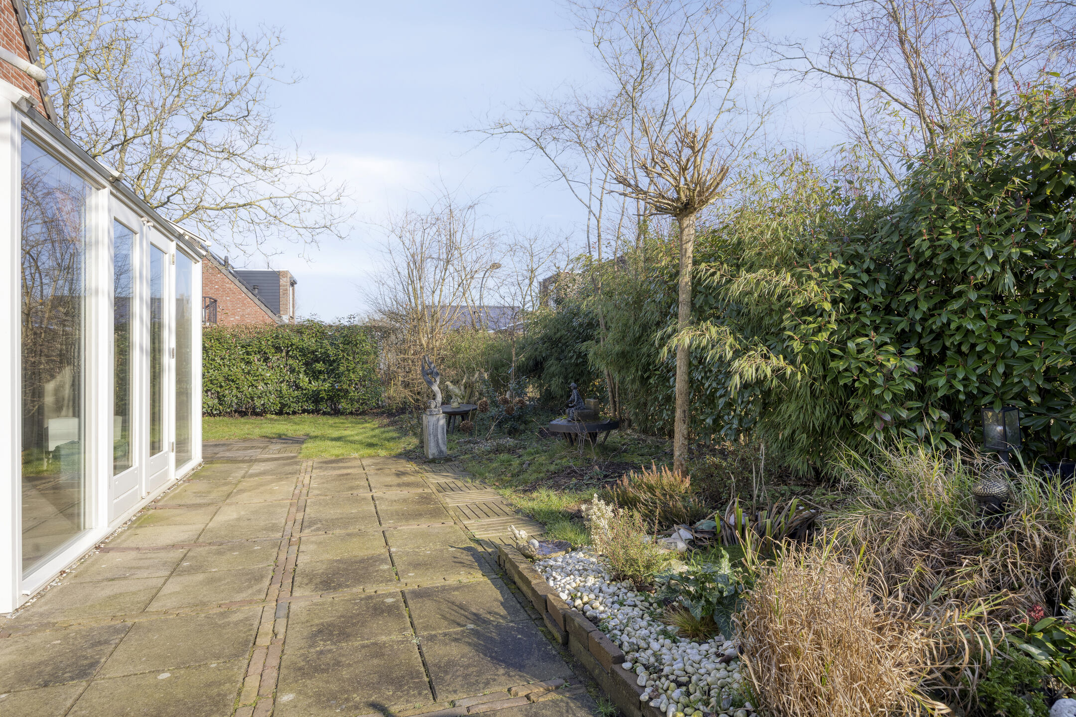 Fraai aangelegde tuin rondom met gazon, riante veranda, overkapping met jacuzzi (ter overname), zonneterras, borders en houten berging met carport. Aan de zuidoost kant van het perceel is een strook grond van ca. 75 m² in bruikleen en door verkoper aangeplant. Er is parkeerruimte voor drie personenauto’s op eigen terrein.