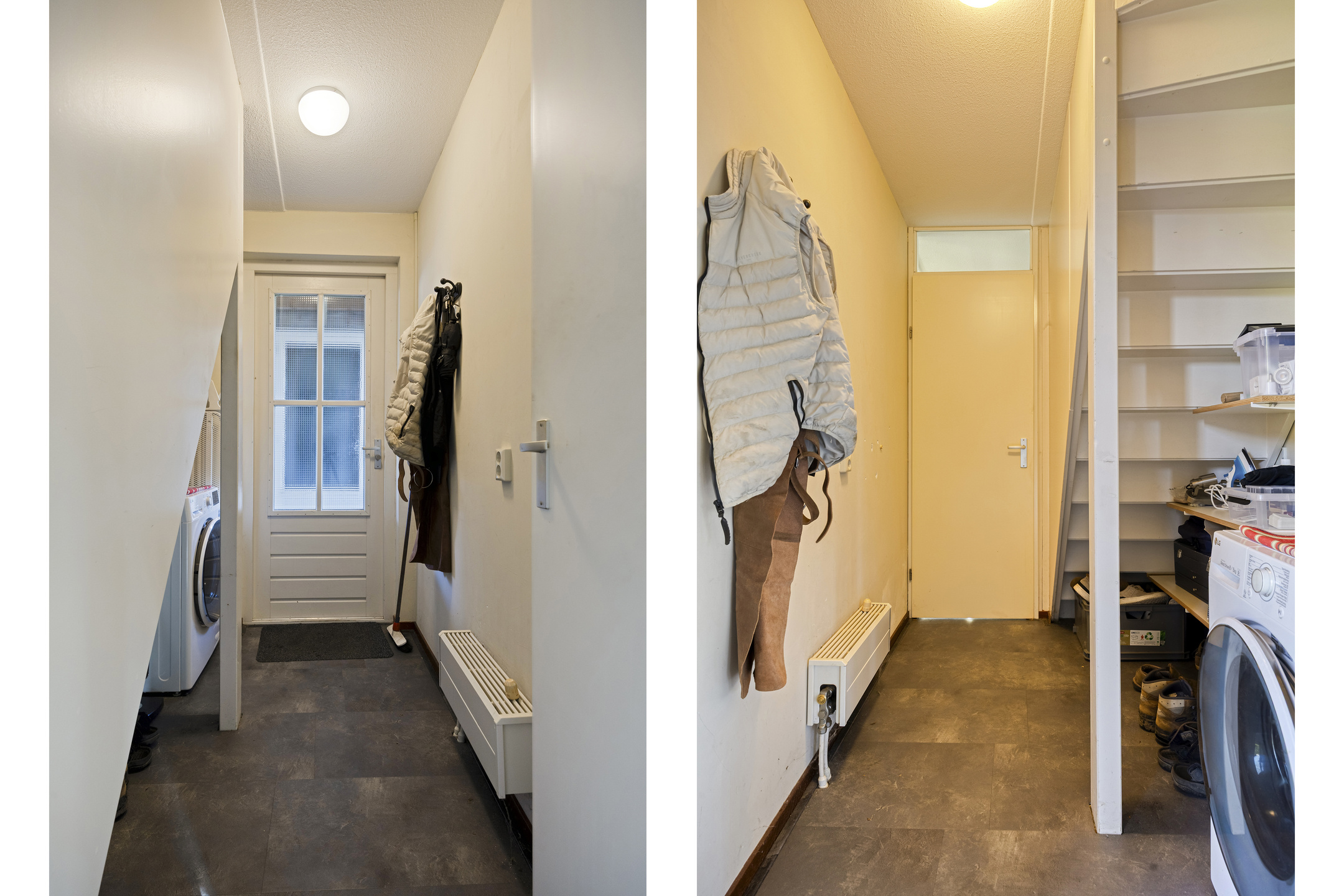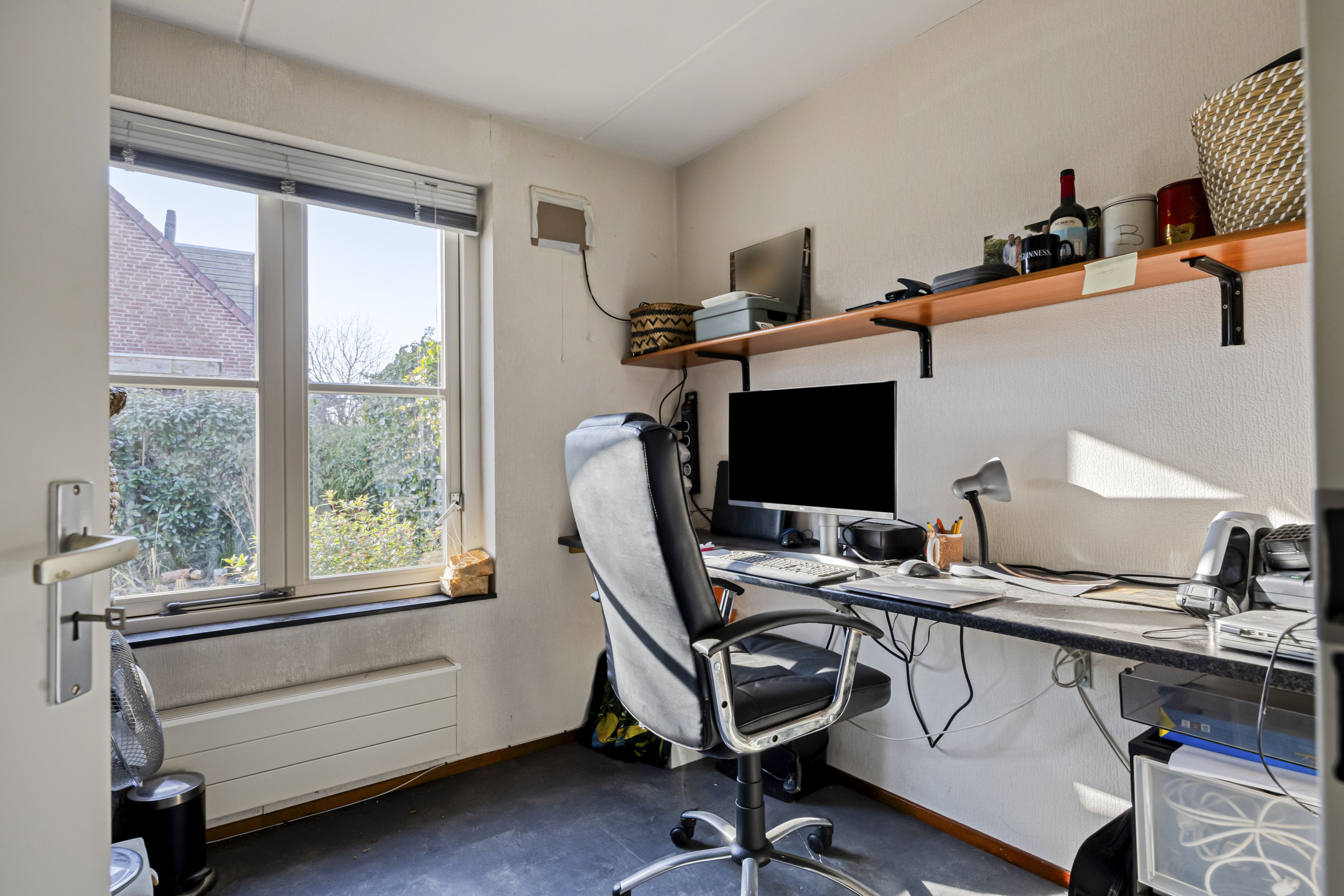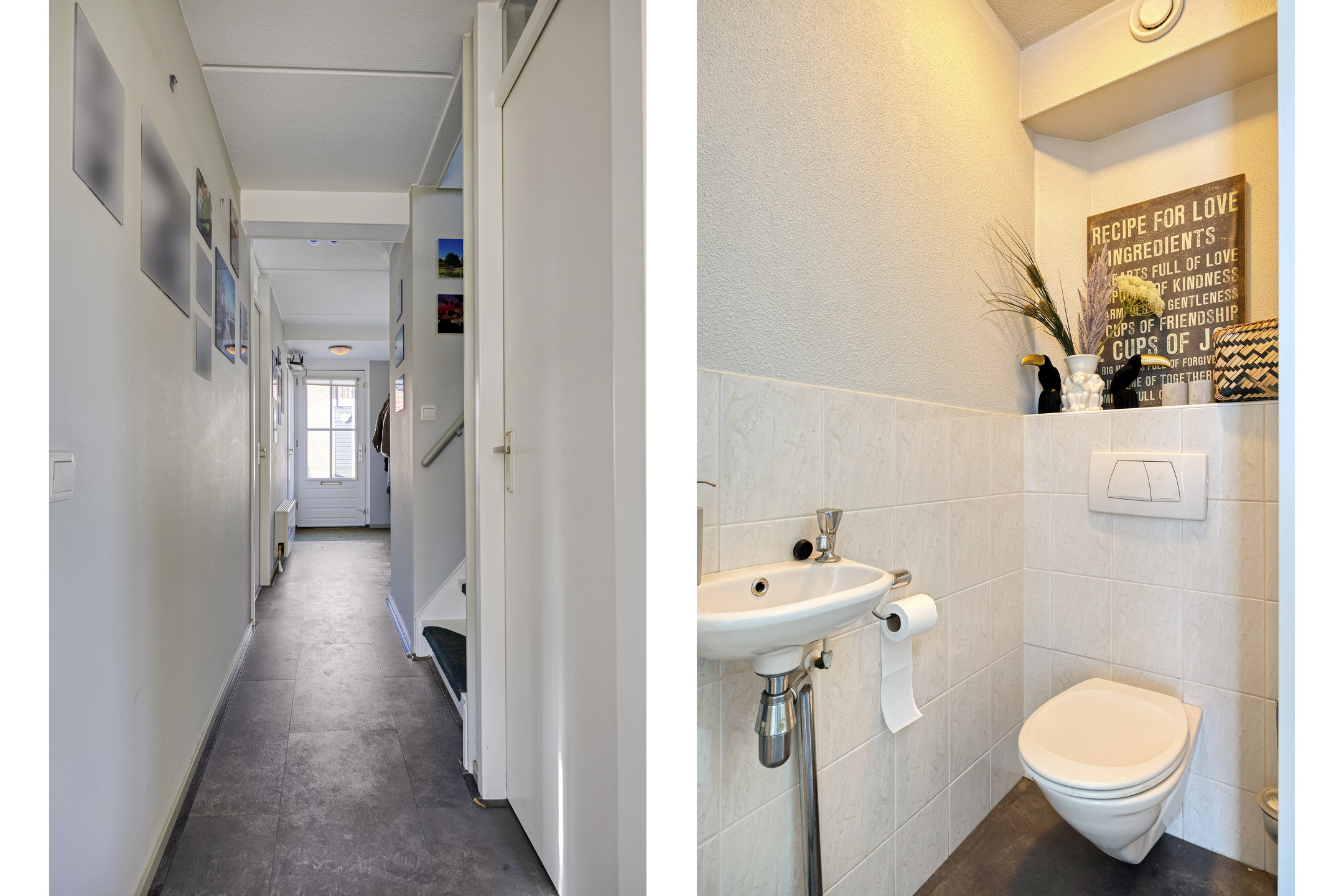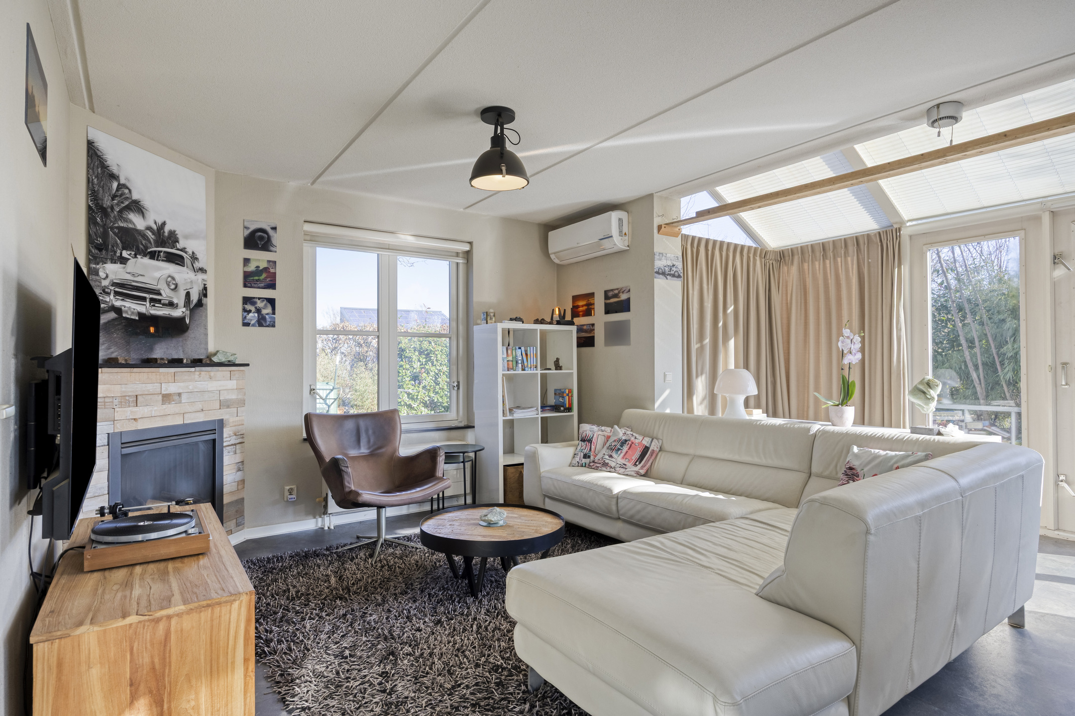 Begane grond: entree, hal met trapopgang naar de 1e verdieping, toilet voorzien van wandcloset en fonteintje en toegang tot de berging met aansluiting voor de wasapparatuur en tuindeur. Lichte woonkamer met houtkachel, gashaard, airconditioning en serre voorzien van openslaande tuindeuren en elektrische zonnewering. Open keuken in L-opstelling met openslaande deuren naar veranda, voorzien van 4-pits gaskookplaat, afzuigkap, combi-oven, koel-vriescombinatie en vaatwasser. Slaap/werkkamer ter grootte van circa 6 m². Badkamer voorzien van ligbad met douche en wastafelmeubel.