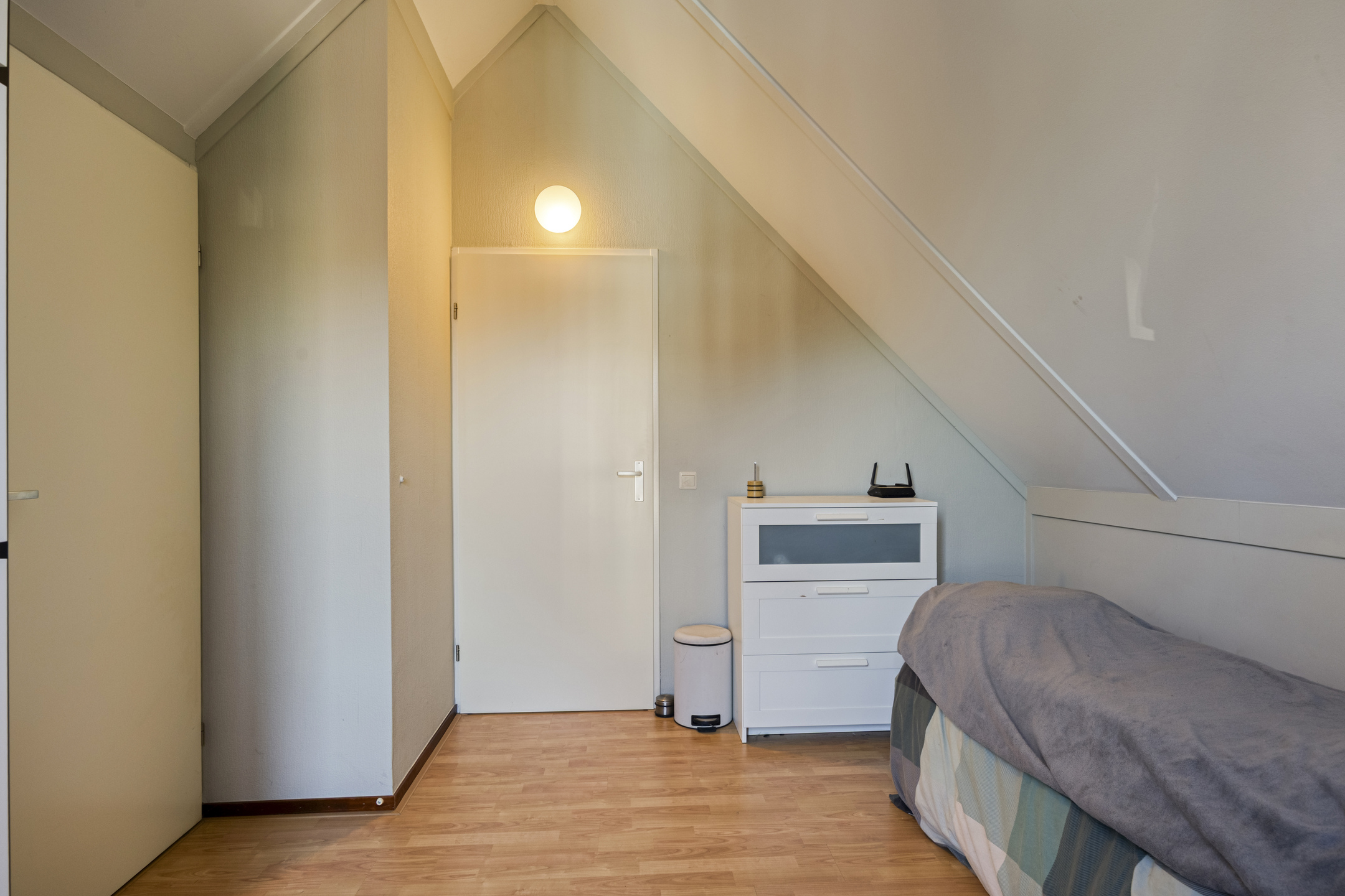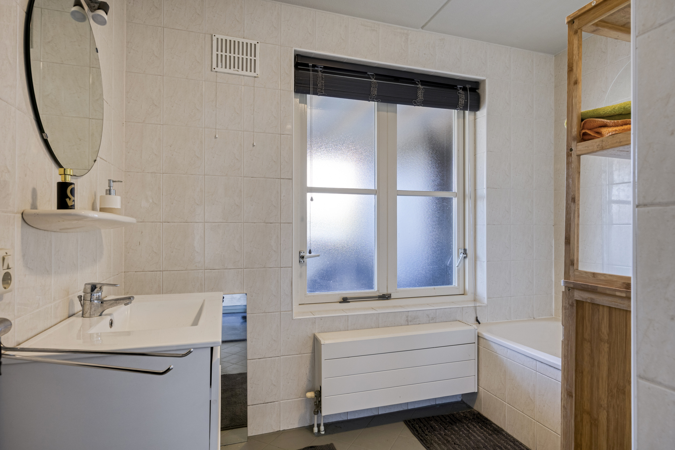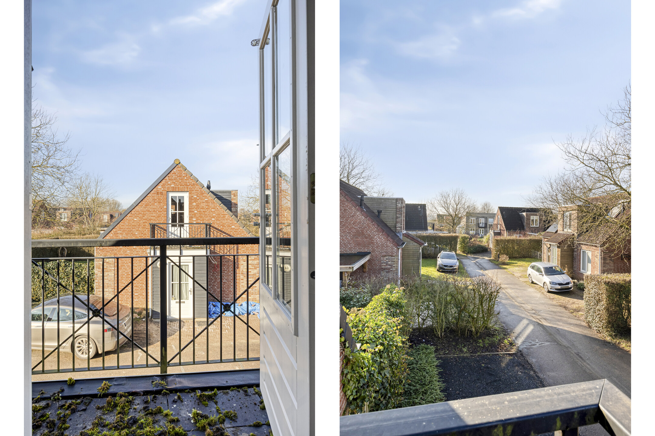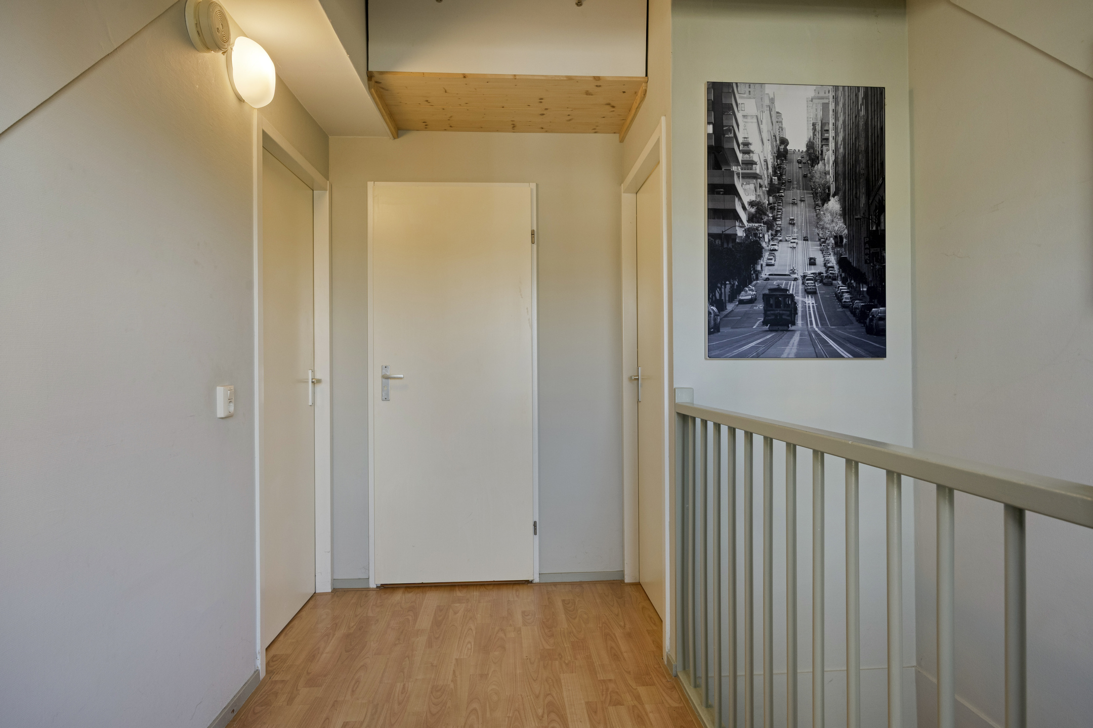 1e Verdieping: overloop met toegang tot het 2e toilet voorzien van fonteintje. Twee slaapkamers beiden ter grootte van circa 9 m², waarvan één toegang biedt tot het balkon en de berging met cv-opstelplaats.