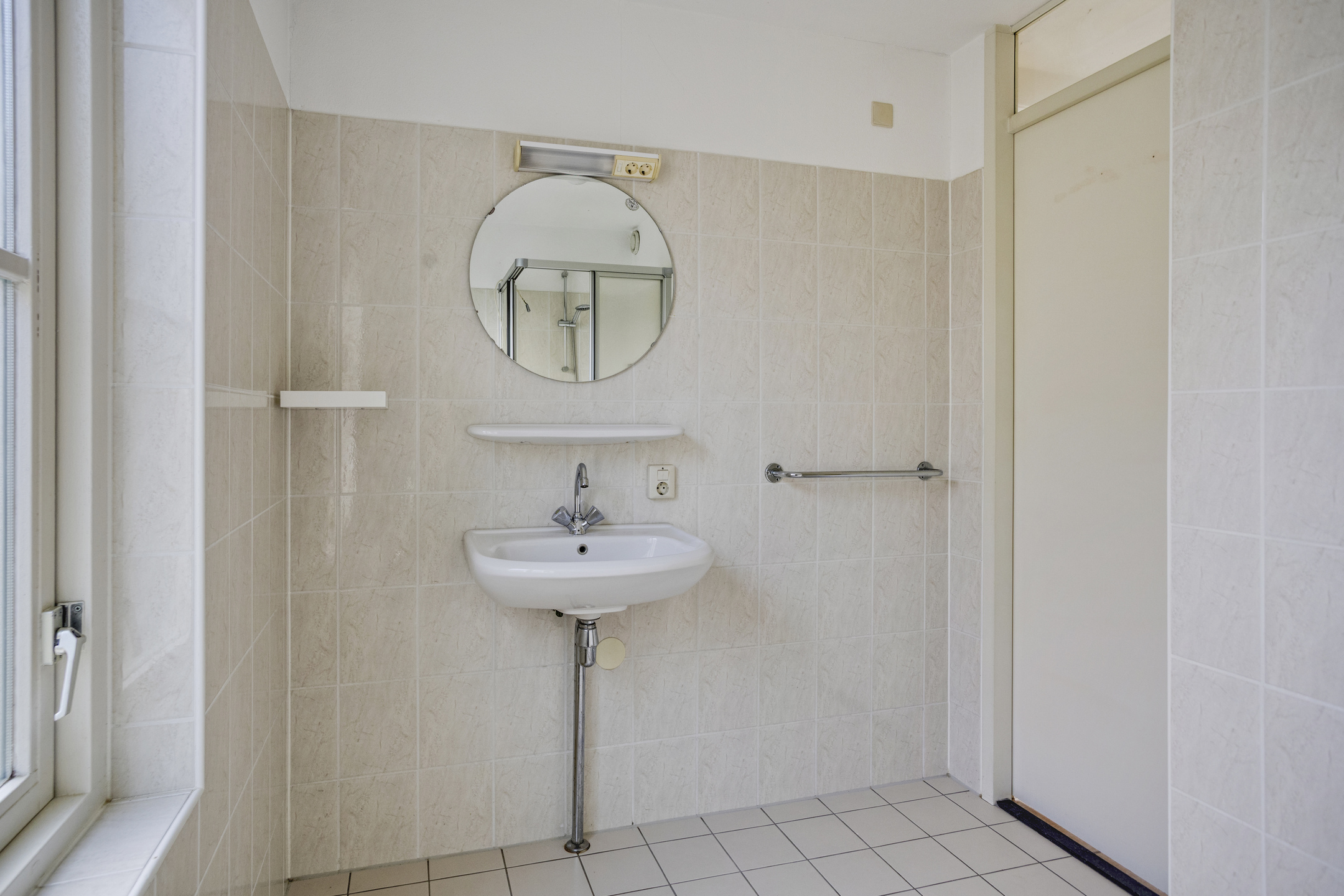 Begane grond: entree, hal met meterkast, toilet met fonteintje, trapopgang naar de 1e verdieping, toegang tot de berging (met tuindeur). Lichte woonkamer voorzien van plavuizenvloer, met gashaard en serre voorzien van openslaande tuindeuren. Open keuken tevens met openslaande tuindeuren, voorzien van koelkast, 5-pits gaskookplaat, afzuigkap en vaatwasser. Werk-/slaapkamer ter grootte van circa 7 m². Badkamer met douche, wastafel en wasmachine-aansluiting.