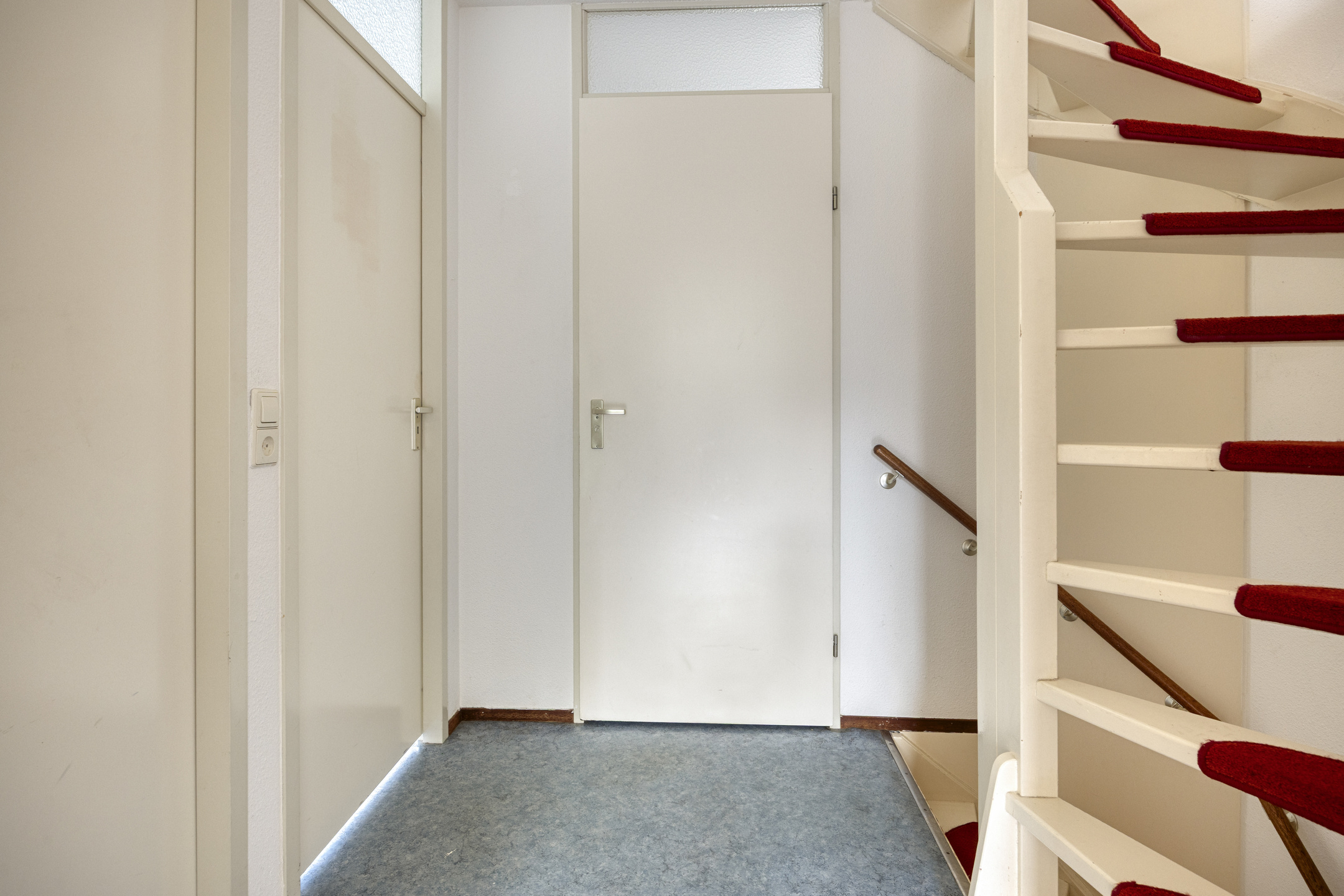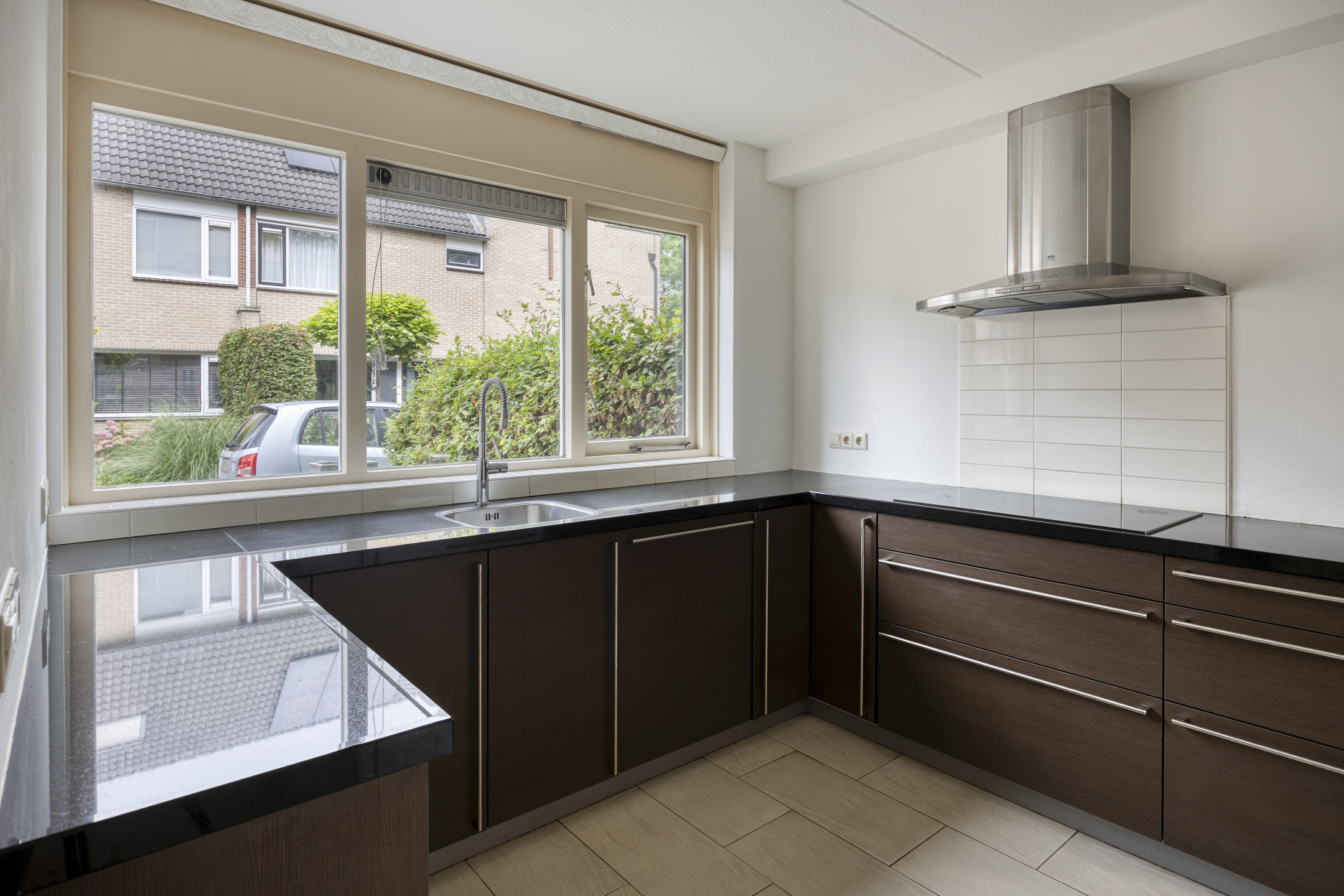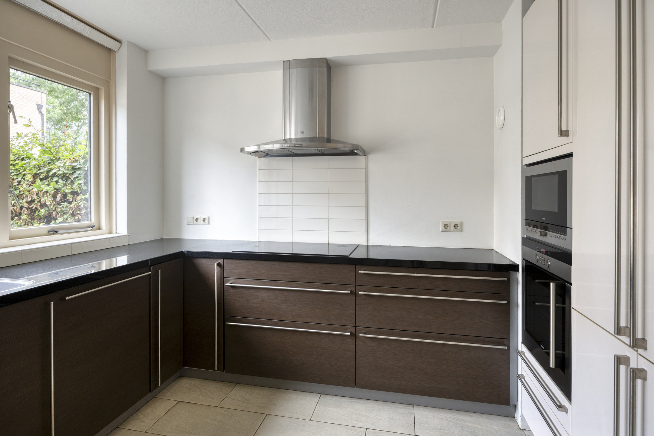 Begane grond: entree, hal met meterkast en toilet voorzien van fonteintje. Riante tuingerichte woonkamer, voorzien van laminaatvloer en schuifpui naar de achtertuin. Half open keuken aan de voorzijde met plavuizen vloer, voorzien van 5-pits inductieplaat, afzuigkap, magnetron, oven, koel-vriescombinatie en vaatwasser.