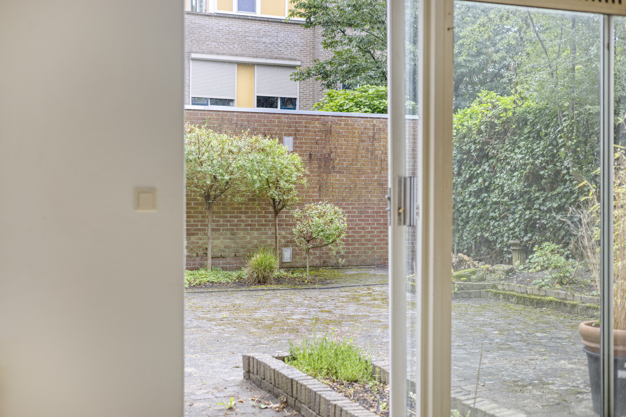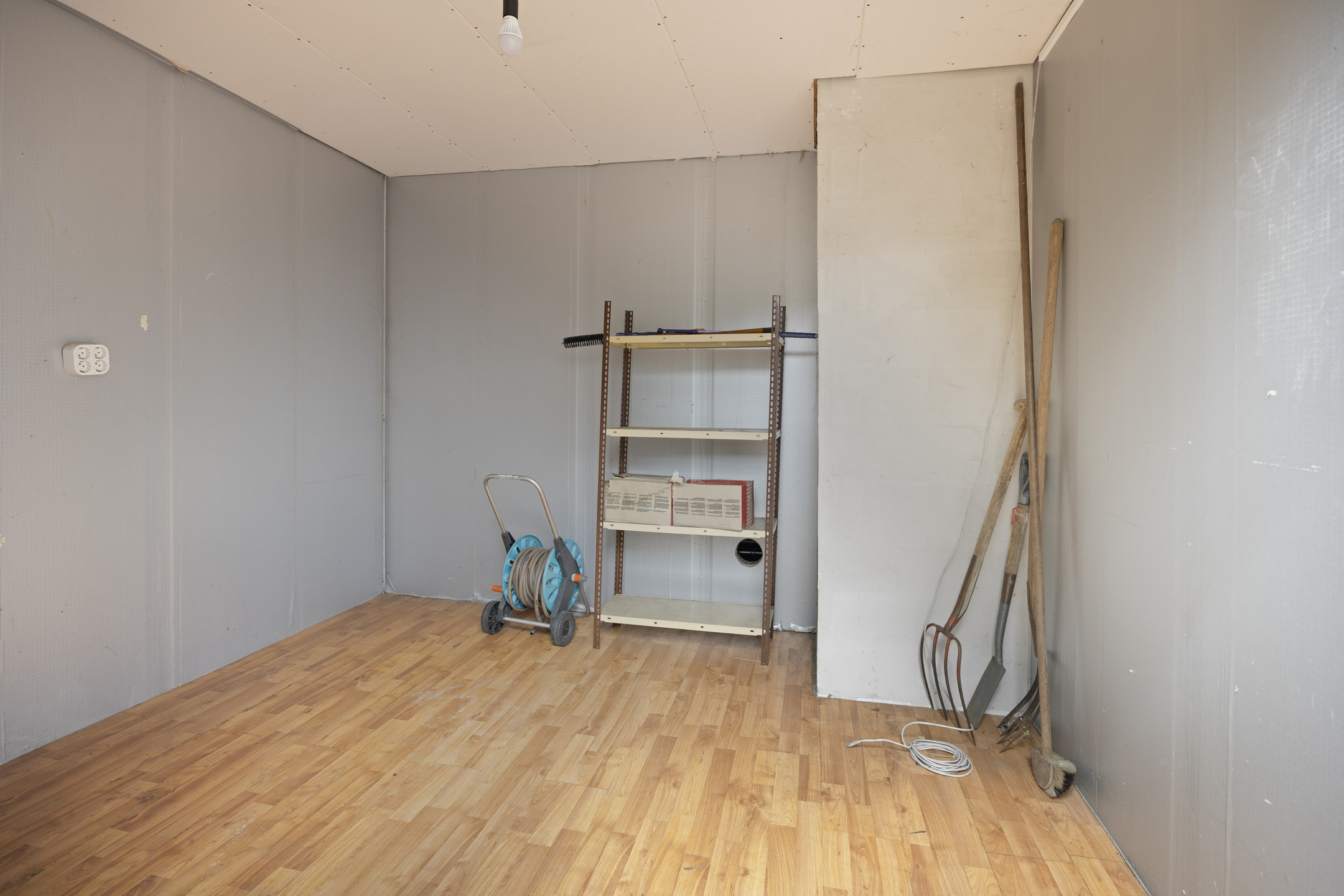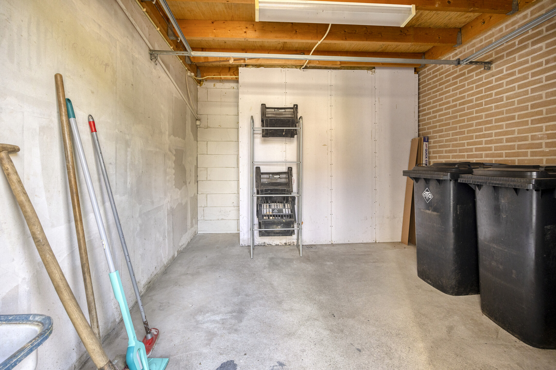 De woning beschikt over een ruime tuin op het oosten met meerdere borders, sierbestrating en toegang tot de aangebouwde berging aan de achterzijde. Aan de voorzijde is de garage te bereiken en is een oprit aanwezig met parkeerruimte op eigen terrein.
