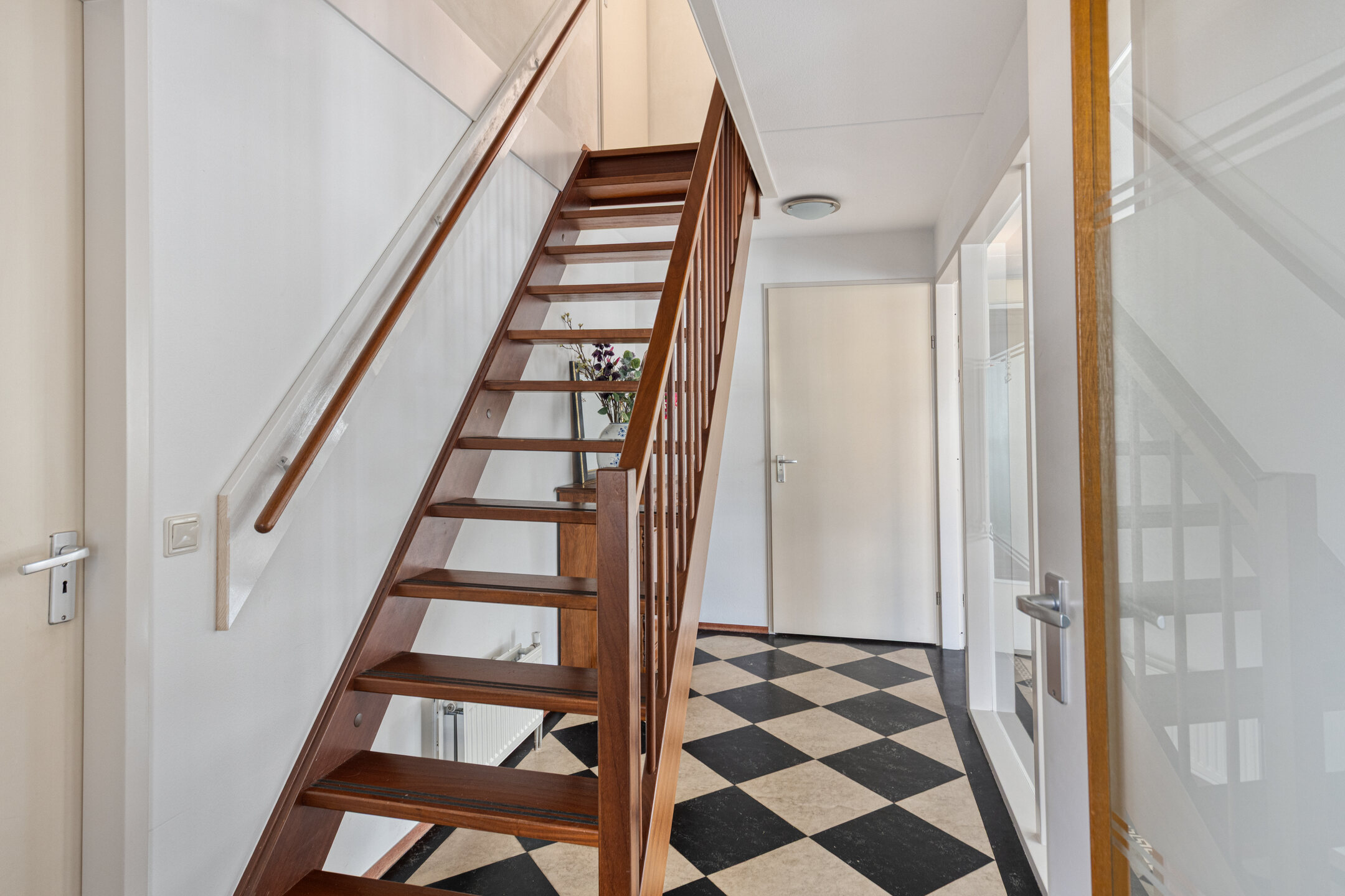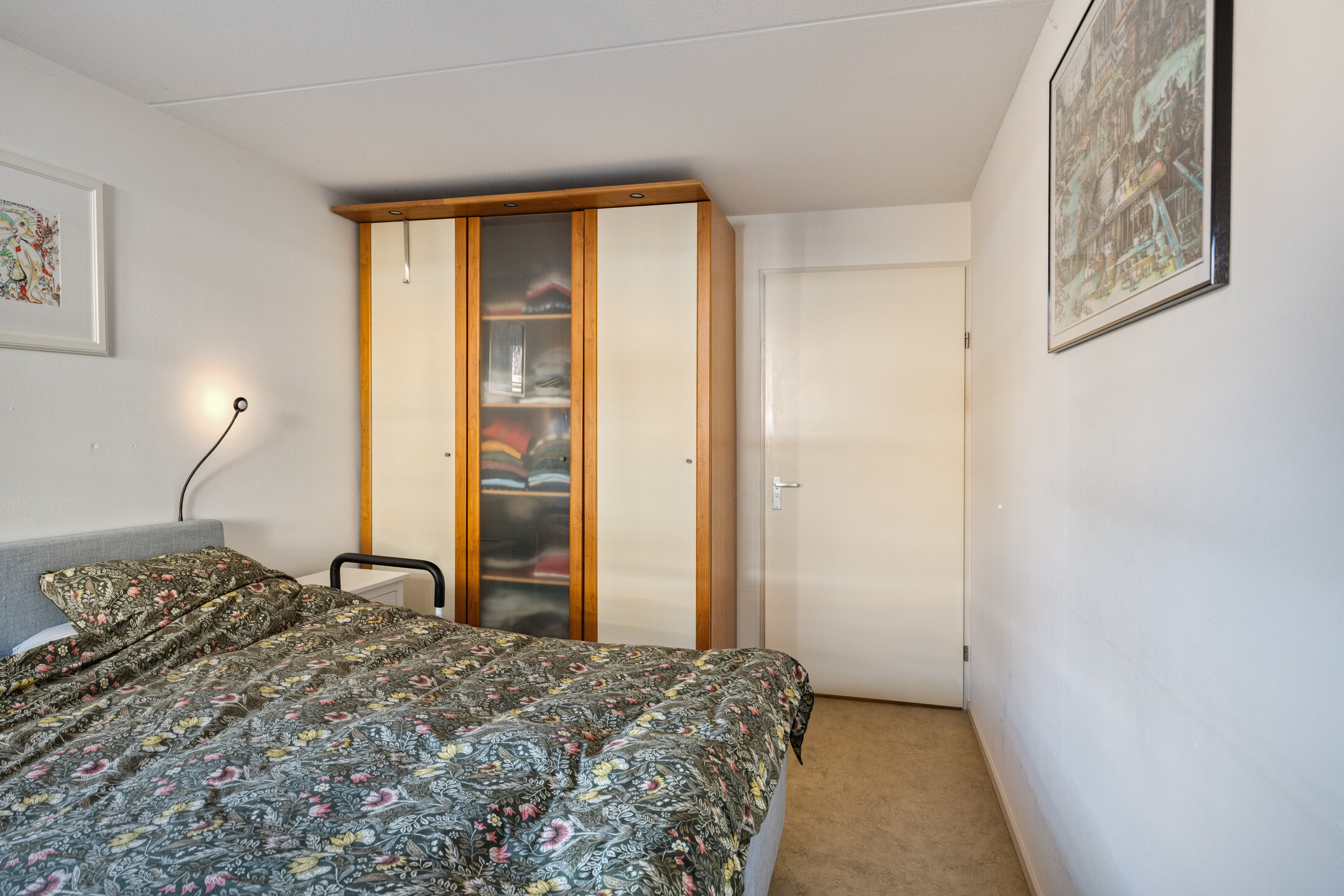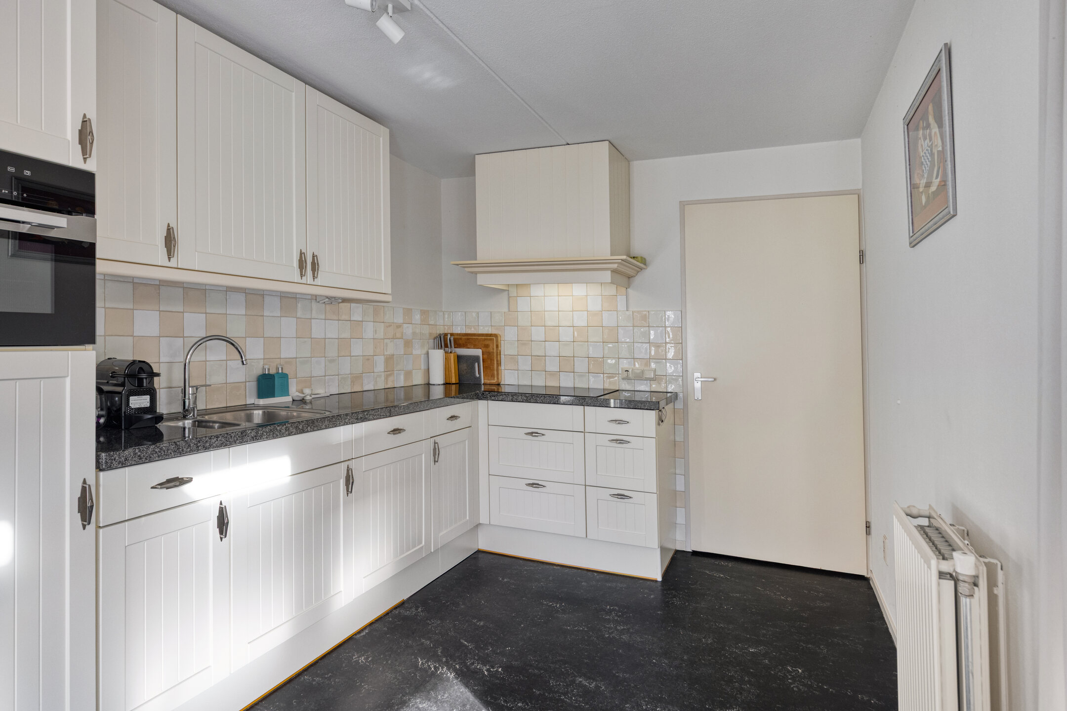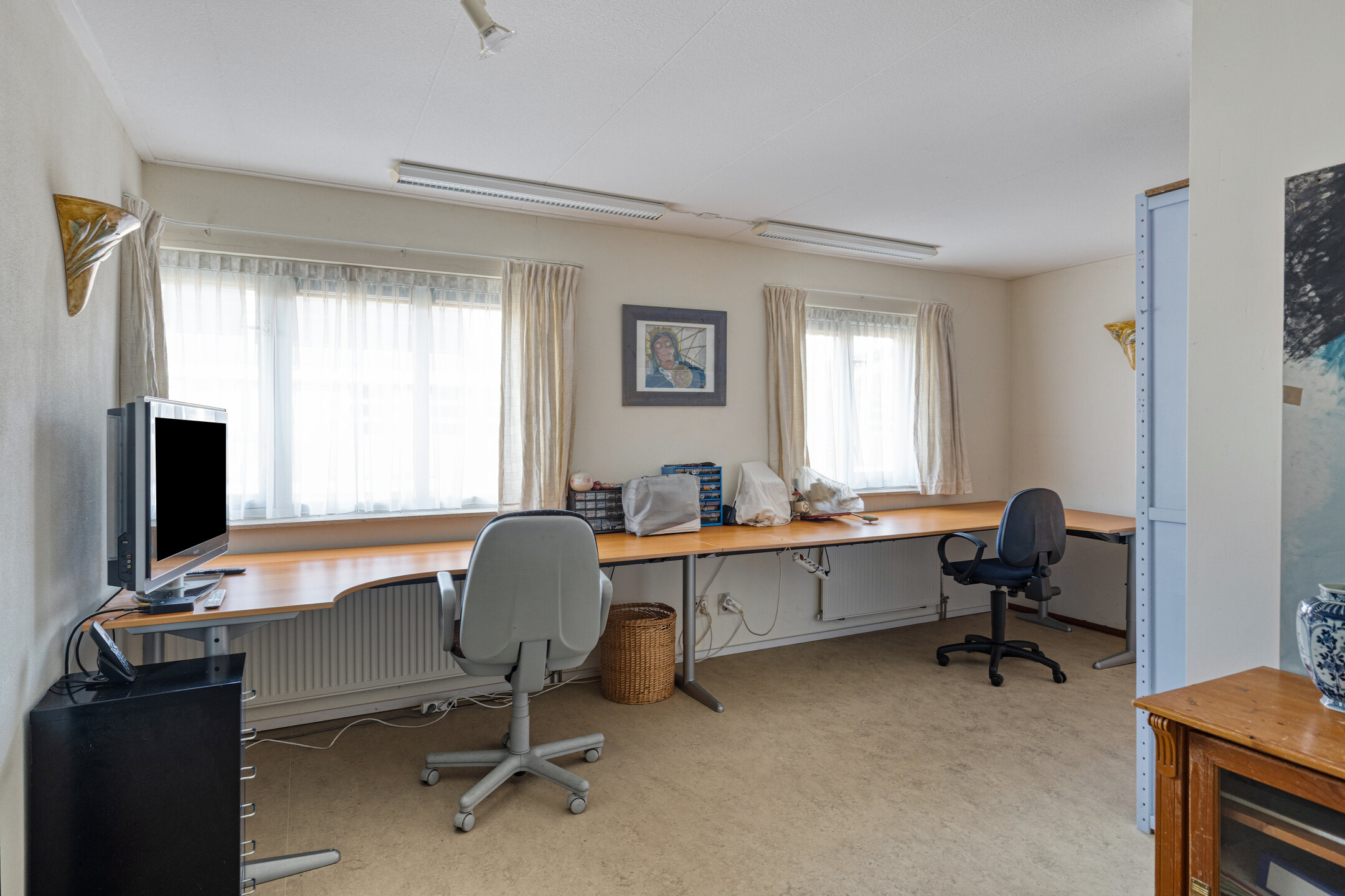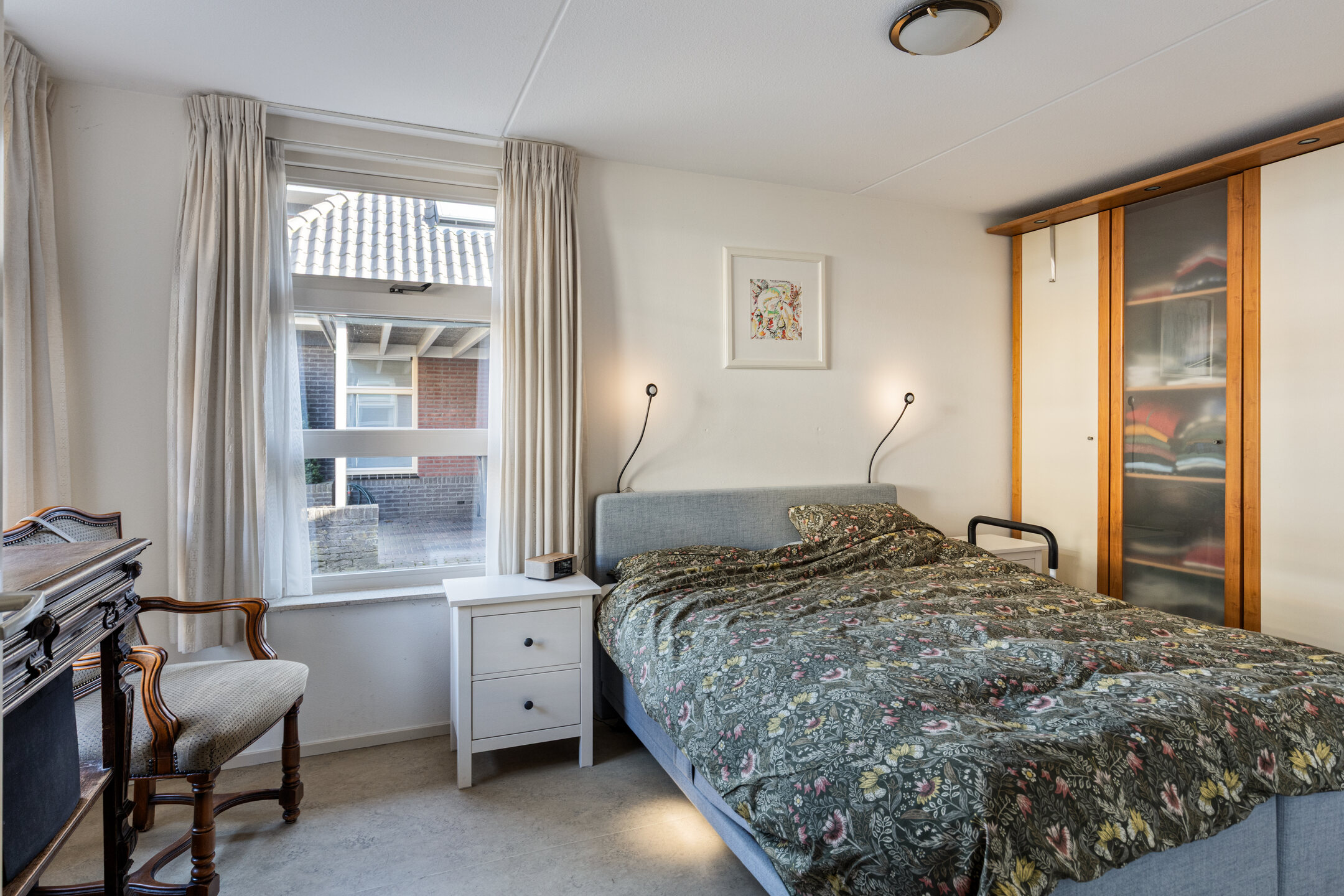 Begane grond: entree met meterkast. Ruime hal met trapopgang naar de 1e verdieping en (gasten-)toilet voorzien van wandcloset en fonteintje. Riante woonkamer met veel ramen, voorzien van elektrische screens en en-suite deuren naar de woonkeuken. Woonkeuken met eethoek met openslaande deuren naar de veranda in de achtertuin en keuken in L-opstelling, voorzien van inductiekookplaat, afzuigkap, combi-oven, koelkast en vaatwasser. Bijkeuken met cv-opstelplaats, gootsteen, aansluiting voor de wasapparatuur en deur naar de aangebouwde garage ter grootte van circa 26,5 m², welke beschikt over een deur naar de achtertuin. Slaapkamer ter grootte van circa 15 m², met ruime badkamer-en-suite voorzien van ligbad, wastafel, inloopdouche en wandcloset.