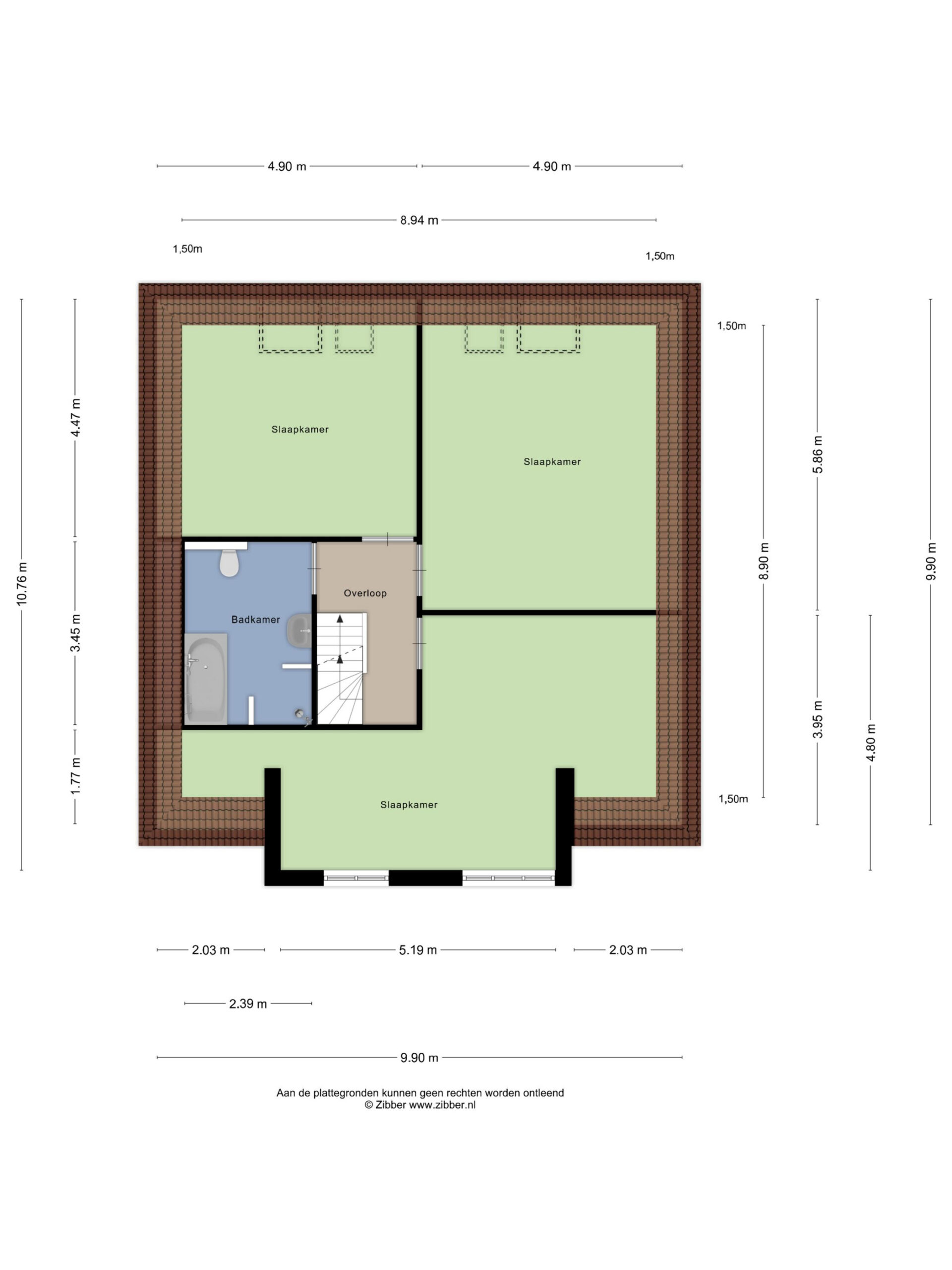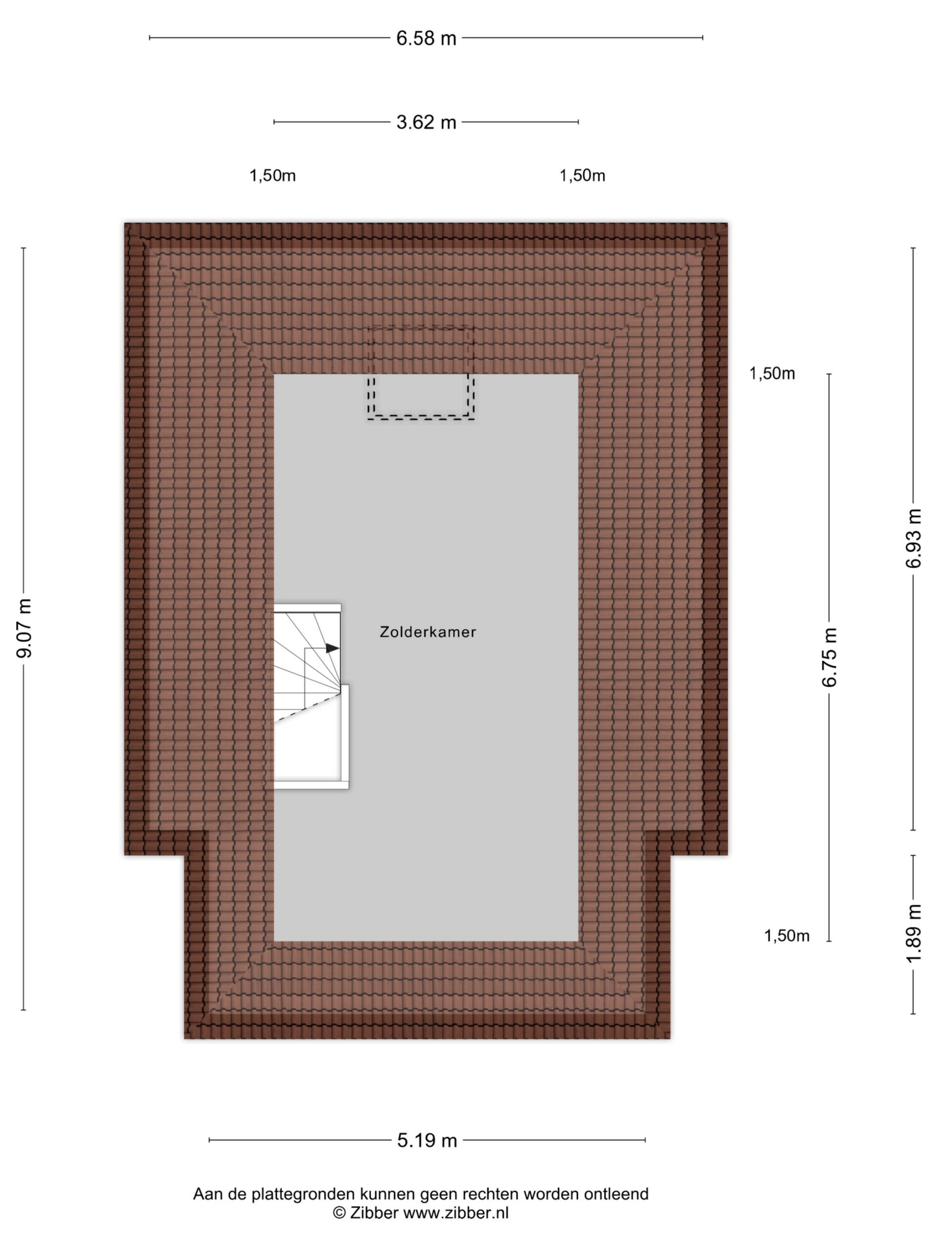 2e Verdieping: ruime multifunctionele zolderkamer ter grootte van circa 22,5 m².