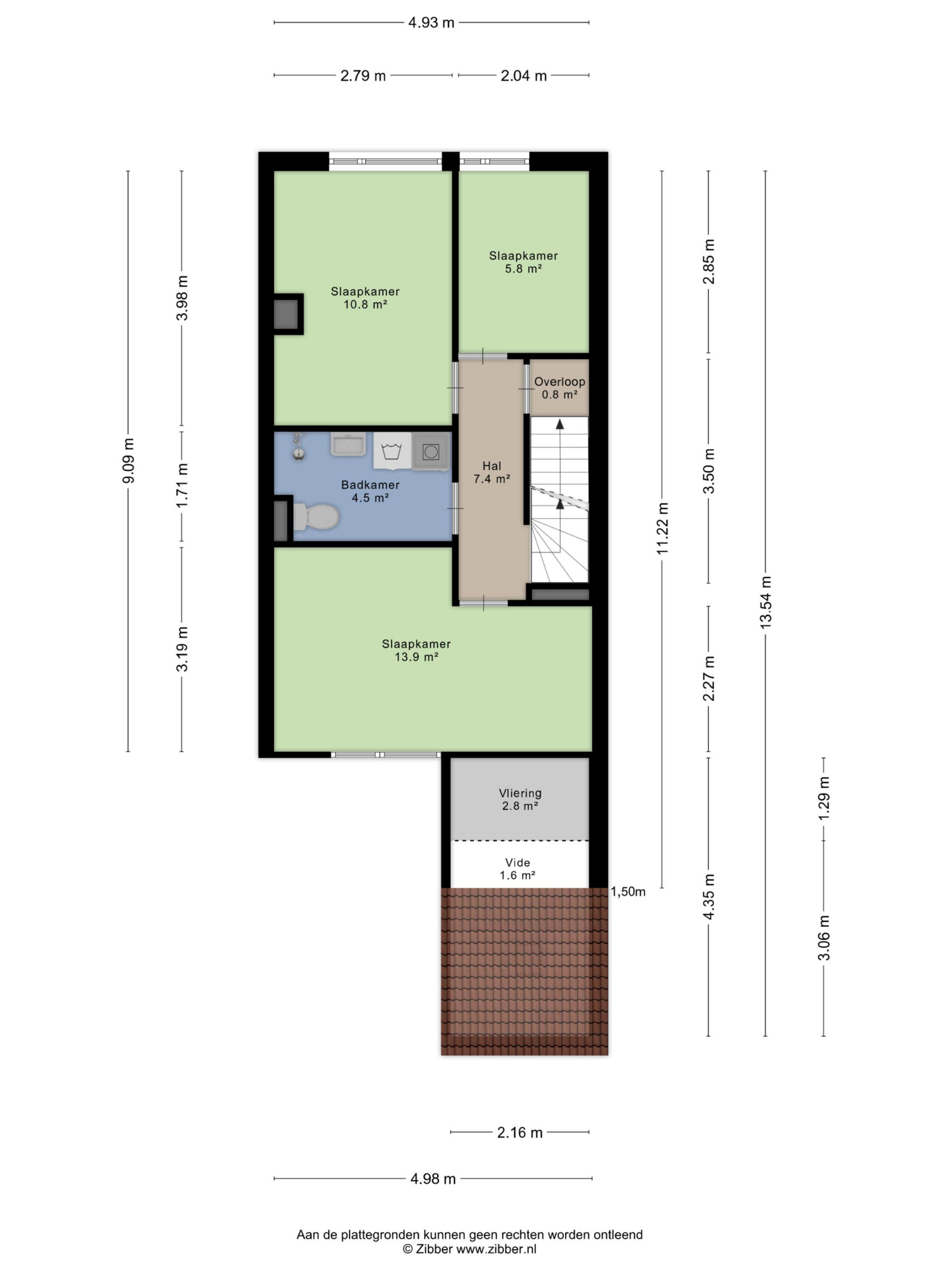 2e Verdieping: overloop/bergzolder met cv-opstelplaats. Twee slaapkamers ter grootte van circa 6 m² en 14,5 m², waarvan de grote slaapkamers is voorzien van eigen wastafel.