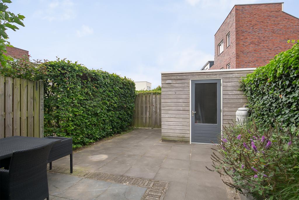 De onderhoudsvriendelijke achtertuin is gelegen op het zuidwesten, waardoor je de hele dag door kunt genieten van de zon en is bereikbaar middels een achterom. In de tuin staat een houten berging voorzien van elektra.