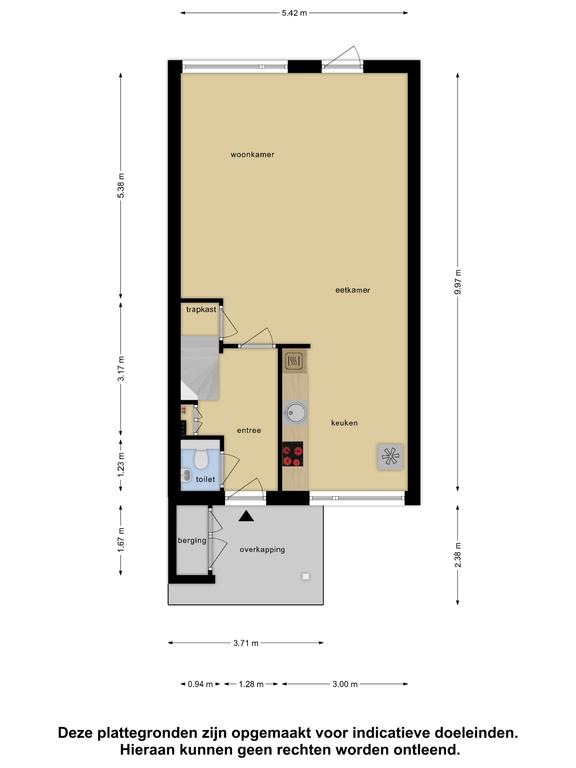 Vliering: Via vlizotrap bereikbare bergruimte over de volle breedte van de woning.