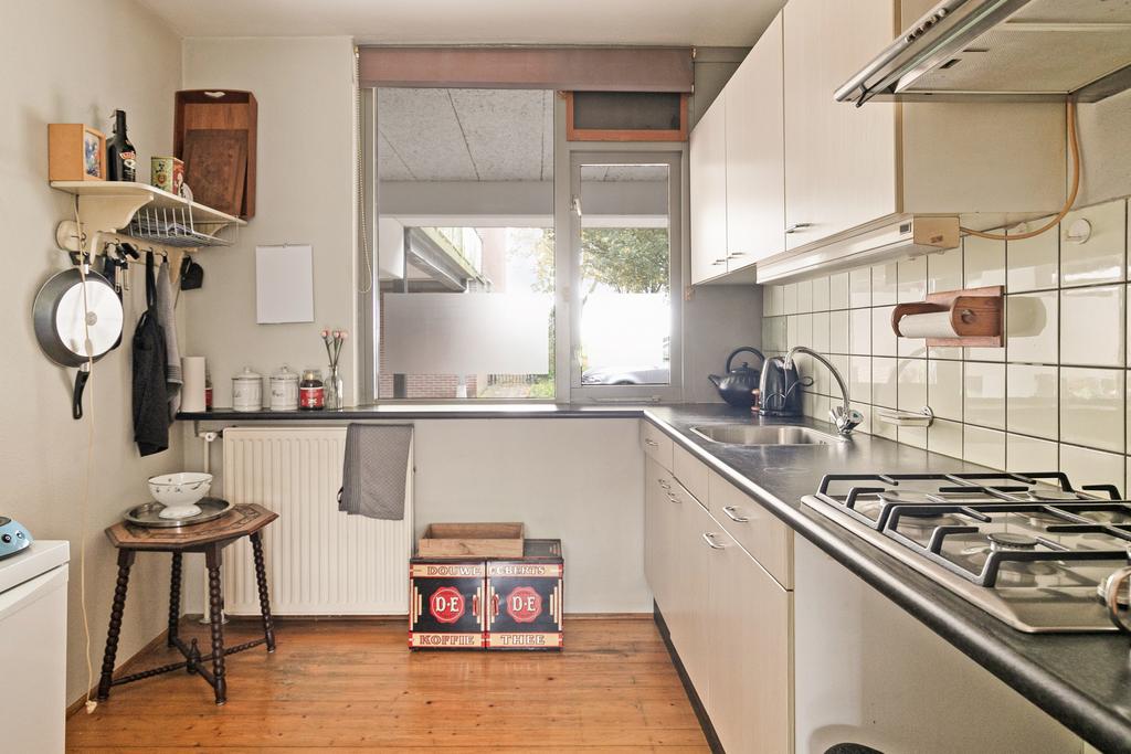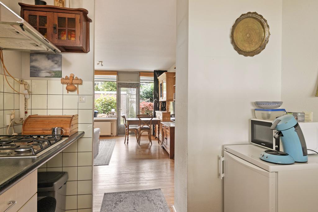 Begane grond: entree, hal met garderobe en meterkast. Tuingerichte woonkamer voorzien van parketvloer en toegang tot de achtertuin. Half open keuken voorzien van 4-pits gaskookplaat en afzuigkap. Twee slaapkamers ter grootte van circa 8 m² en 12,5 m², beiden voorzien van laminaatvloer. Badkamer voorzien van wastafel, inloopdouche en wasmachine-aansluiting. Separaat toilet voorzien van fonteintje. Inpandige berging ter grootte van circa 2 m².