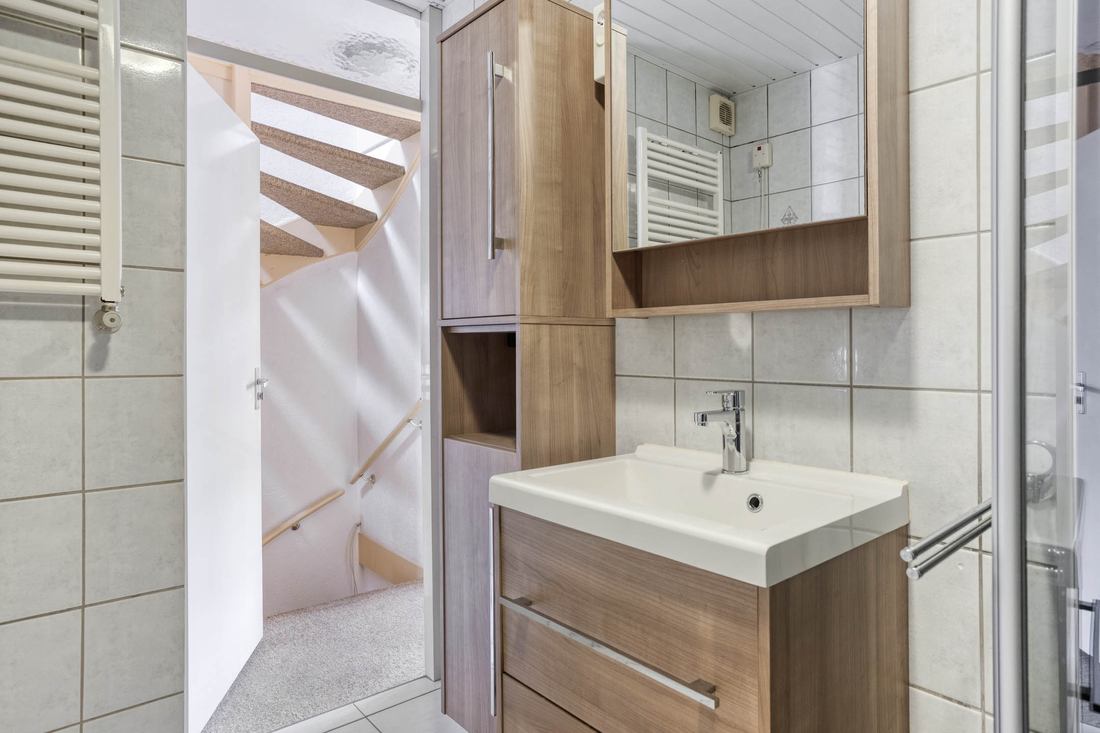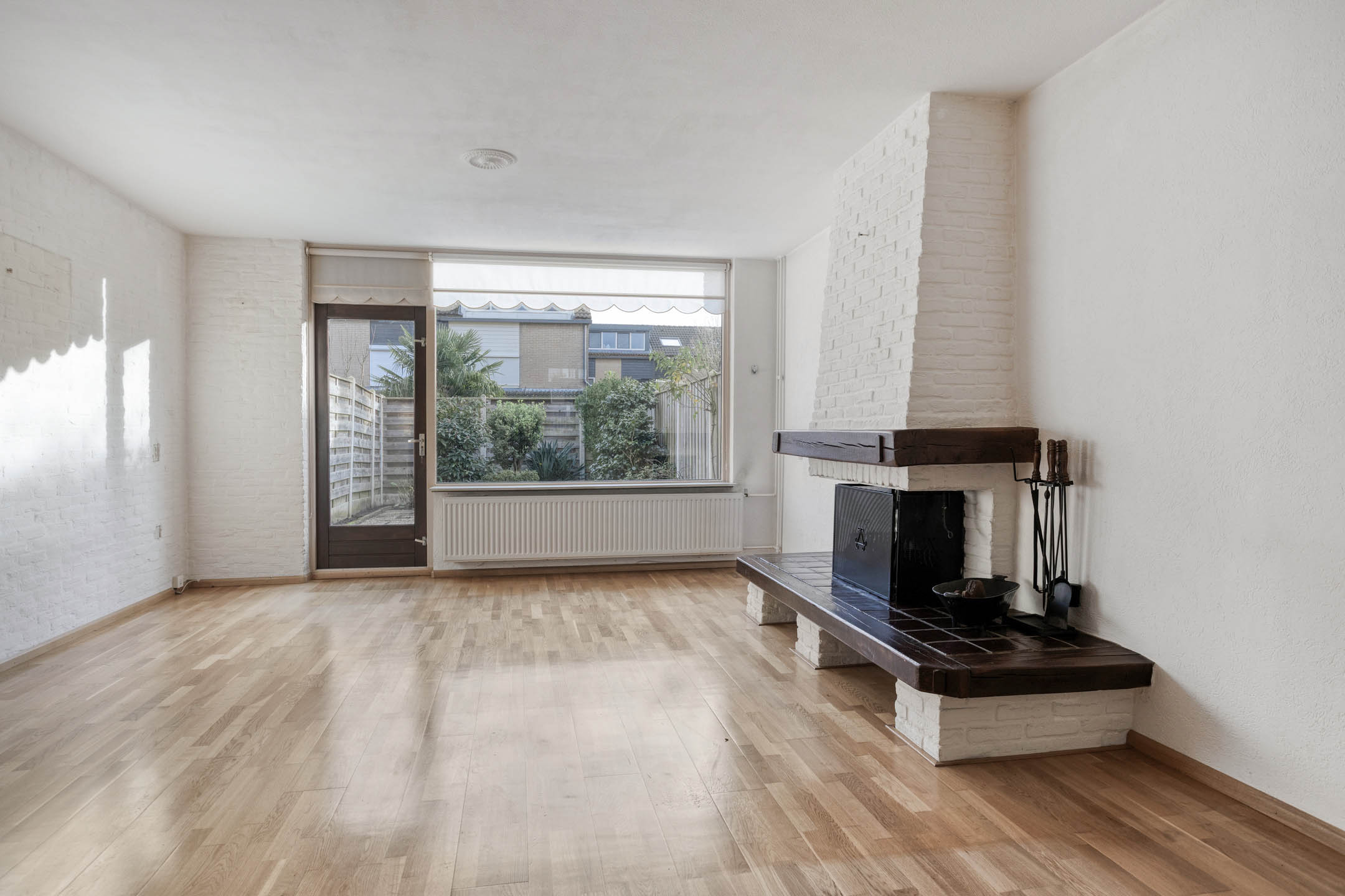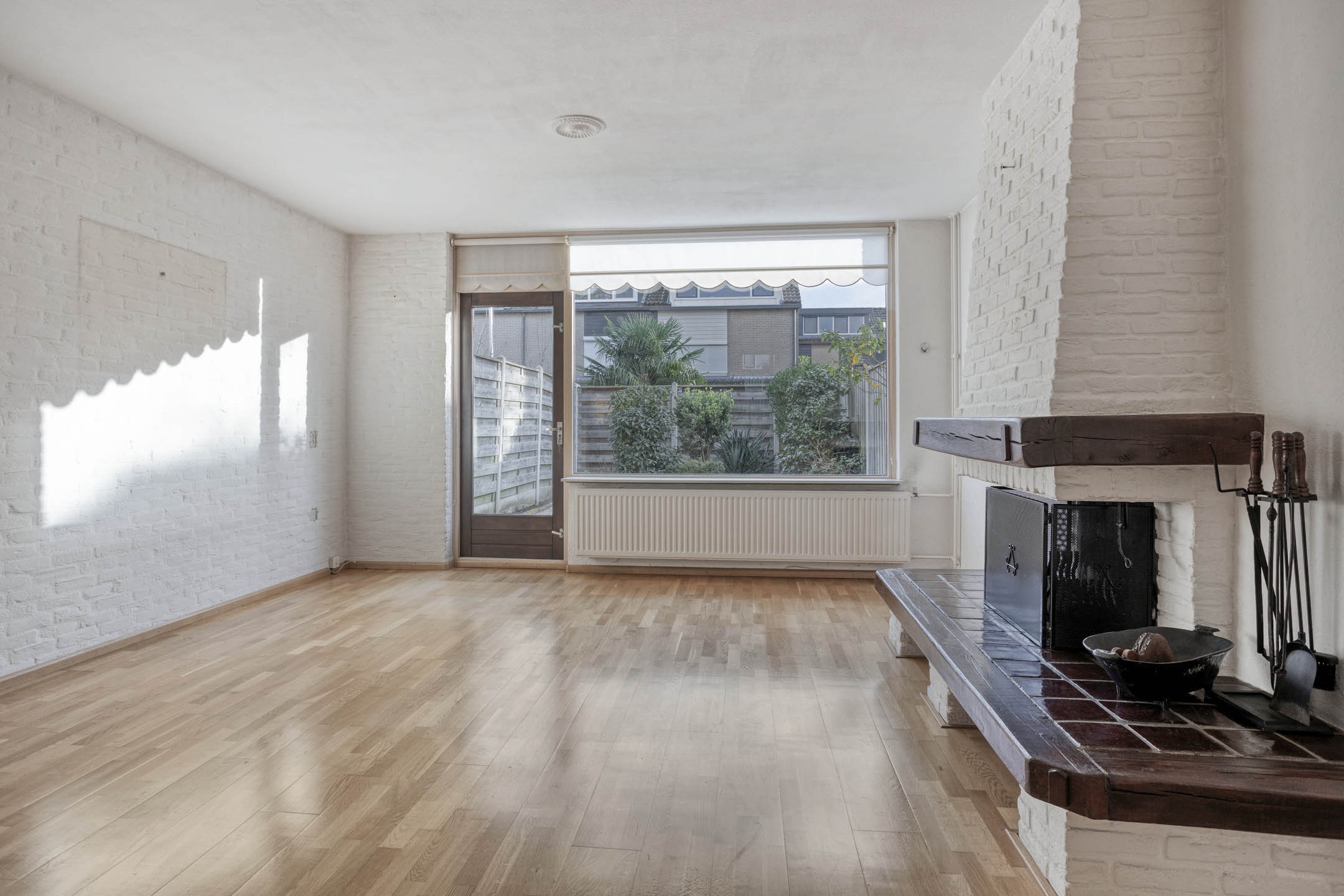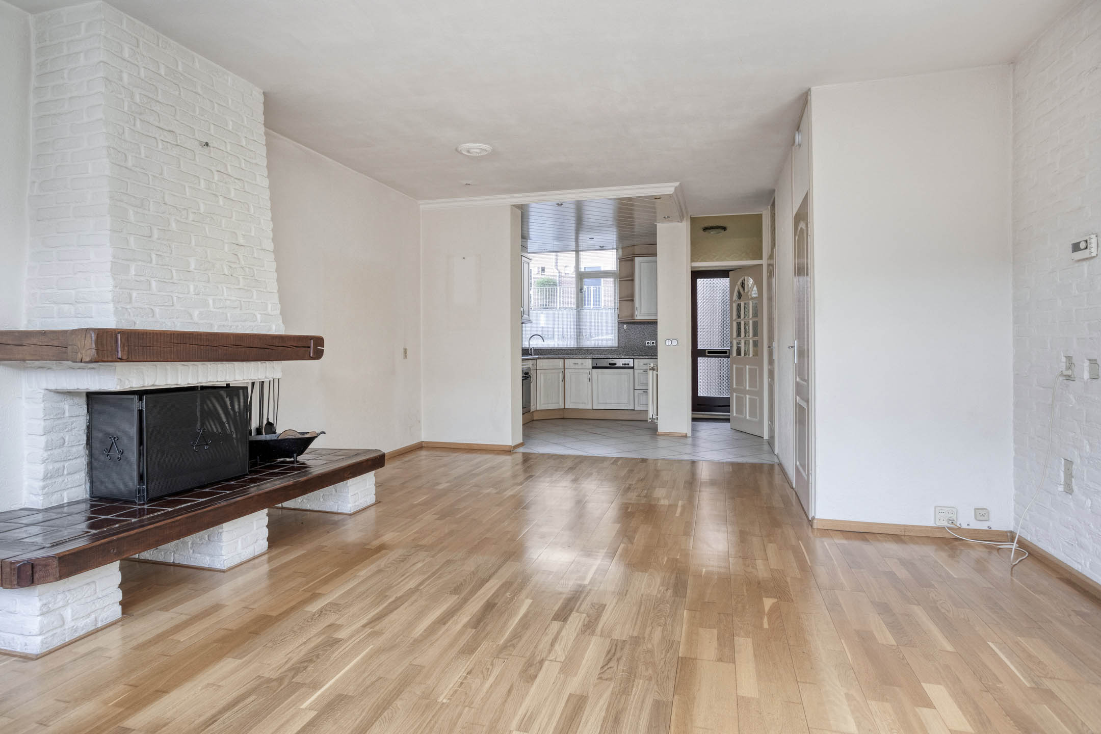Begane grond: entree, hal met meterkast. Nette, tuingerichte woonkamer voorzien van parketvloer, schouw met open haard en provisiekast onder de trap. Half open keuken in L-opstelling, voorzien van inductiekookplaat, afzuigkap, oven, koelkast, vriezer en vaatwasser. Tussenhal met trapopgang naar de 1e verdieping en toegang tot het toilet voorzien van fonteintje.