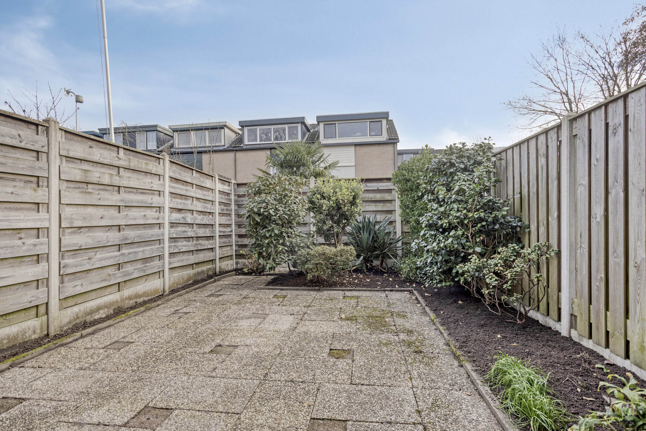 De woning beschikt over een onderhoudsvriendelijke achtertuin op het oosten, welke is voorzien van sierbestrating en border langs de rand. Aan de voorzijde is de tuin eveneens bestraat en voorzien van vrijstaande stenen (fietsen)berging. Parkeren is mogelijk op de openbare parkeervoorzieningen in de straat.
