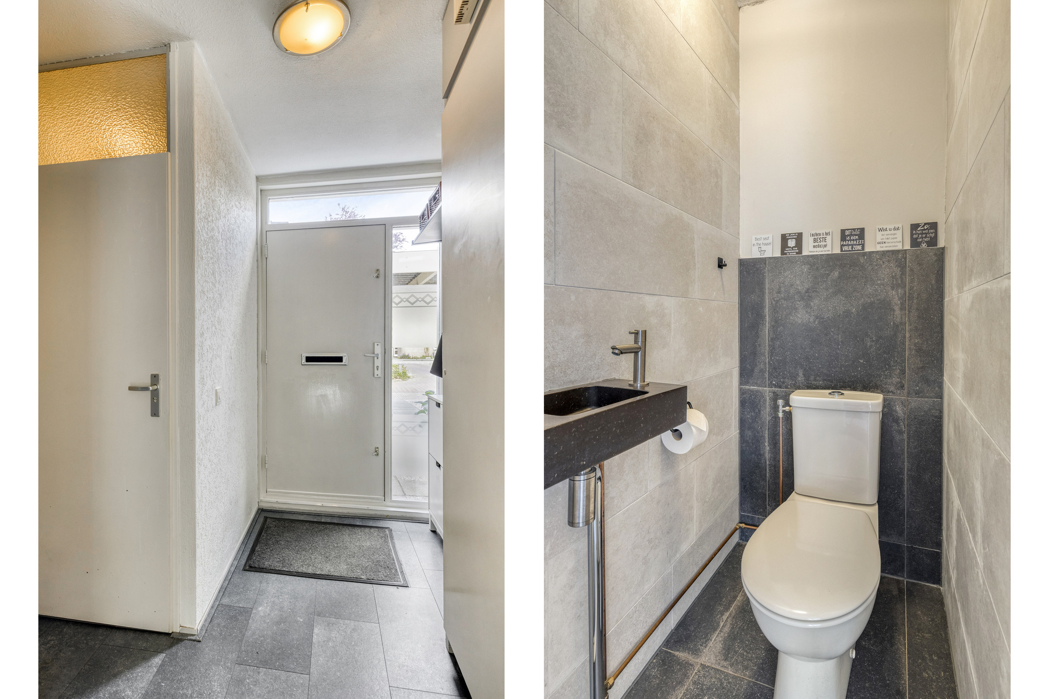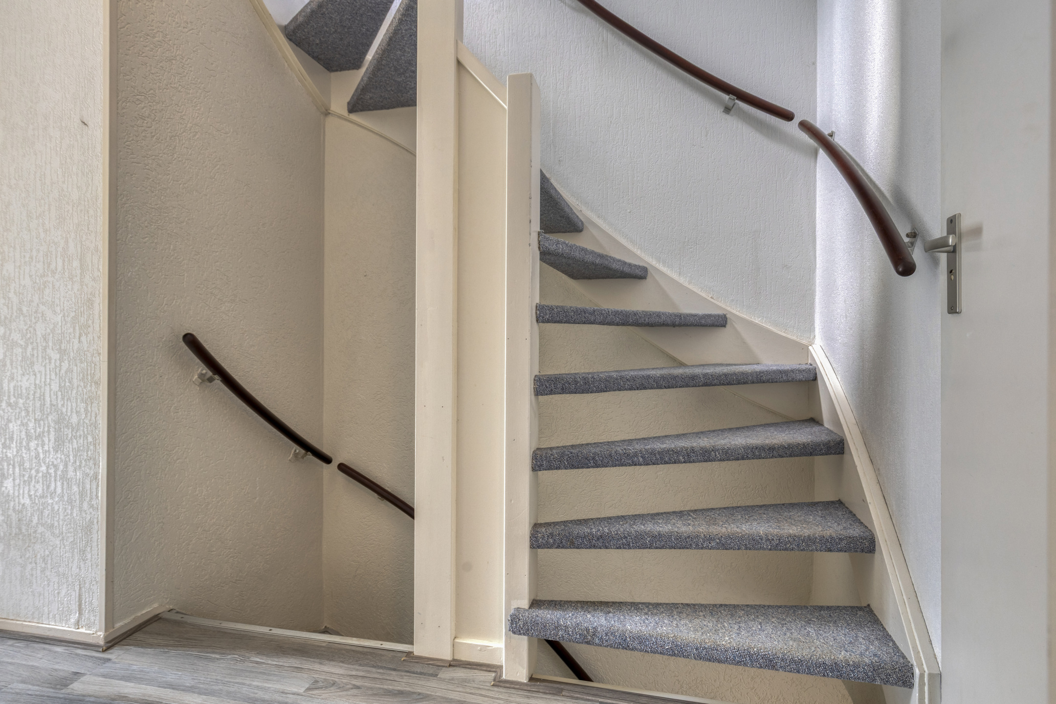 Begane grond: hal met meterkast, trapopgang naar de 1e verdieping en toilet voorzien van fonteintje. Nette, tuingerichte woonkamer met, laminaatvloer en provisiekast onder de trap. Open keuken aan de voorzijde voorzien van kookplaat, afzuigkap, combi-oven, koel-vriescombinatie, vaatwasser en kokend water kraan.