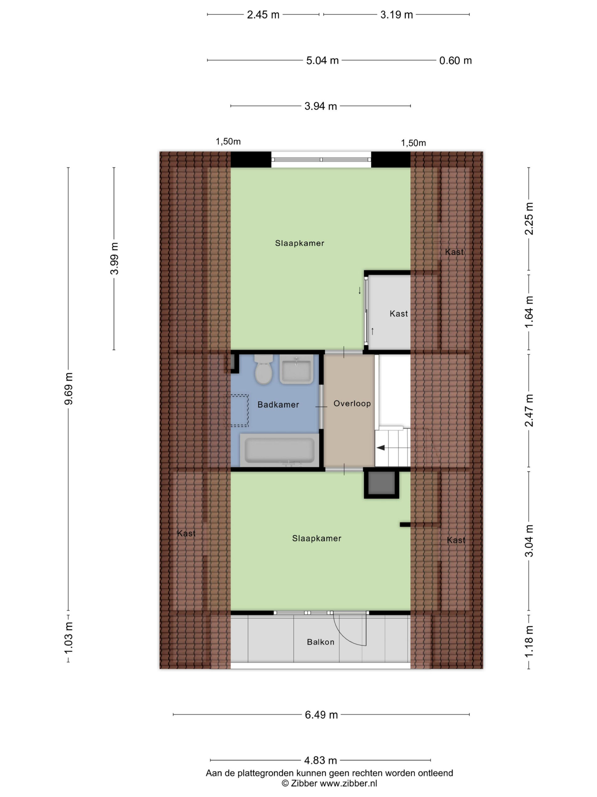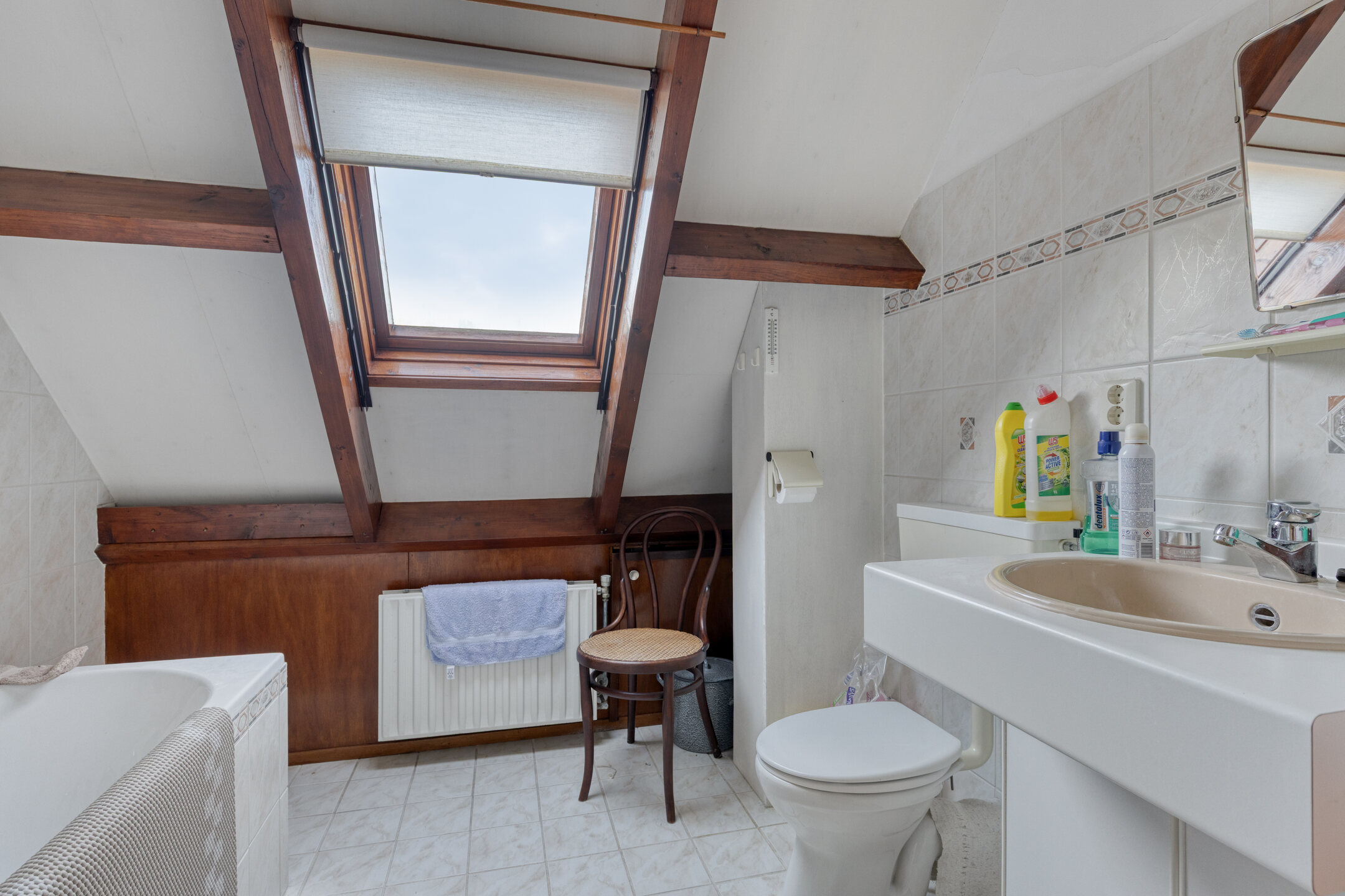 1e Verdieping: overloop. Twee slaapkamers ter grootte van circa 12 m² en 14 m², waarvan één voorzien van vaste kast en een met toegang tot hat balkon aan de zuidzijde. Tweede (ruimere) badkamer voorzien van dakraam met ligbad, douche, wastafelmeubel en toilet.