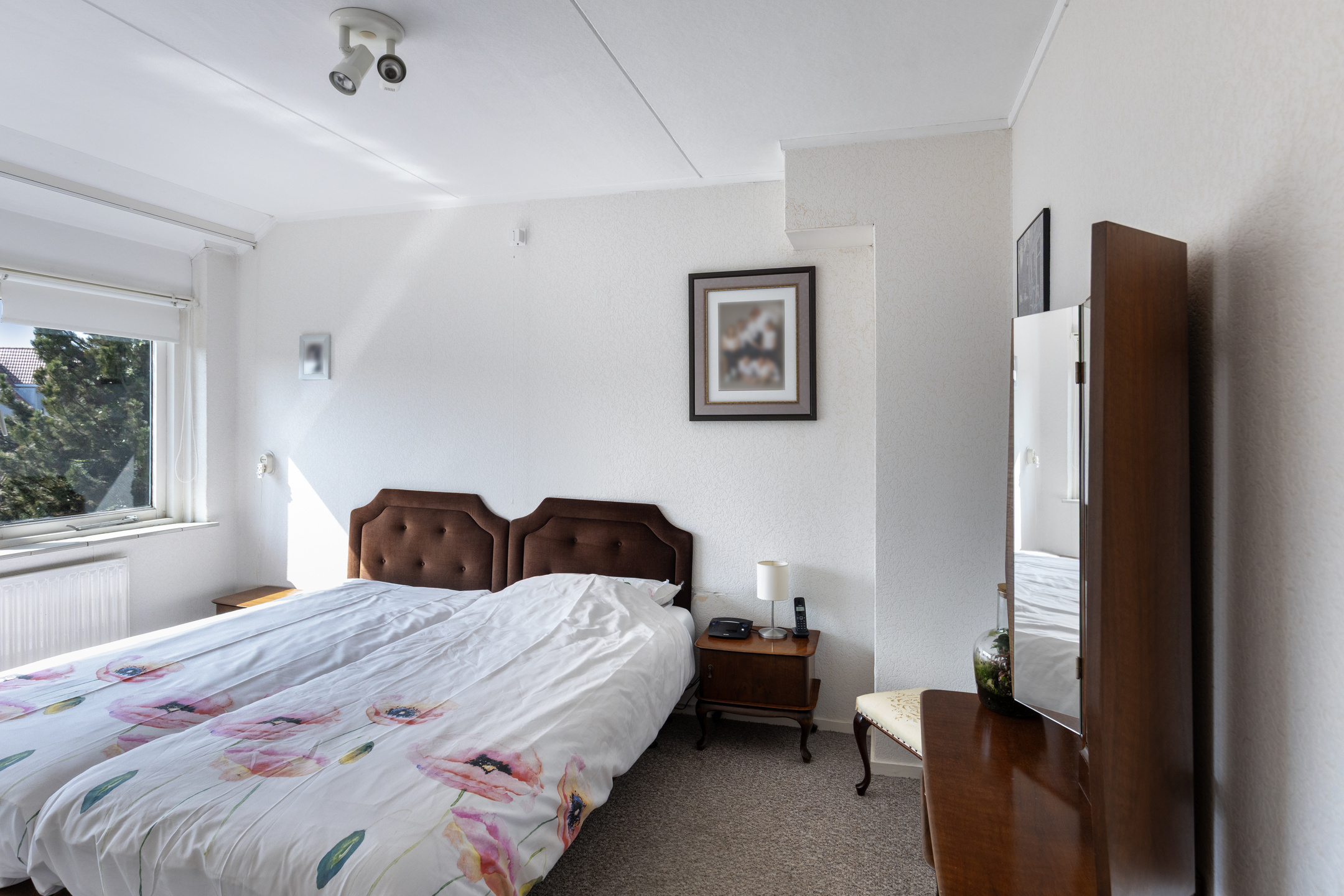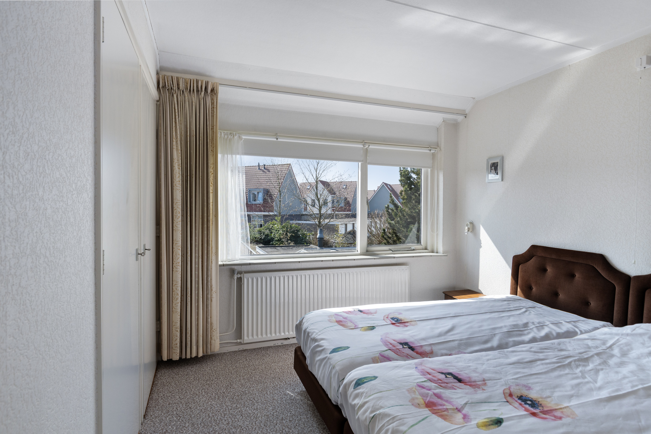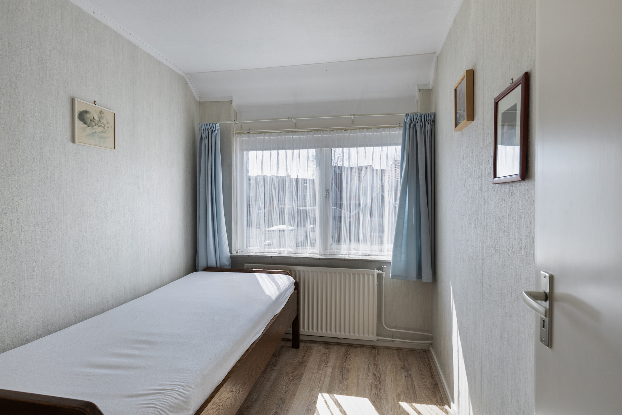 1e Verdieping: overloop met vlizotrap naar de bergzolder. Drie slaapkamers ter grootte van circa 6 m², 7 m² en 11,5 m², waarvan de kamers aan de achterzijde voorzien van vaste kast(en). Compacte badkamer voorzien van wastafelmeubel, inloopdouche en handdoekenradiator.