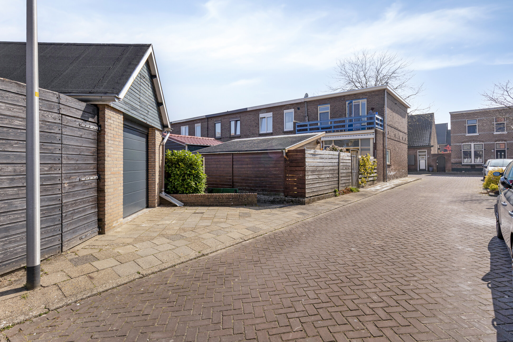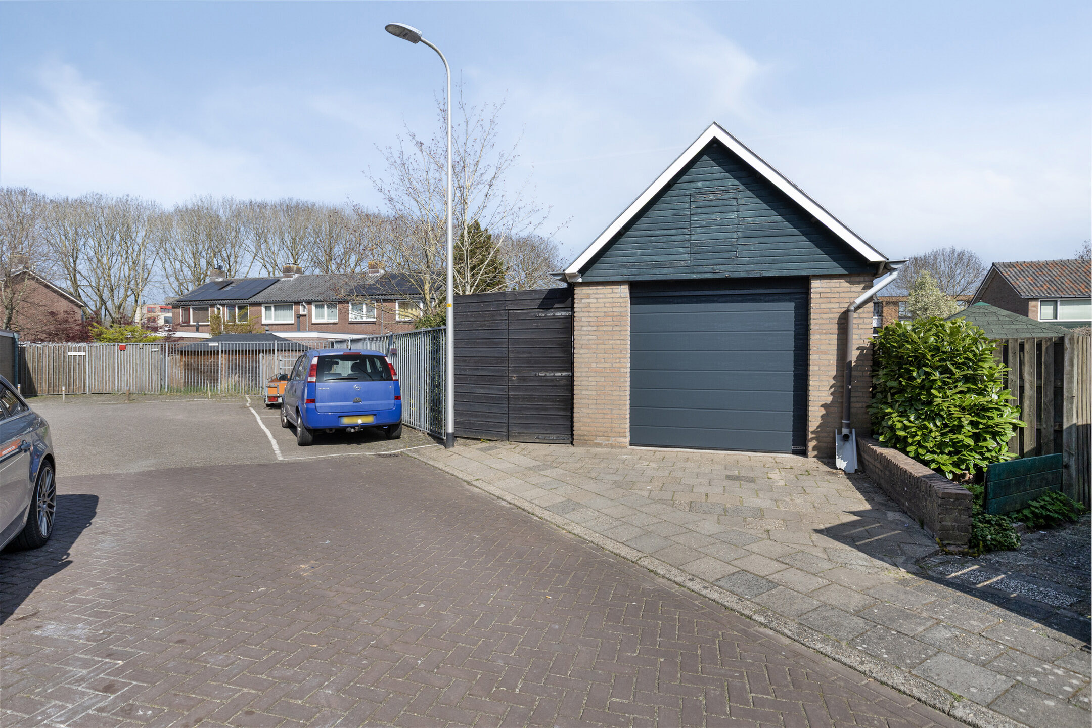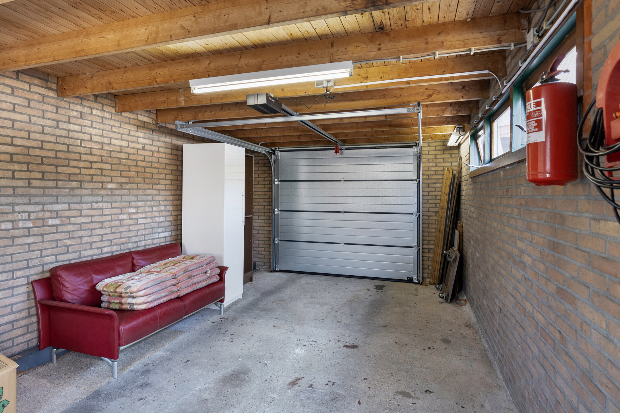 Zeer riante onderhoudsvriendelijke achtertuin op het zuiden. Achterin de tuin staat een riante garage met kelder en bergzolder, welke te bereiken is vanaf de straat.
