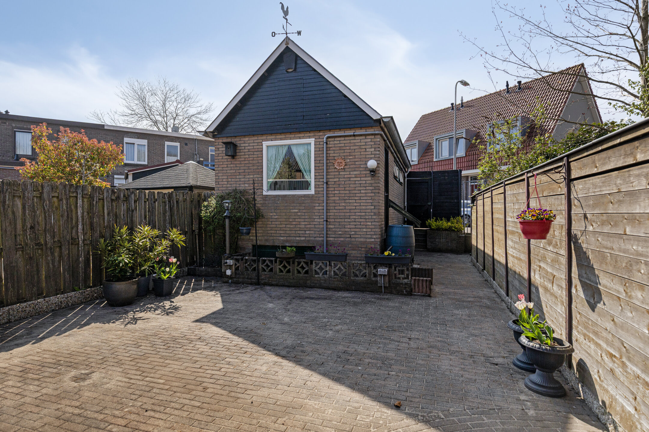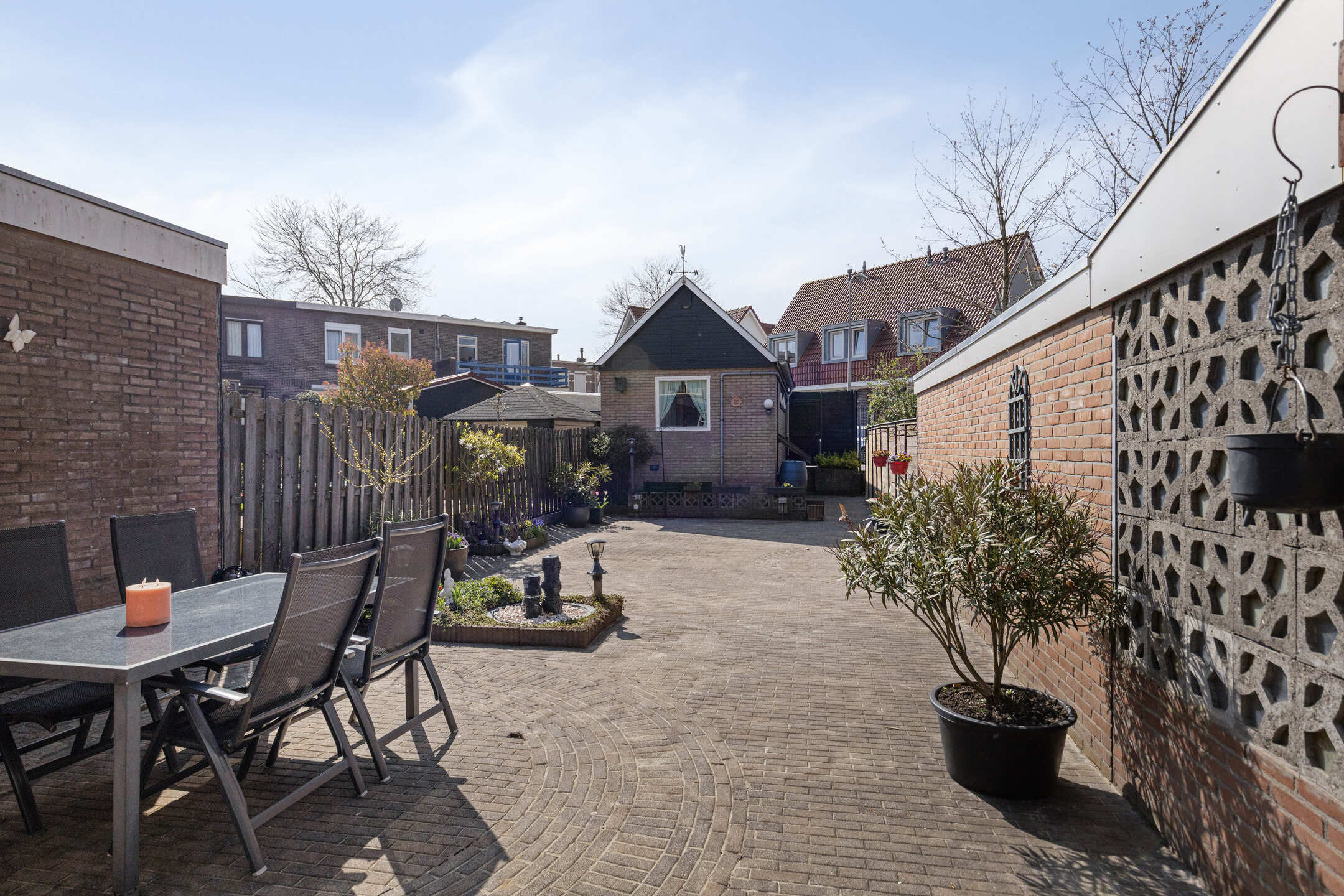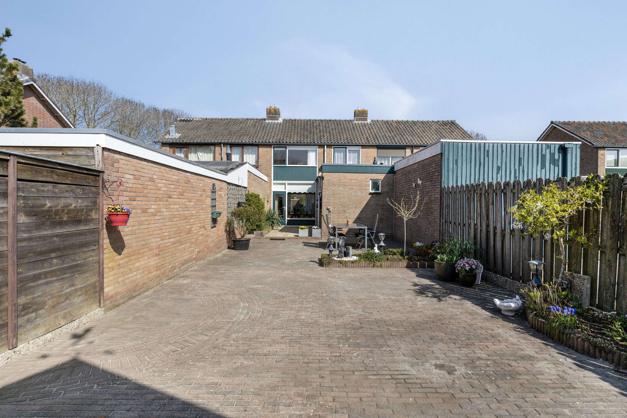 Zeer riante onderhoudsvriendelijke achtertuin op het zuiden. Achterin de tuin staat een riante garage met kelder en bergzolder, welke te bereiken is vanaf de straat.