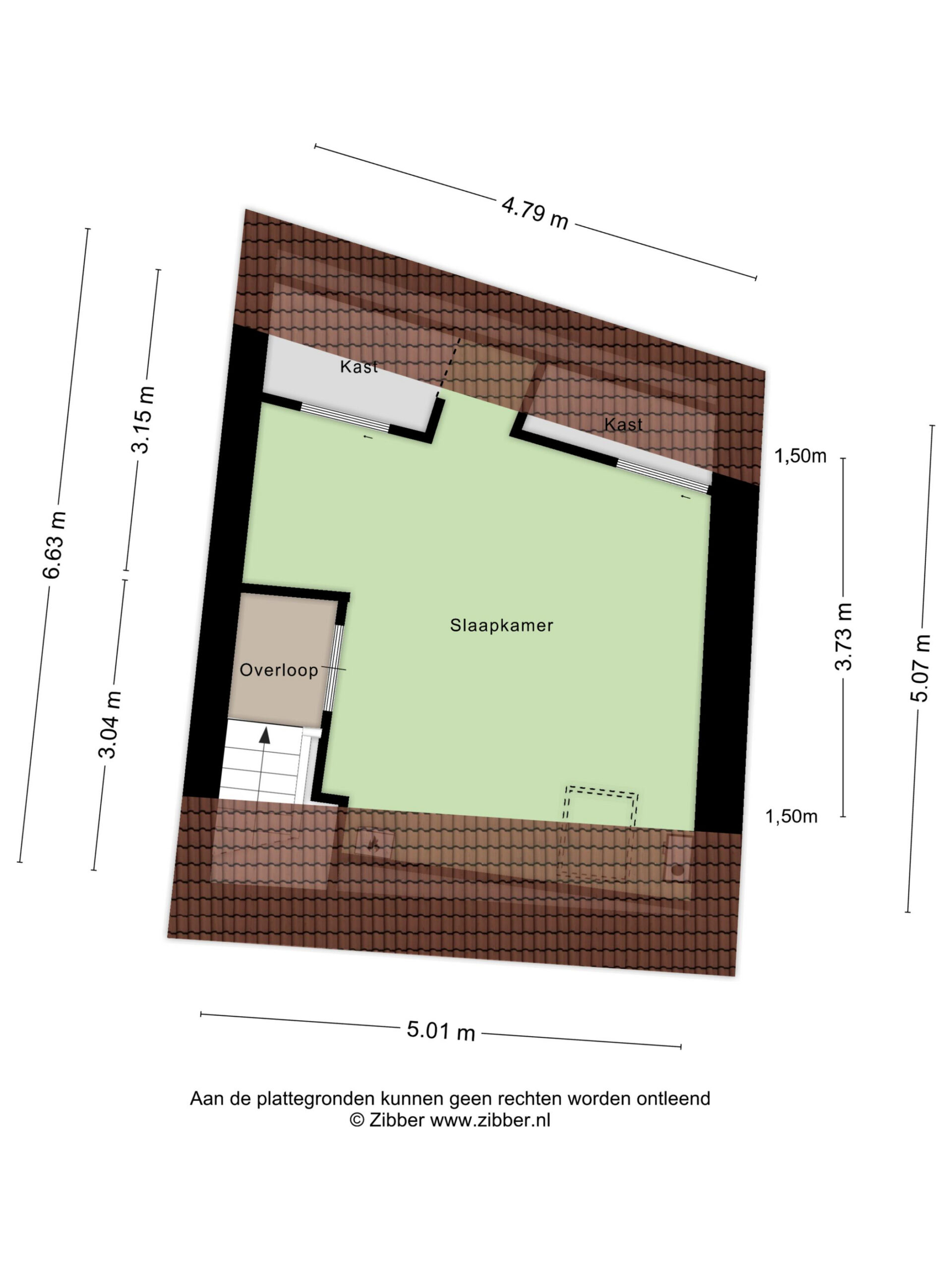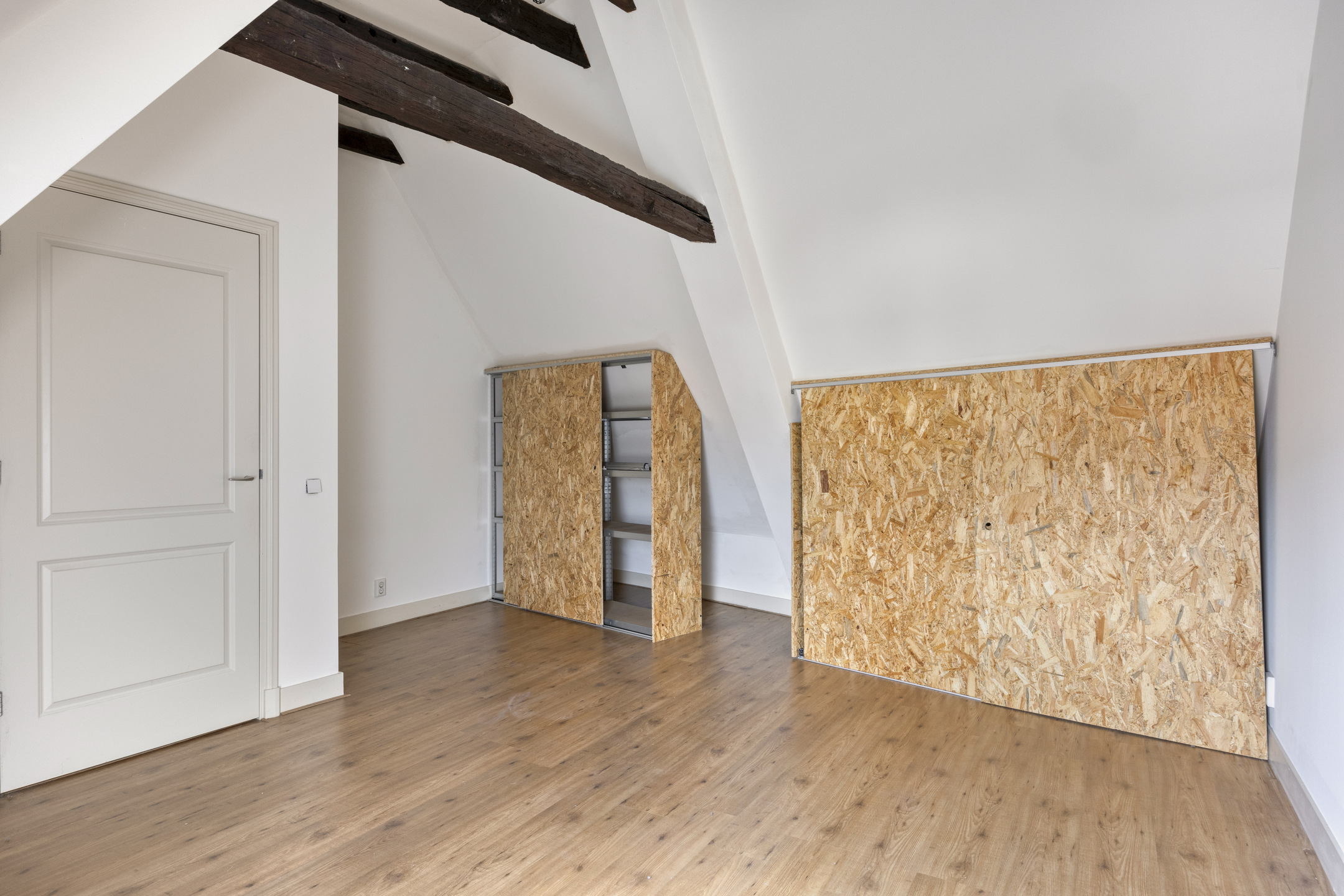 2e (woon)verdieping: overloop. Tweede slaapkamer ter grootte van circa 16 m², voorzien van dakraam, vaste kasten en opstelplaats voor de cv-installatie.