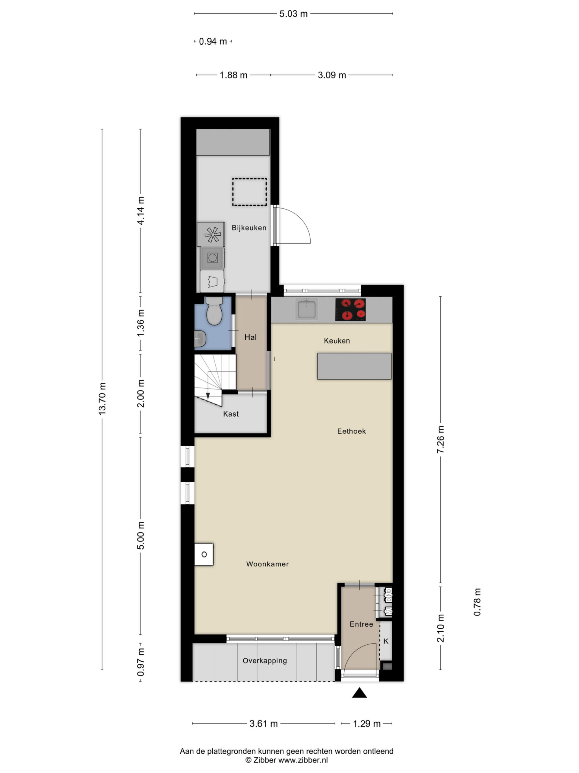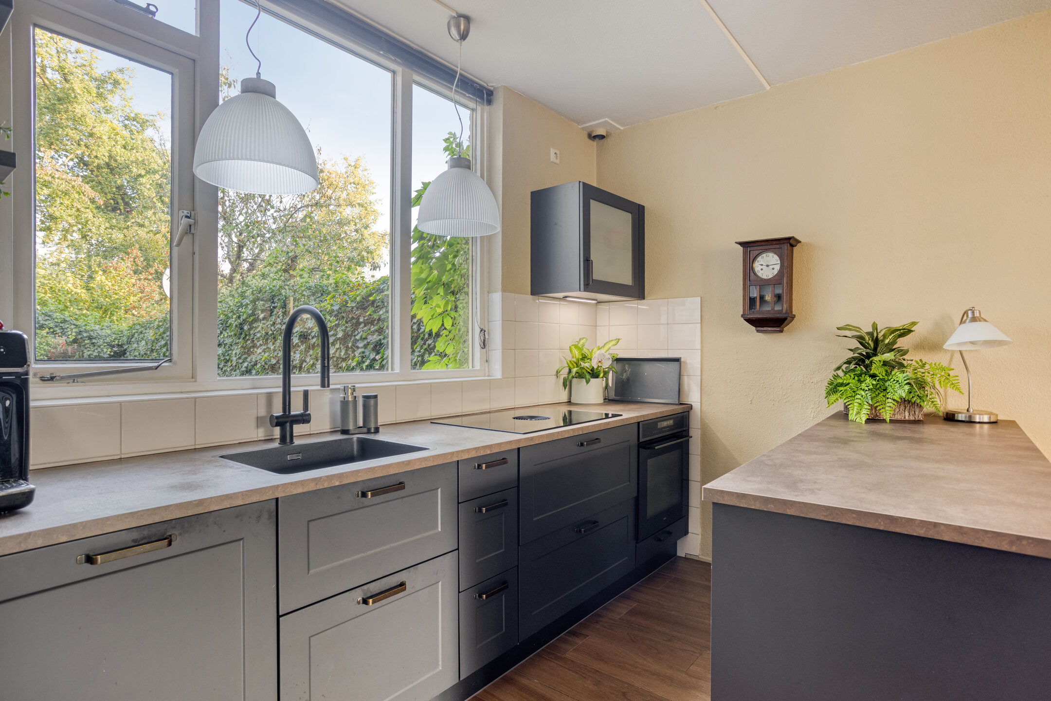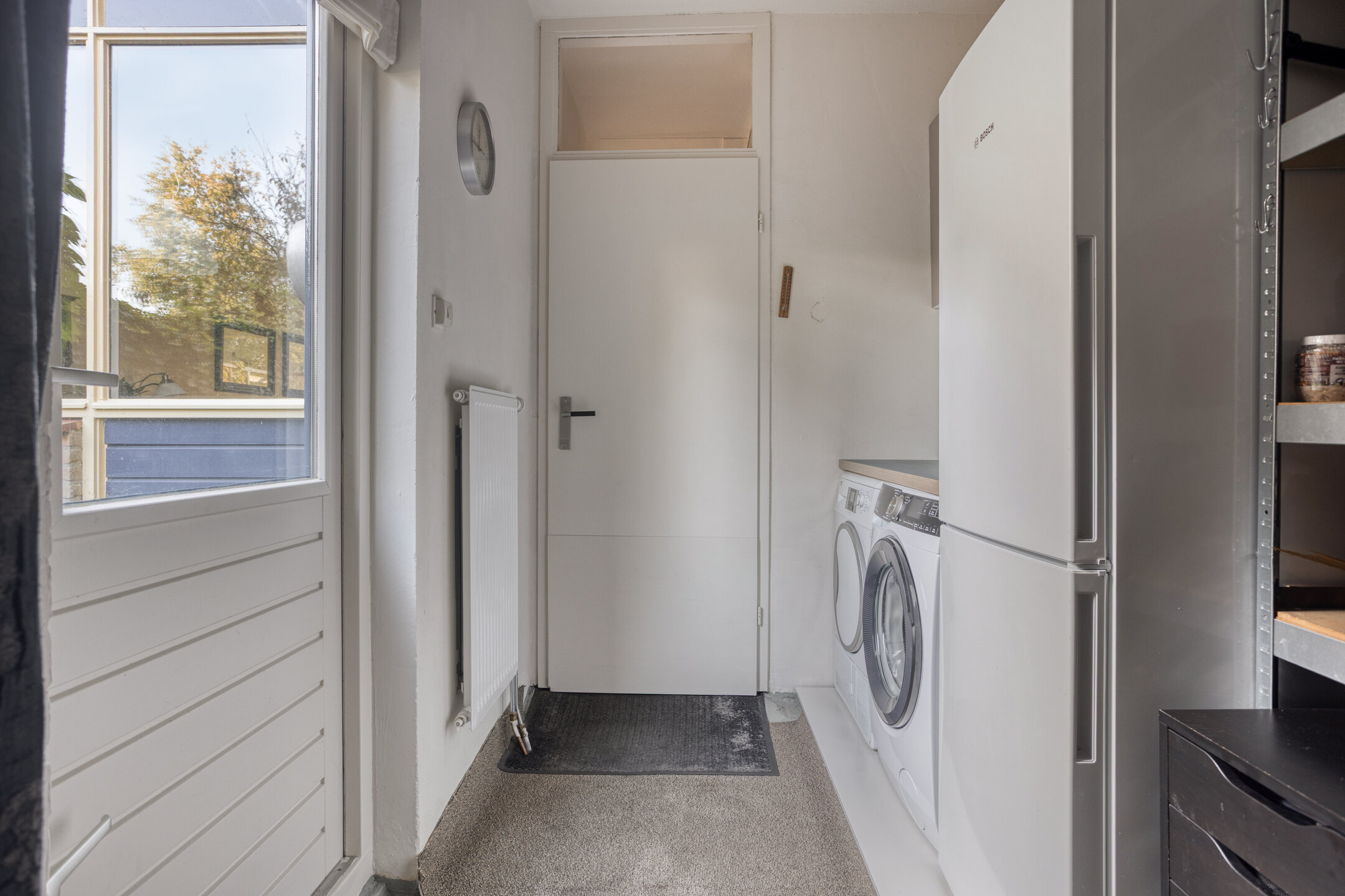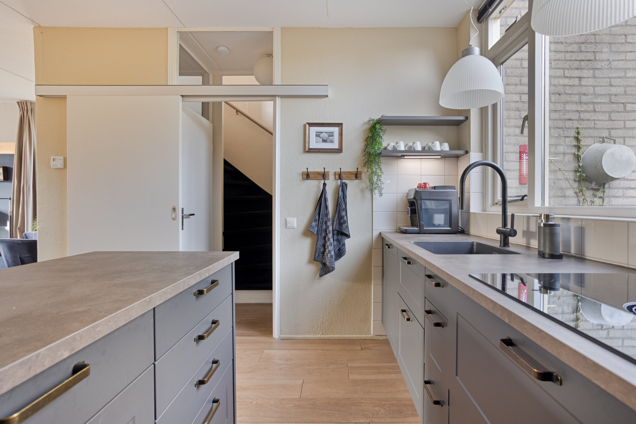 Begane grond: overdekte entree, hal met garderobe en meterkast. Ruime woonkamer met gashaard. Nette open (woon-)keuken voorzien van verrijdbaar aanrechtblok en inbouwapparatuur, waaronder een 4-pits Bora inductiekookplaat met geïntegreerde afzuiging, combi-oven en vaatwasser. 2e hal met trapkast, staand toilet met fonteintje en trapopgang naar de 1e verdieping. Bijkeuken met vliering, keukenblok en aansluitingen was-apparatuur.