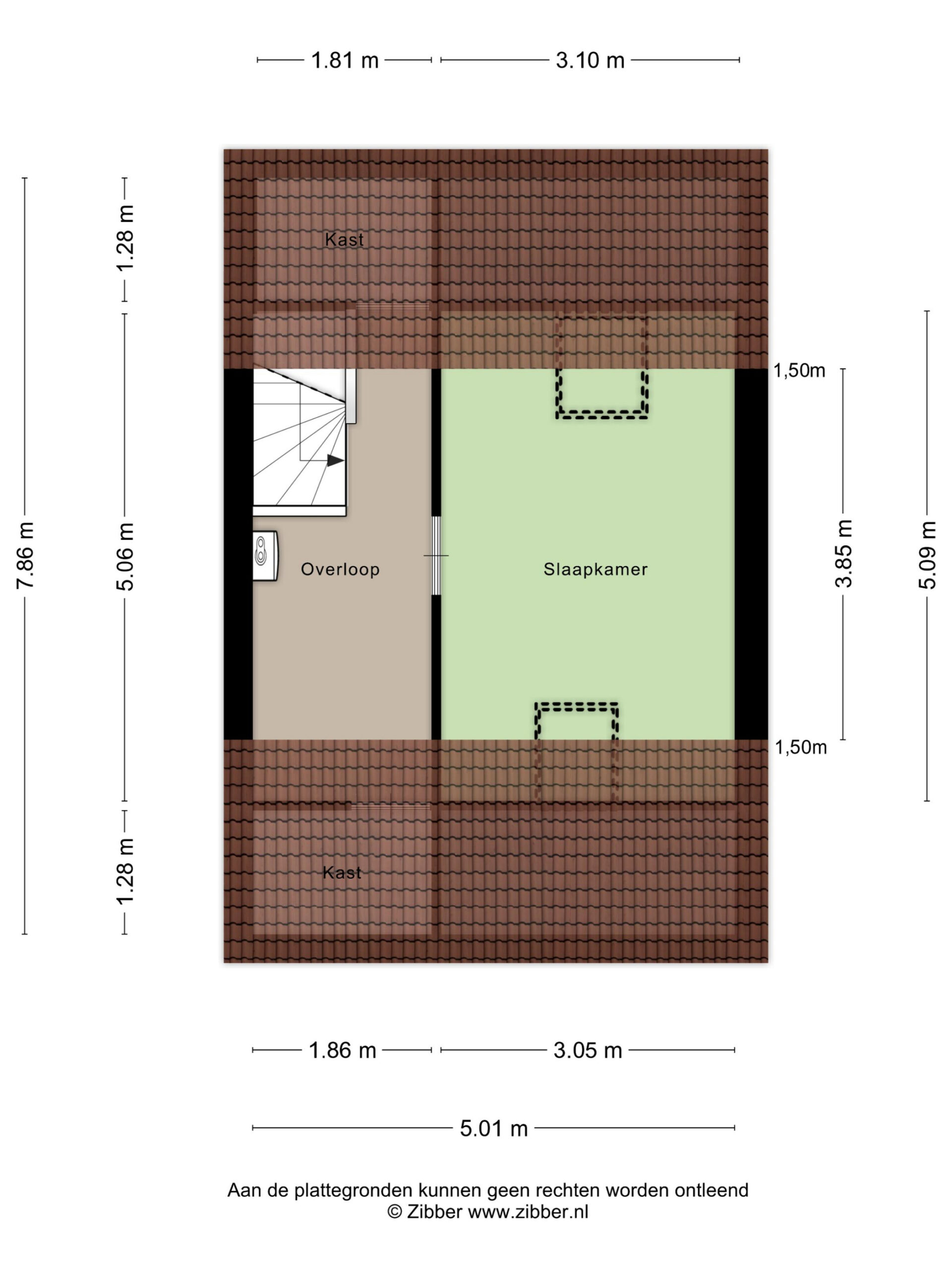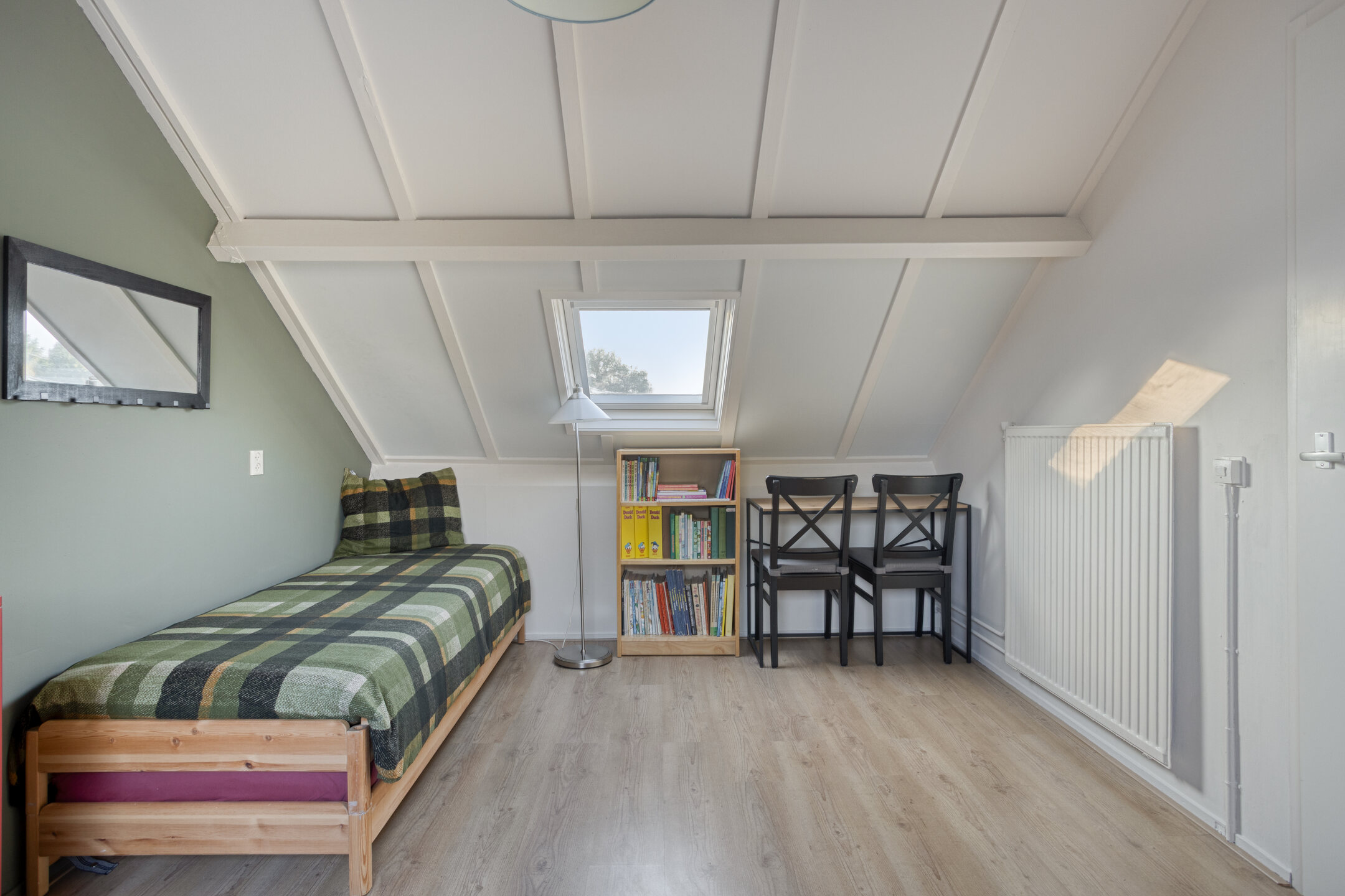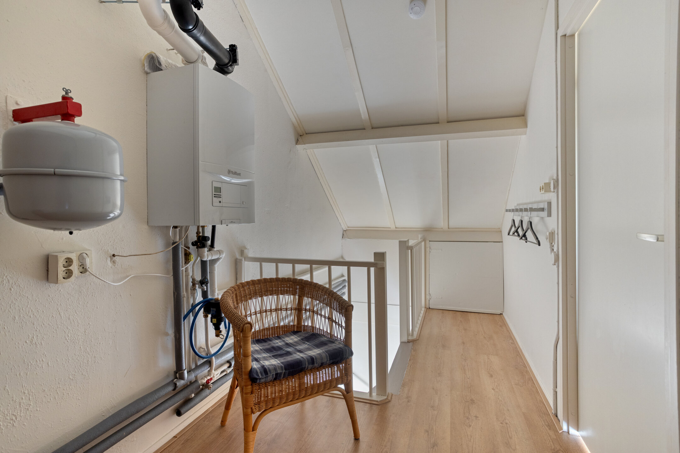 2e Verdieping: overloop met cv-installatie en bergruimte achter de knieschotten. Vierde slaapkamer ter grootte van 12 m² met 2 dakramen. Deze gehele verdieping is eveneens voorzien van laminaat.