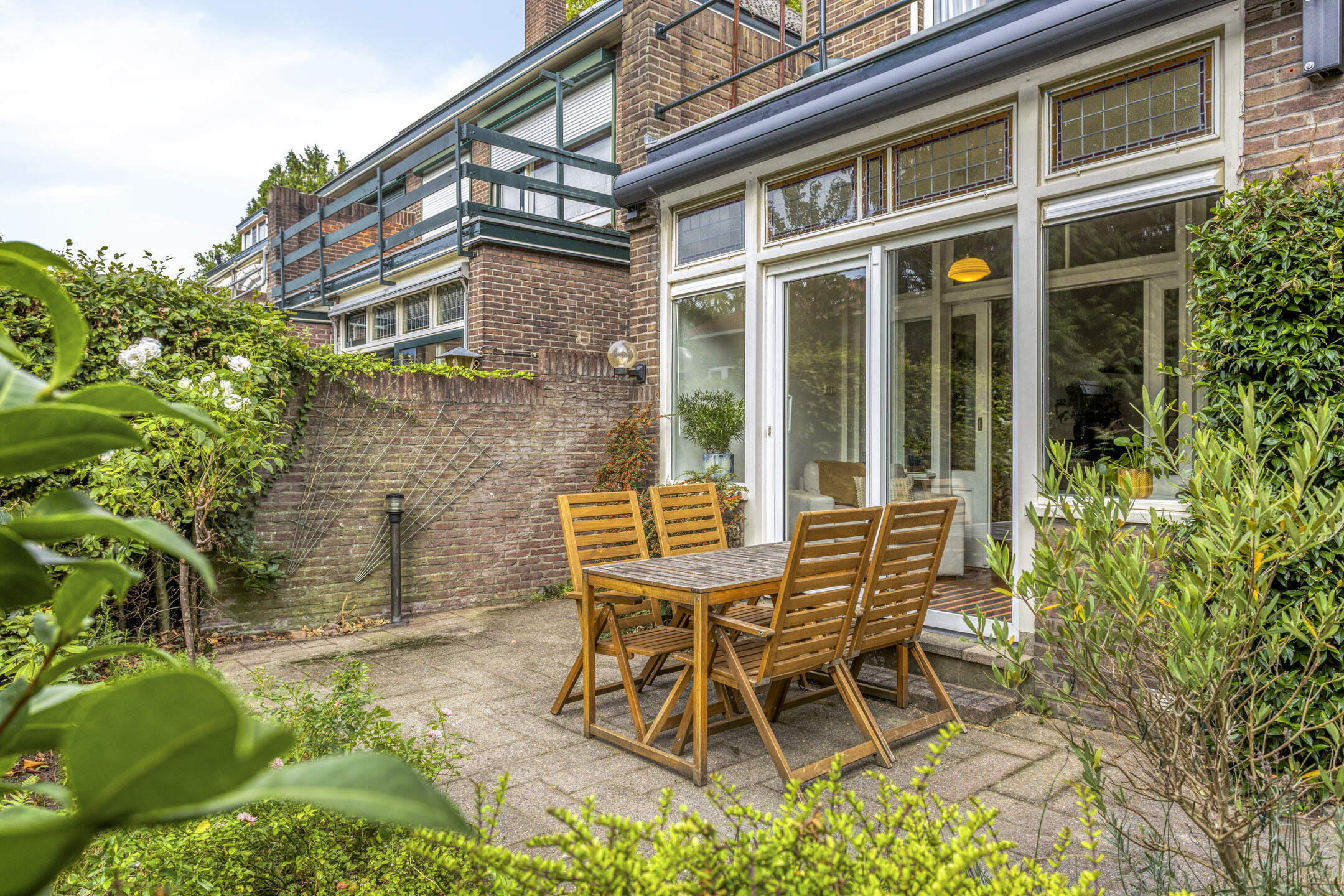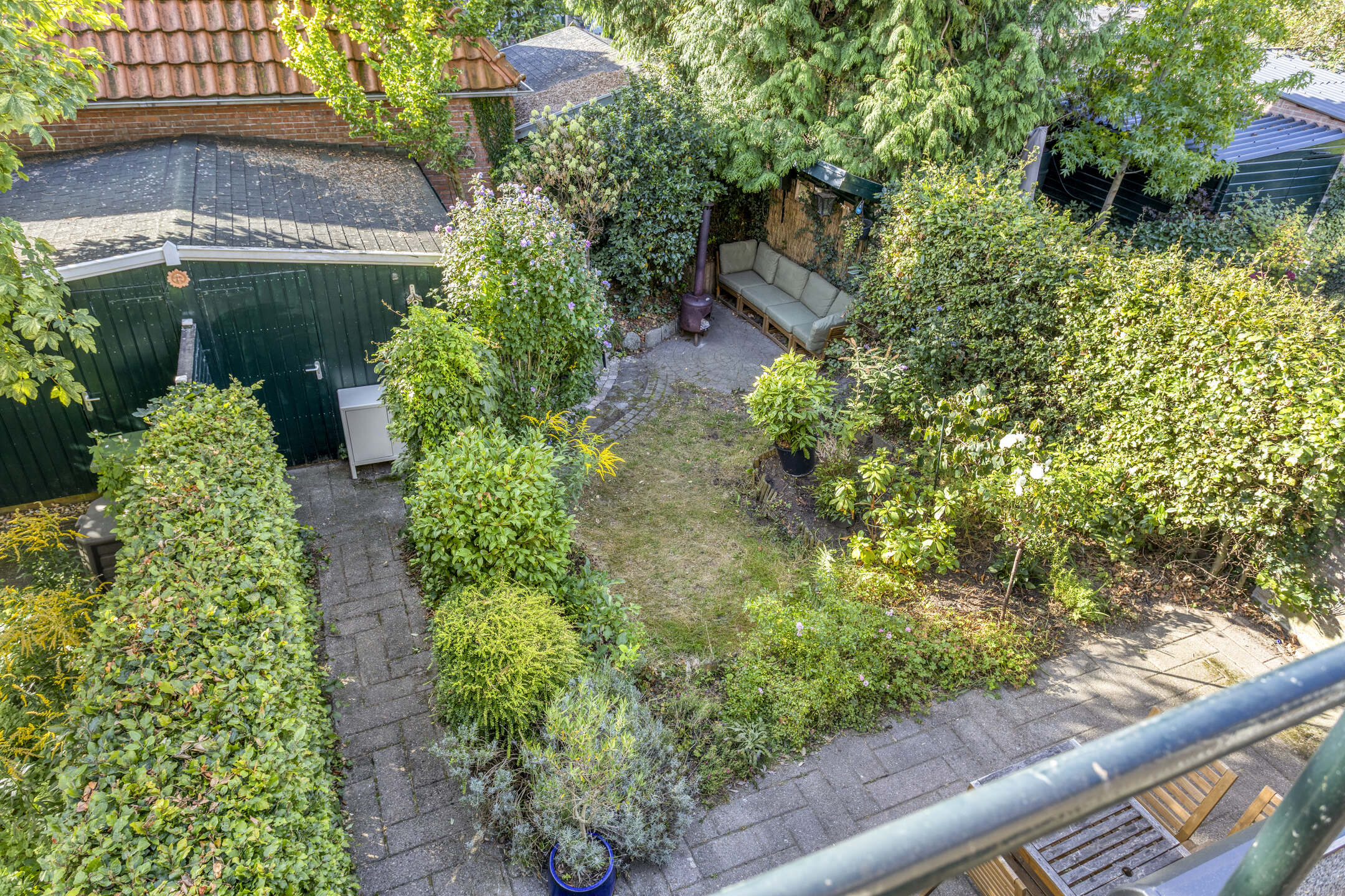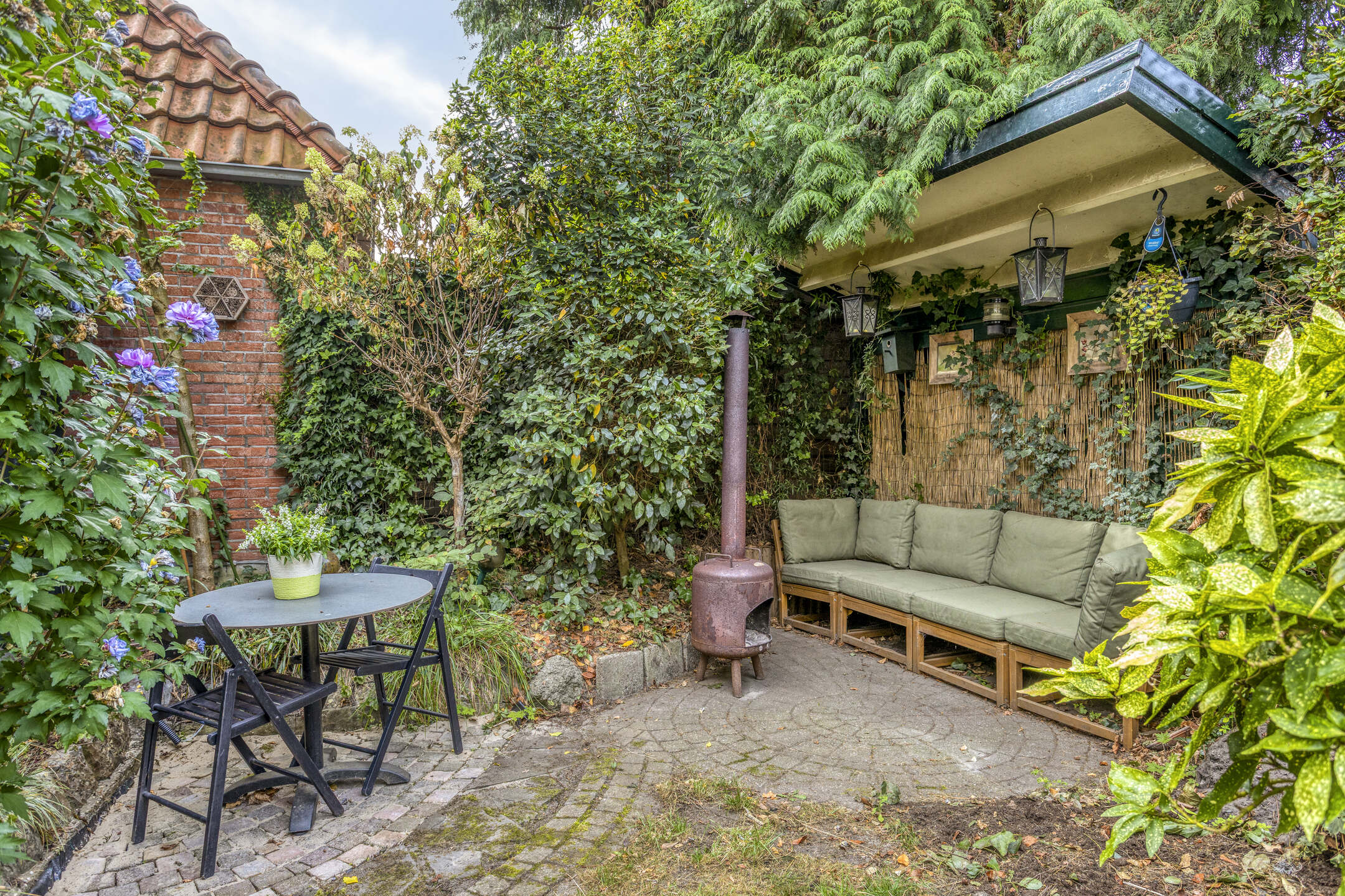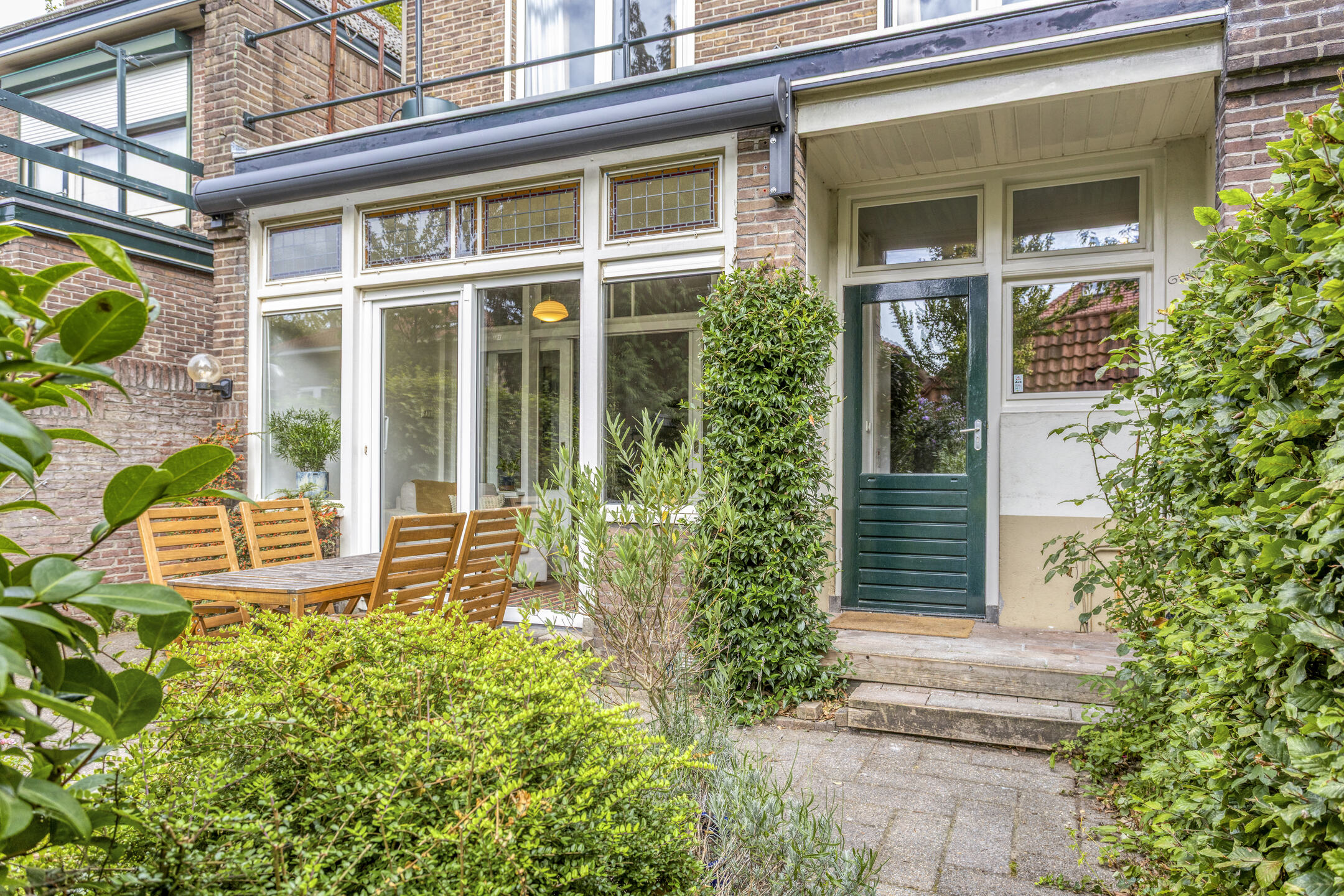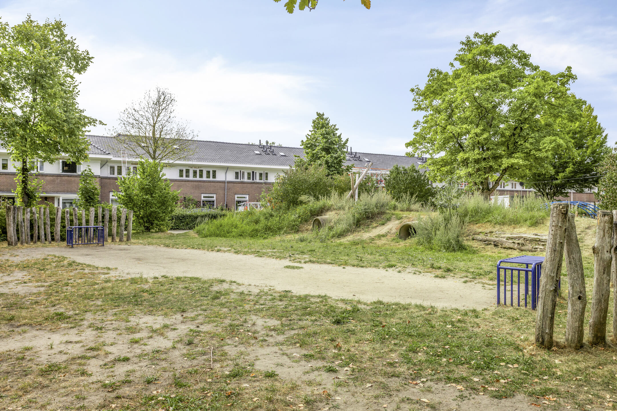 Fraai aangelegde achtertuin (78m²) op het zuidoosten met terras tegen de achtergevel, voorzien van elektrisch zonnescherm, gazon, borders, houten berging en een zitje achterin. De tuin is achterom te bereiken via het pad langs de woning. Parkeren is mogelijk in de straat op de openbare parkeervoorzieningen.