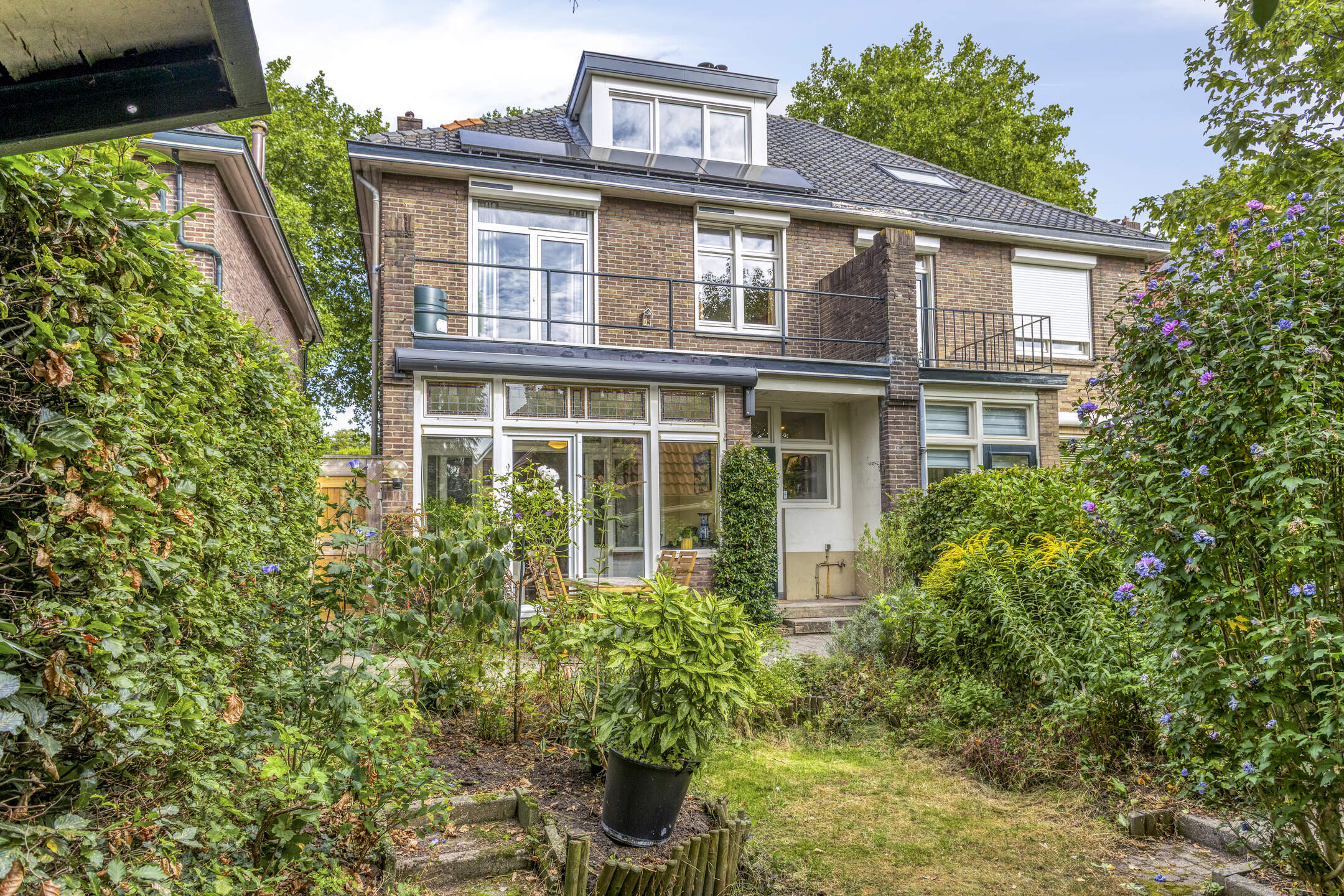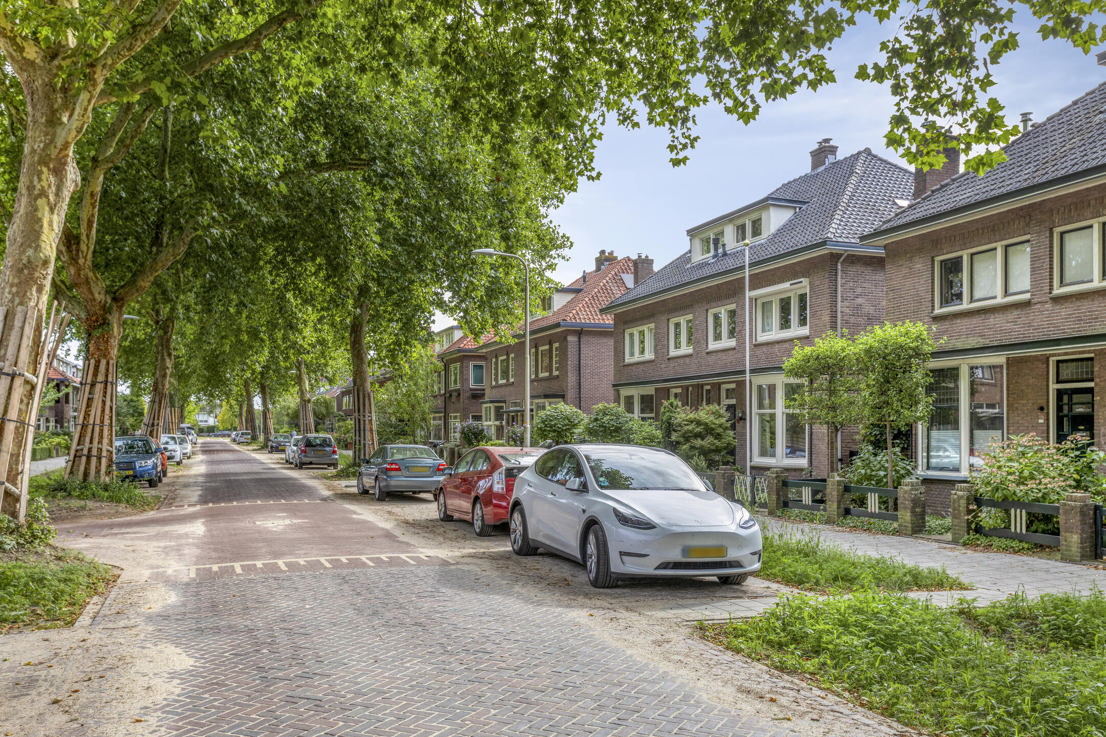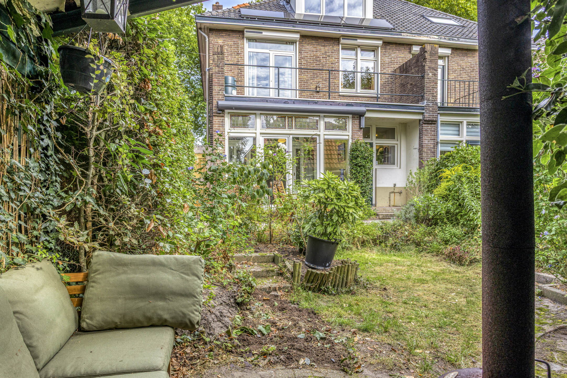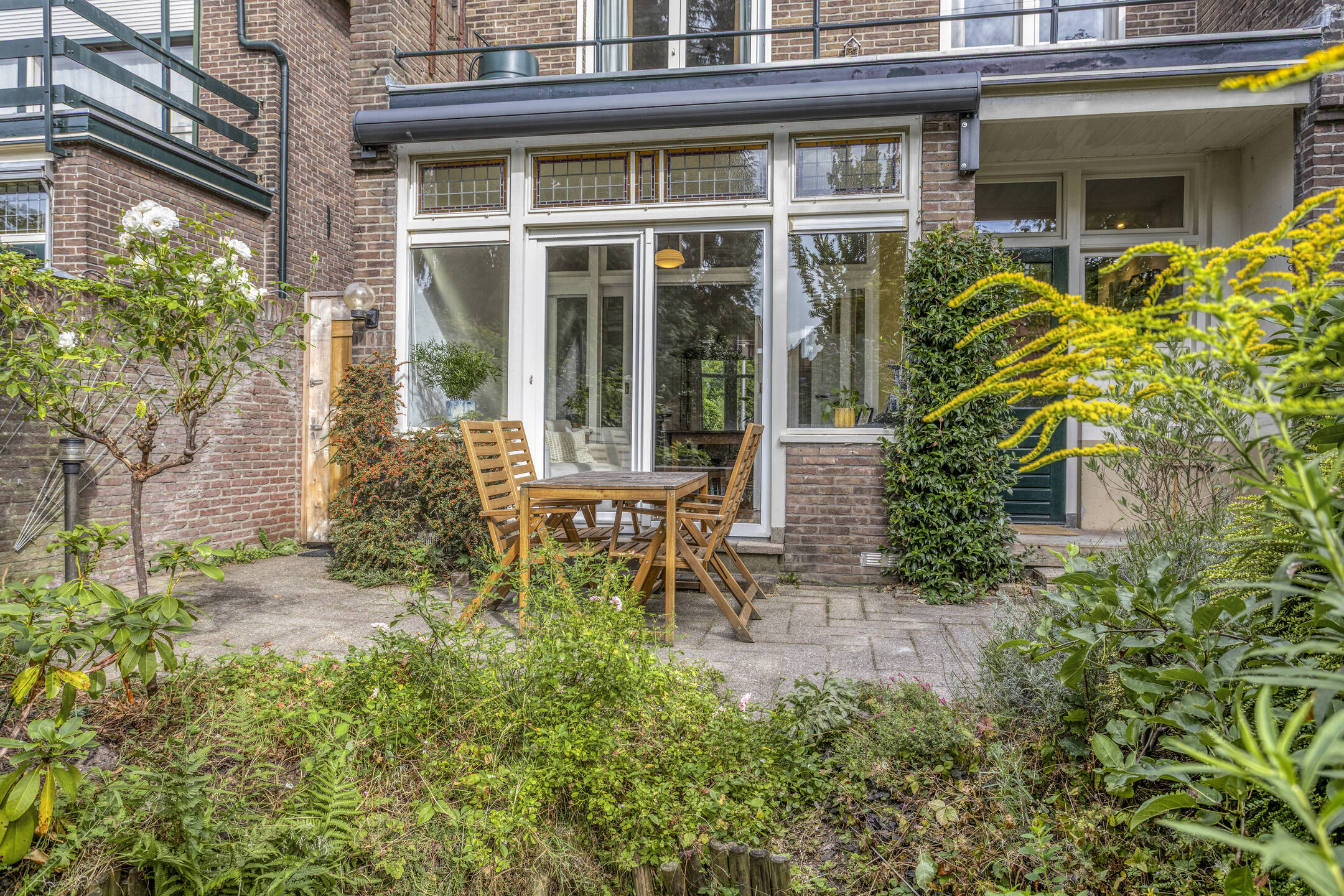 Fraai aangelegde achtertuin (78m²) op het zuidoosten met terras tegen de achtergevel, voorzien van elektrisch zonnescherm, gazon, borders, houten berging en een zitje achterin. De tuin is achterom te bereiken via het pad langs de woning. Parkeren is mogelijk in de straat op de openbare parkeervoorzieningen.