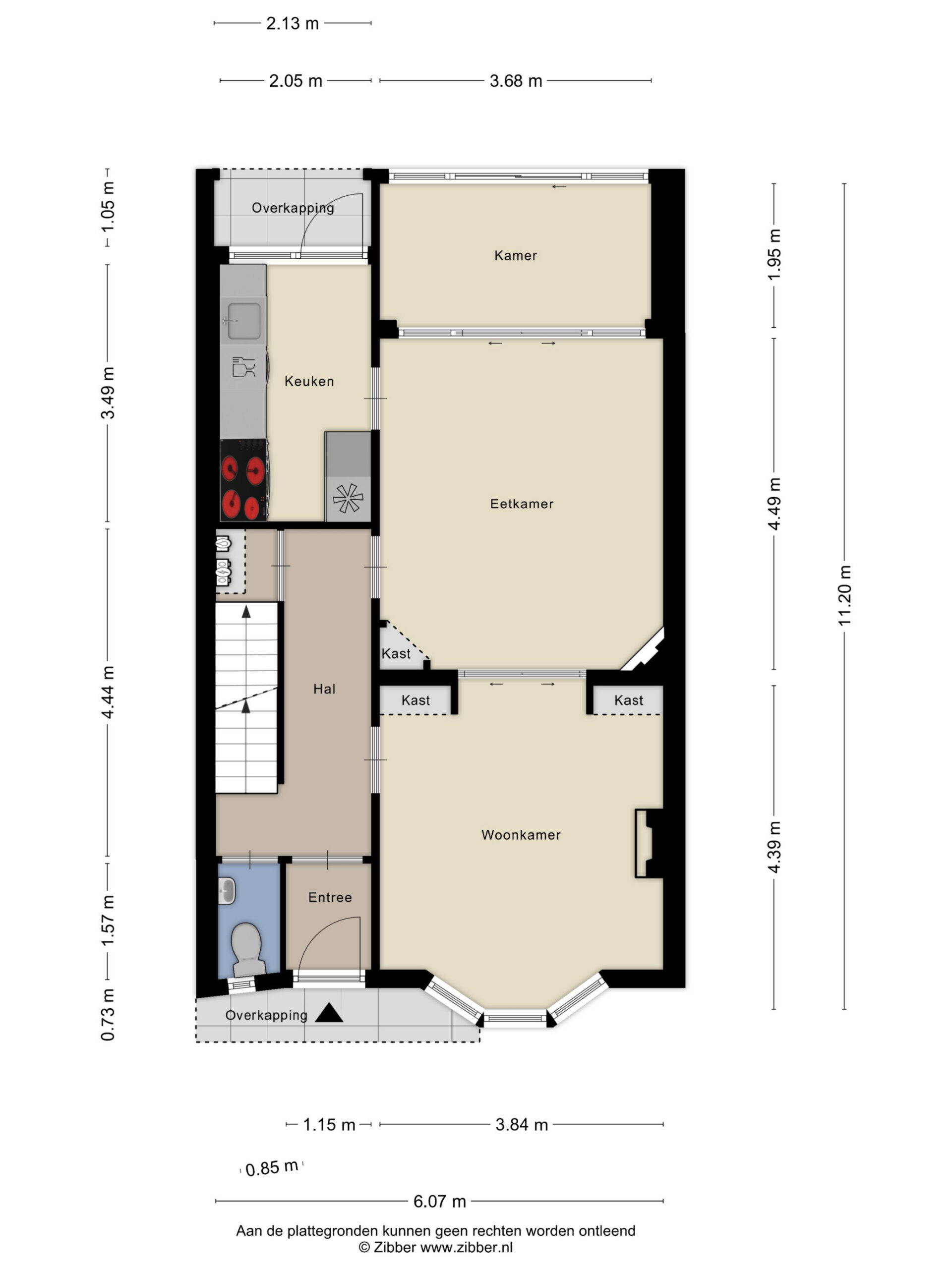 Kelder: ruime provisiekelder (12 m²), welke vanuit de hal te bereiken is.