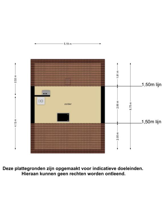 Zolder: middels vlizotrap te bereiken zolderruimte met wasmachine-/wasdroger aansluiting, cv-opstelling en veel bergruimte.