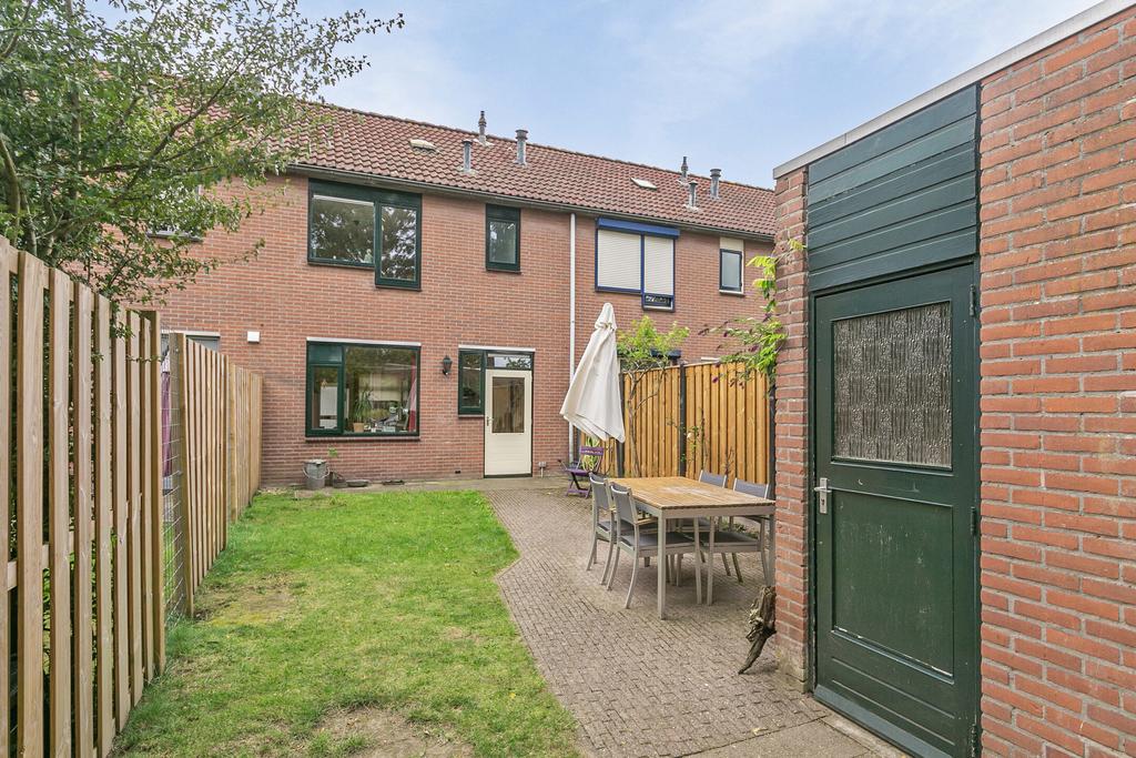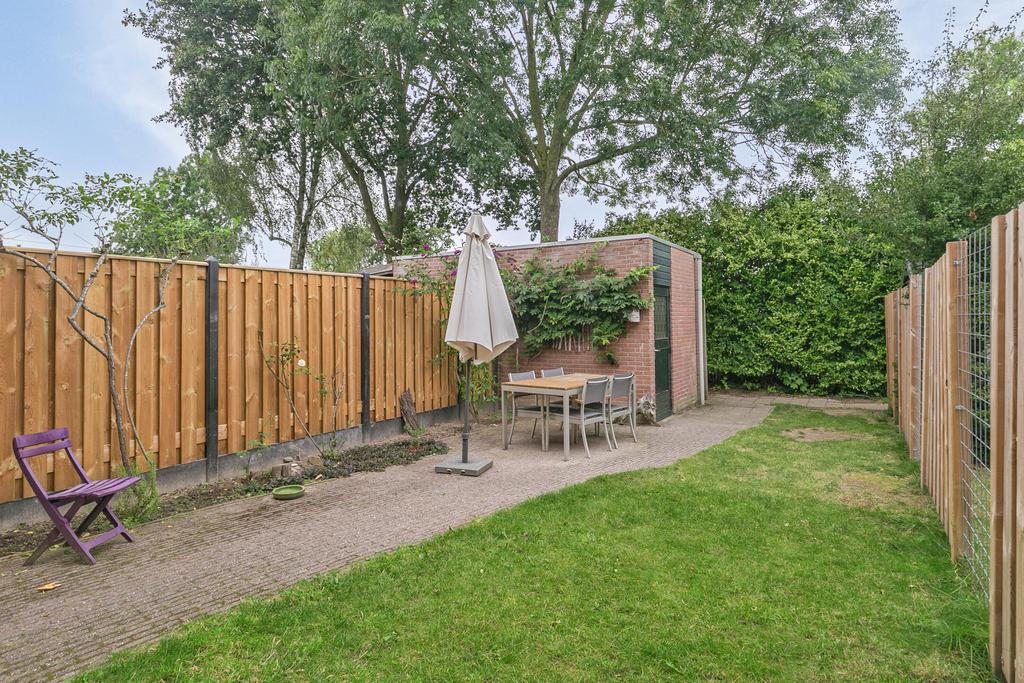 Nette achtertuin met een diepte van circa 12 m voorzien van gazon, bestraat terras en stenen berging achterin. Deze tuin is ook achterom bereikbaar via het achterpad. Verzorgde voortuin met looppad naar de voordeur. Parkeren is mogelijk op de openbare parkeervoorzieningen in de straat.